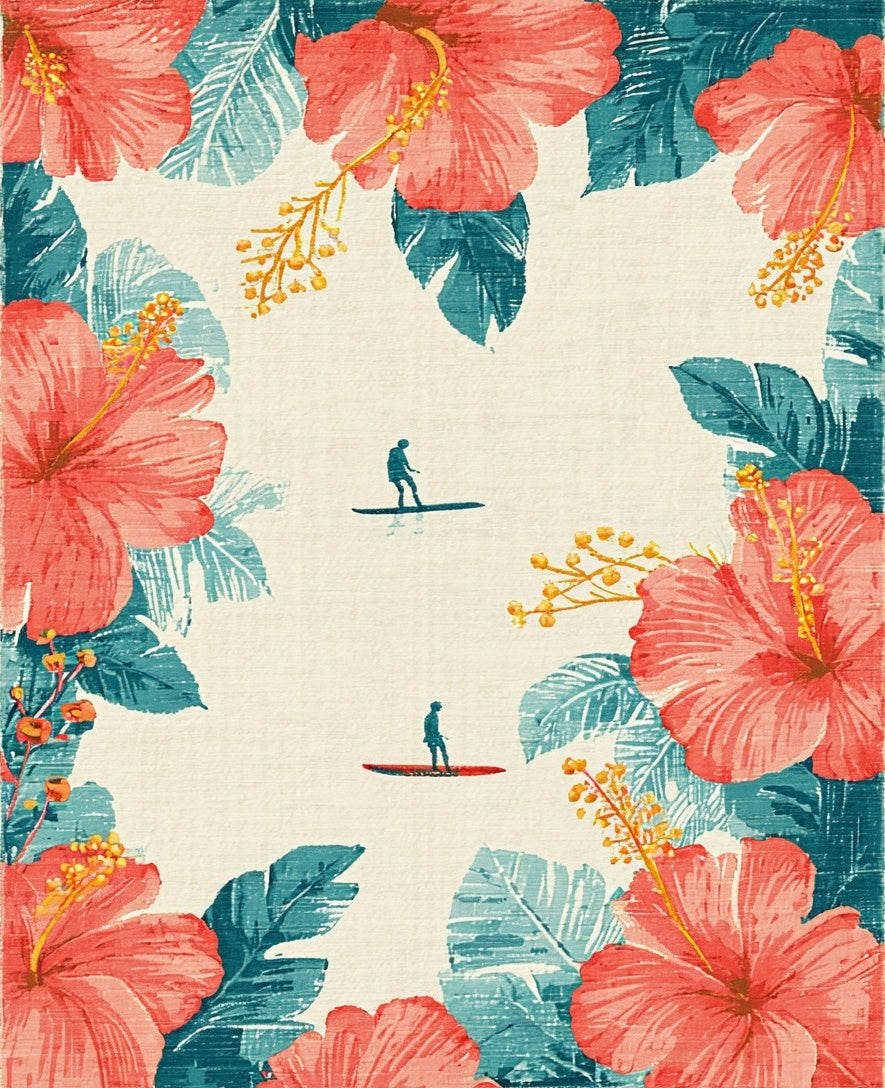 Boho Surf Beach Tropical Hibiscus Print(Red)