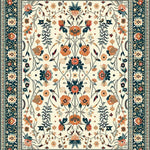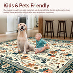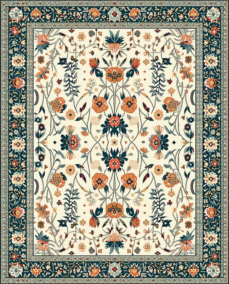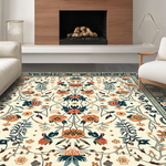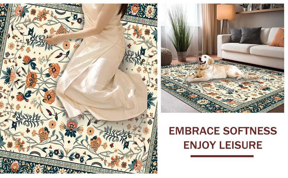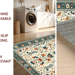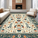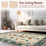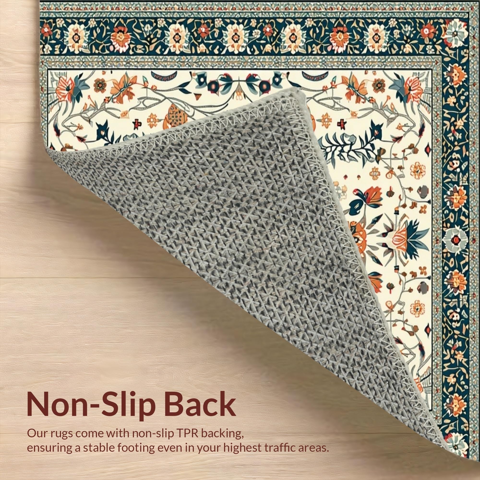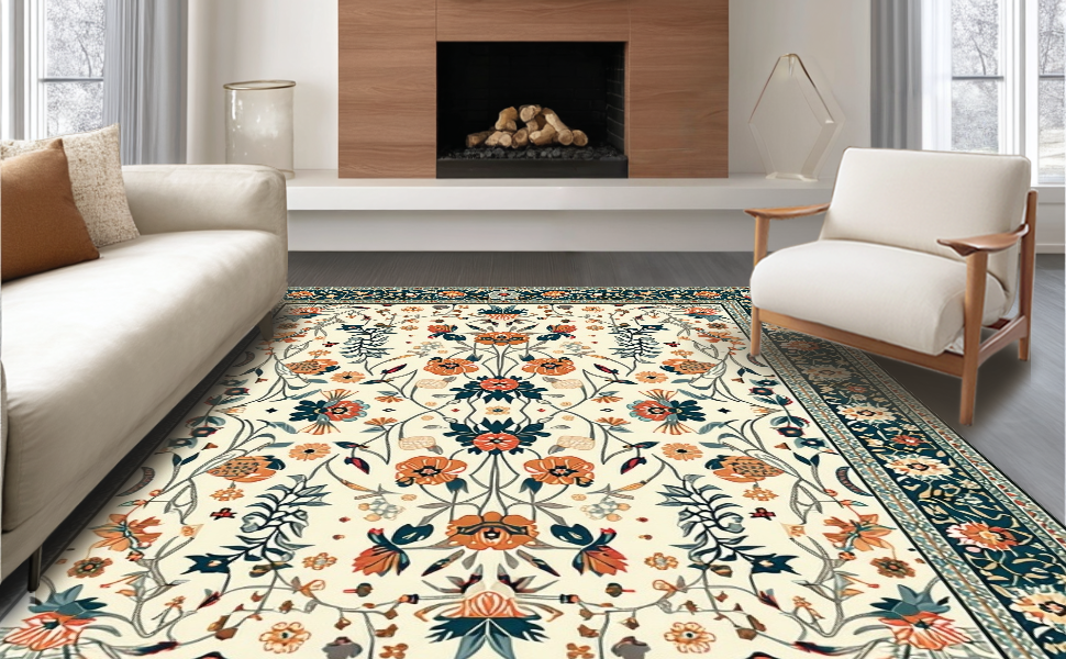 Ultra Soft Area Rug, Non Slip, Stain Resistant, Washable Area Rugs for Living Room, Bedroom, Boho Teal and Orange Fusion(Ivory) Overview: