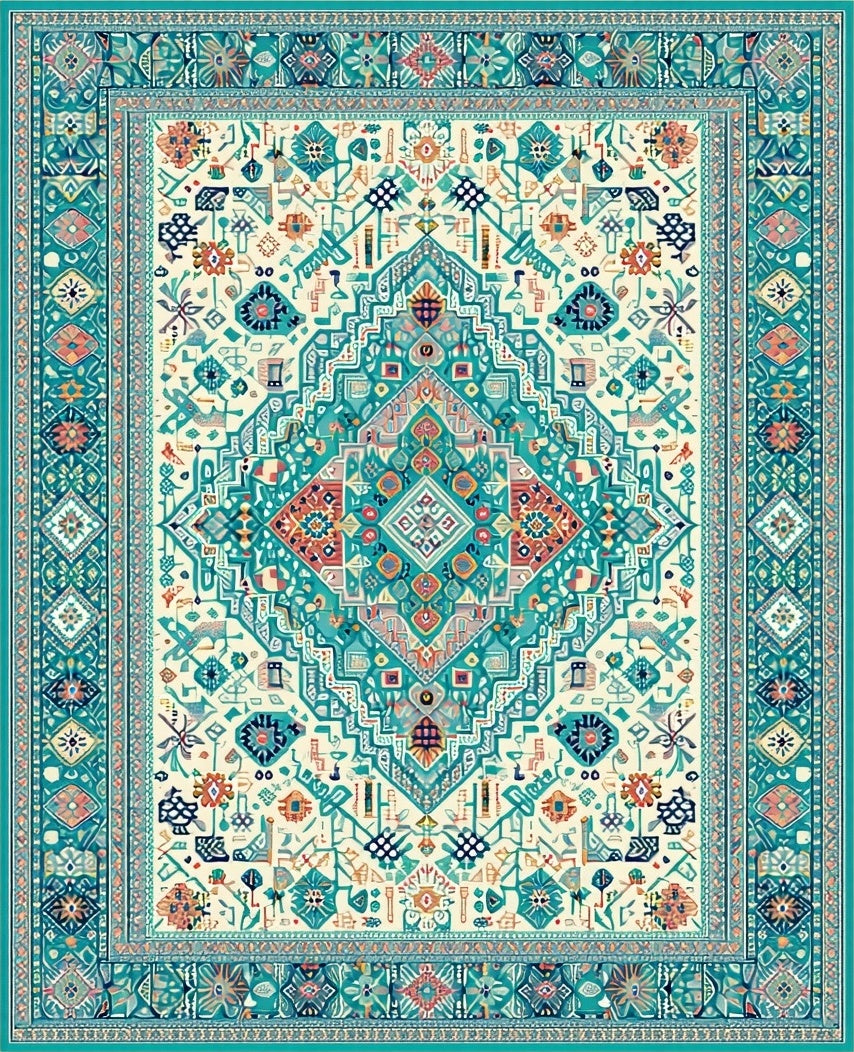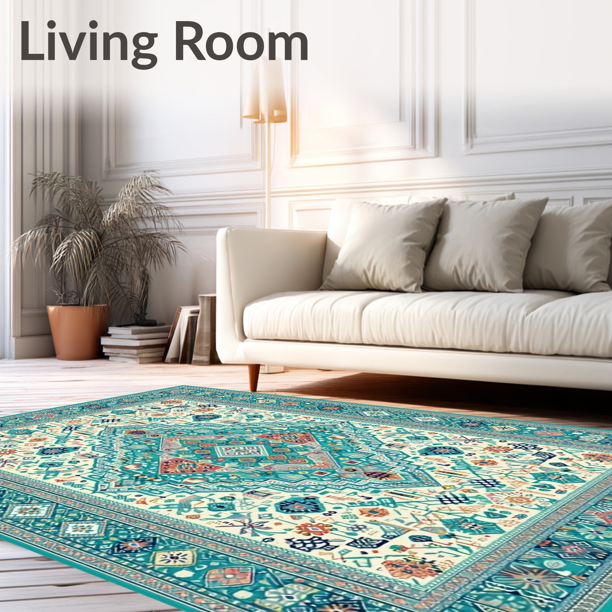 Ultra Soft Area Rug, Non Slip, Stain Resistant, Washable Area Rugs for Living Room, Bedroom, Boho Turquoise & Beige(Blue) Overview: