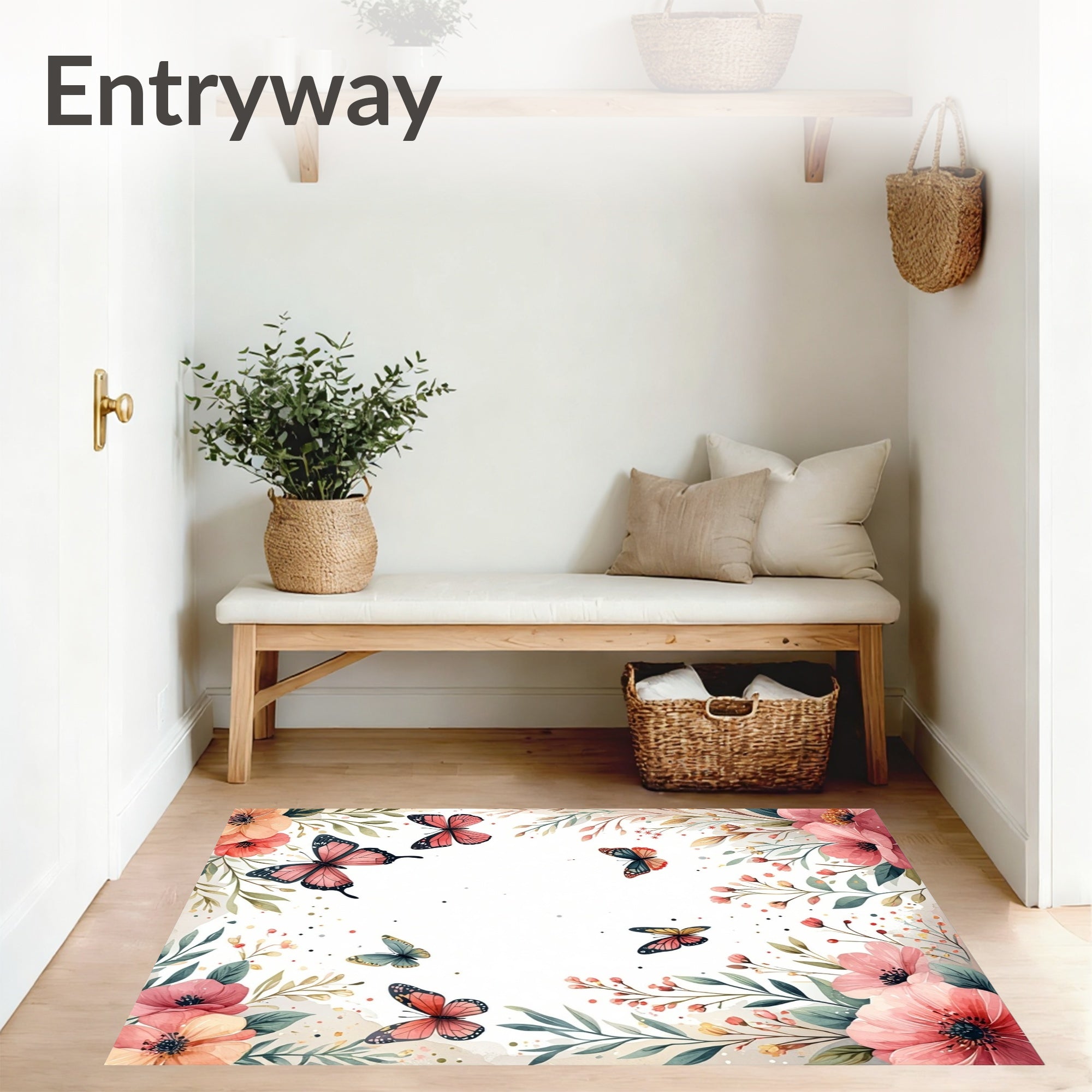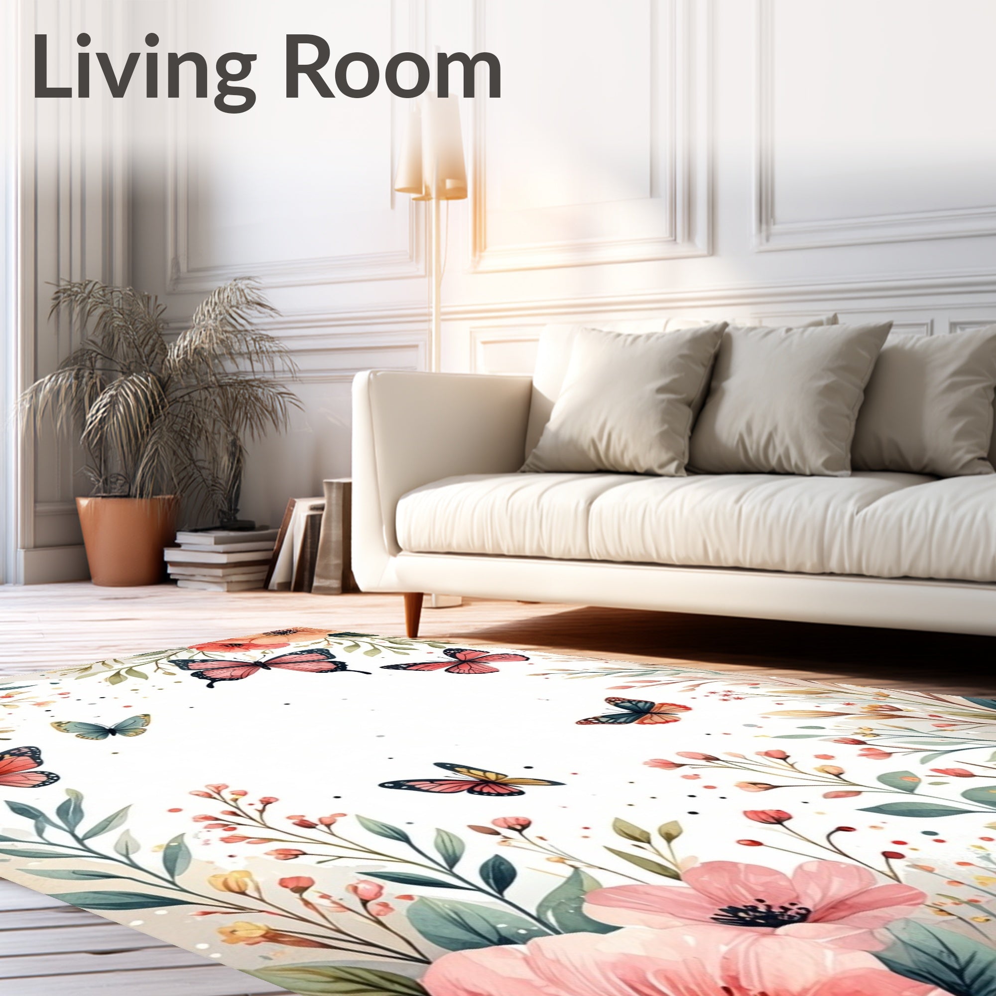 Ultra Soft Area Rug, Non Slip, Stain Resistant, Washable Area Rugs for Living Room, Bedroom, Boho Watercolor Butterfly for Girls Nursery(White) Overview: