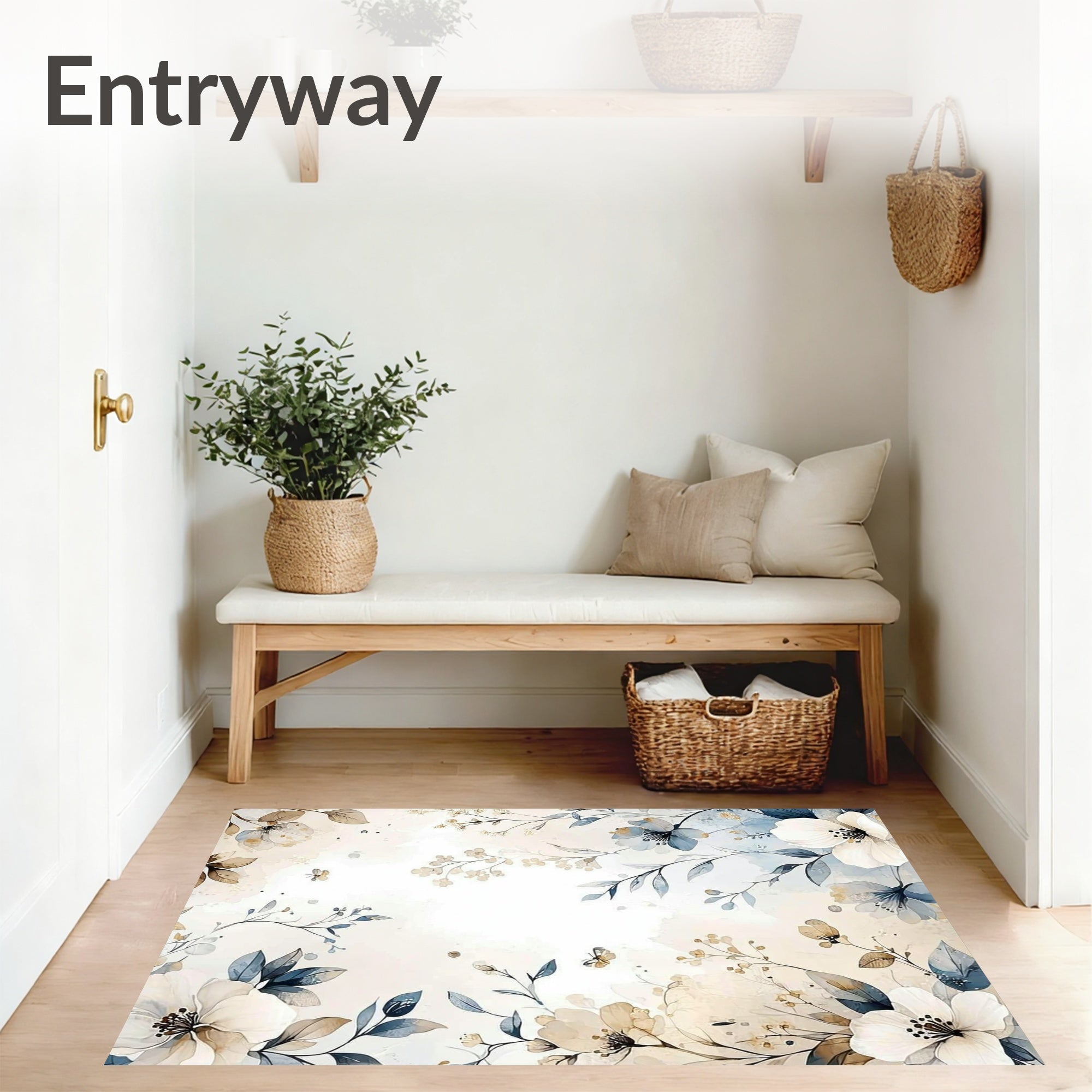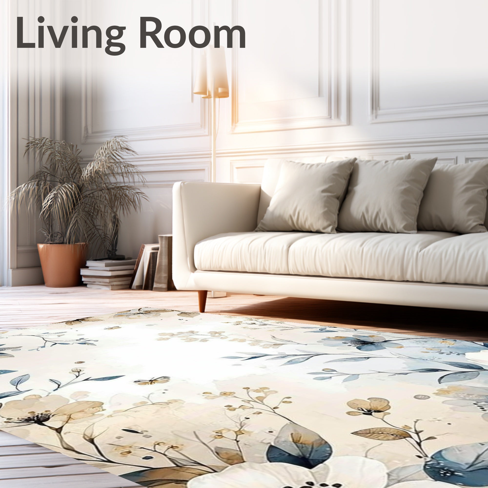 Ultra Soft Area Rug, Non Slip, Stain Resistant, Washable Area Rugs for Living Room, Bedroom, Boho Watercolor Flower Area with Cream Tan Blue Grey Petal Motifs Print(Beige) Overview: