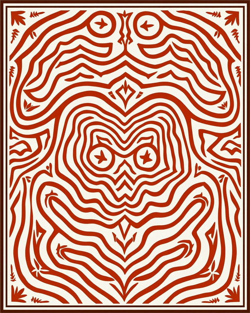 Boho Wave Motif with Interlocking Accents(Red)