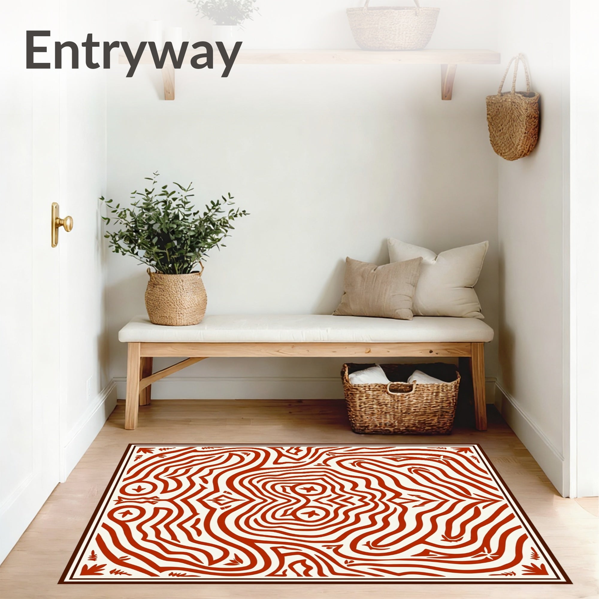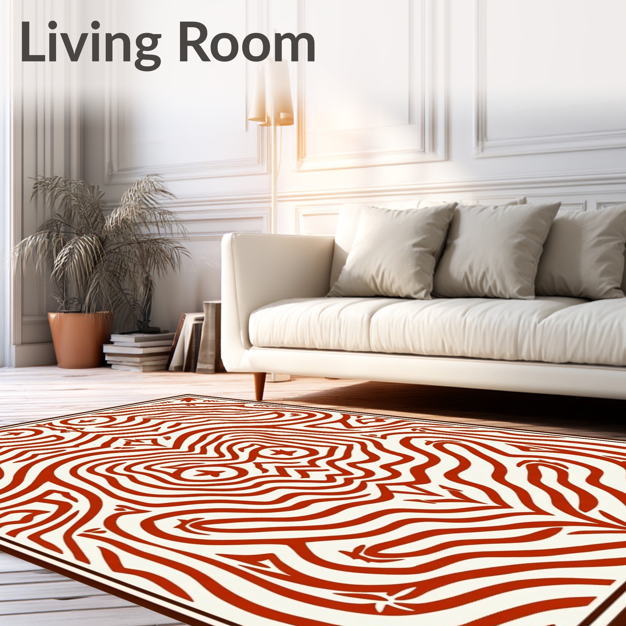 Ultra Soft Area Rug, Non Slip, Stain Resistant, Washable Area Rugs for Living Room, Bedroom, Boho Wave Motif with Interlocking Accents(Red) Overview: