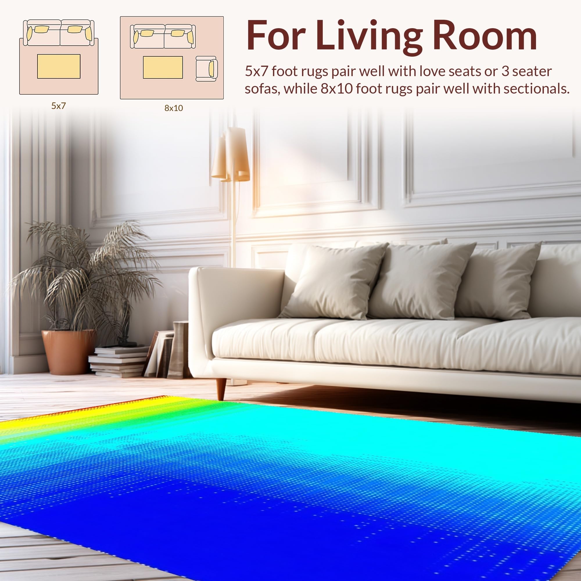 Ultra Soft Area Rug, Non Slip, Stain Resistant, Washable Area Rugs for Living Room, Bedroom, Bold Abstract Color Transition(Blue) Overview: