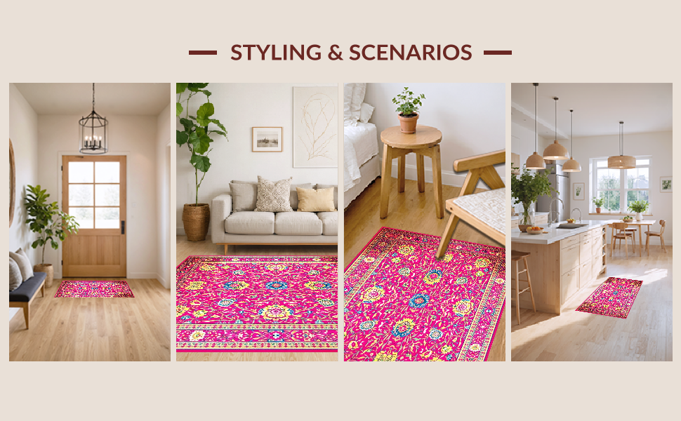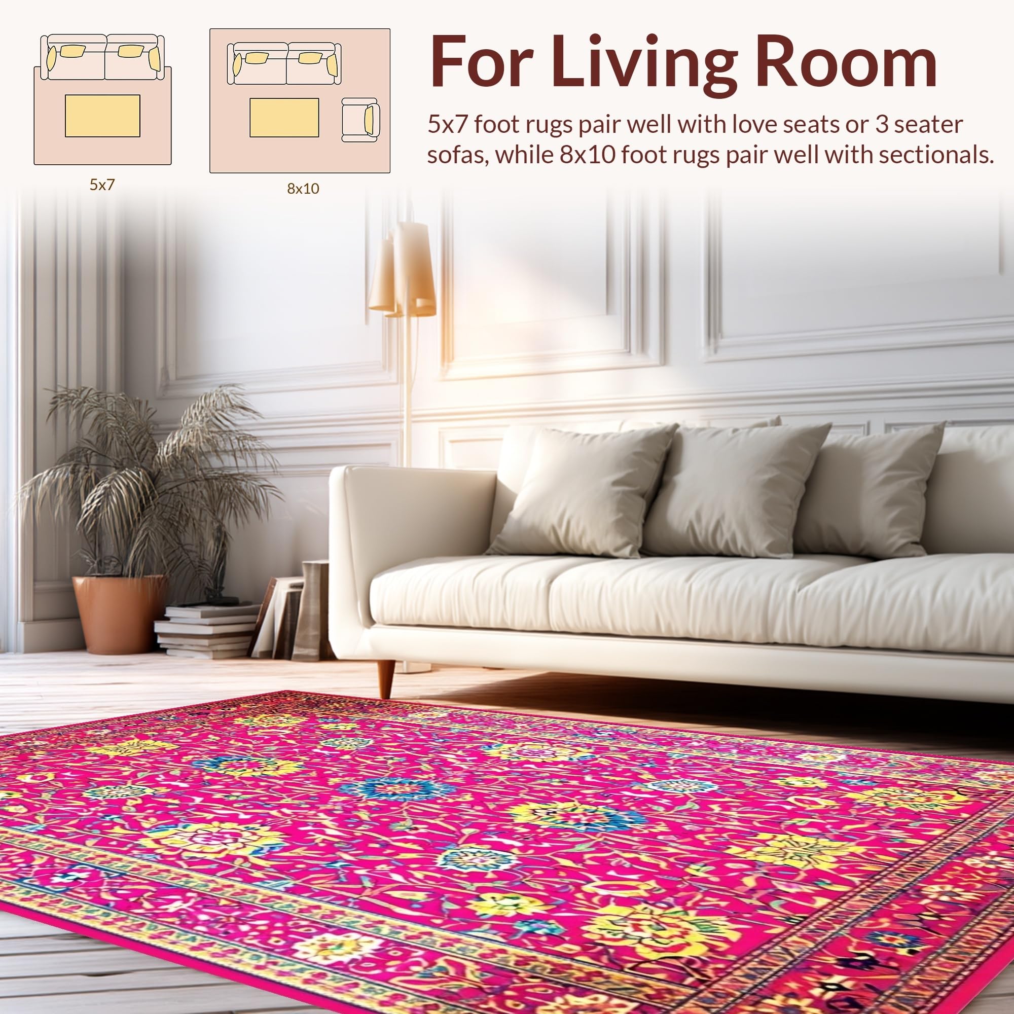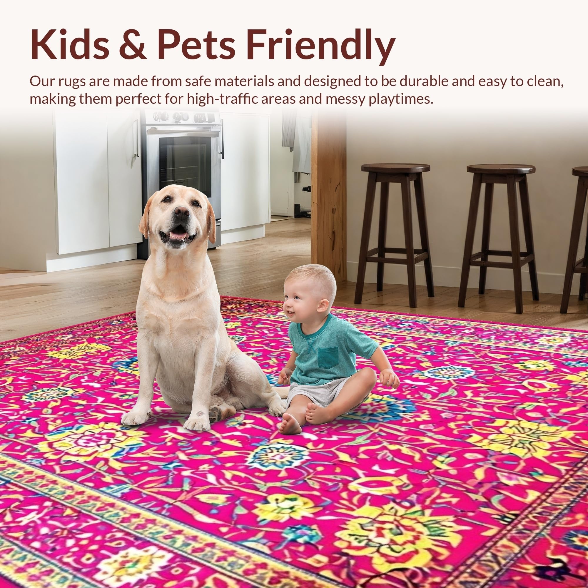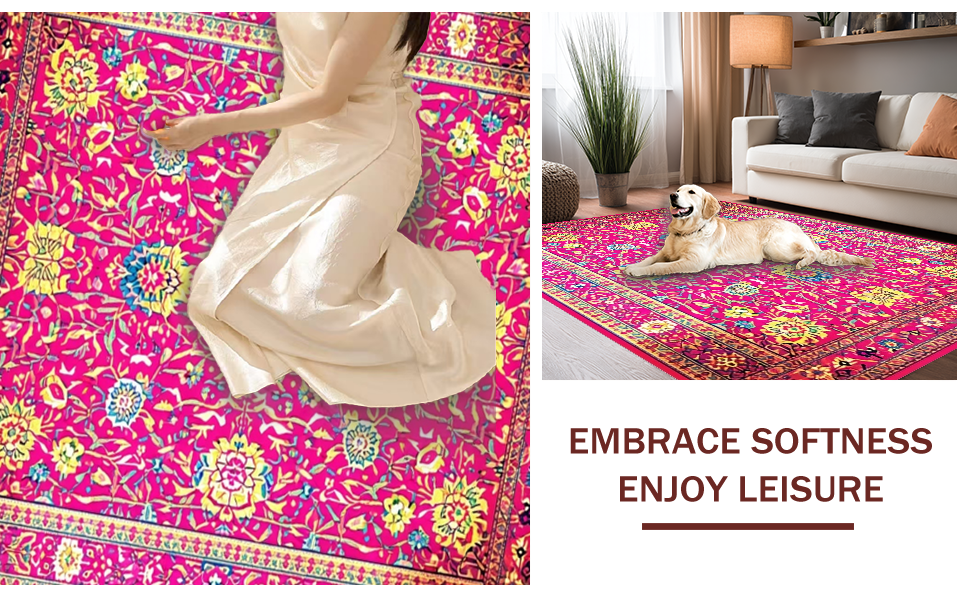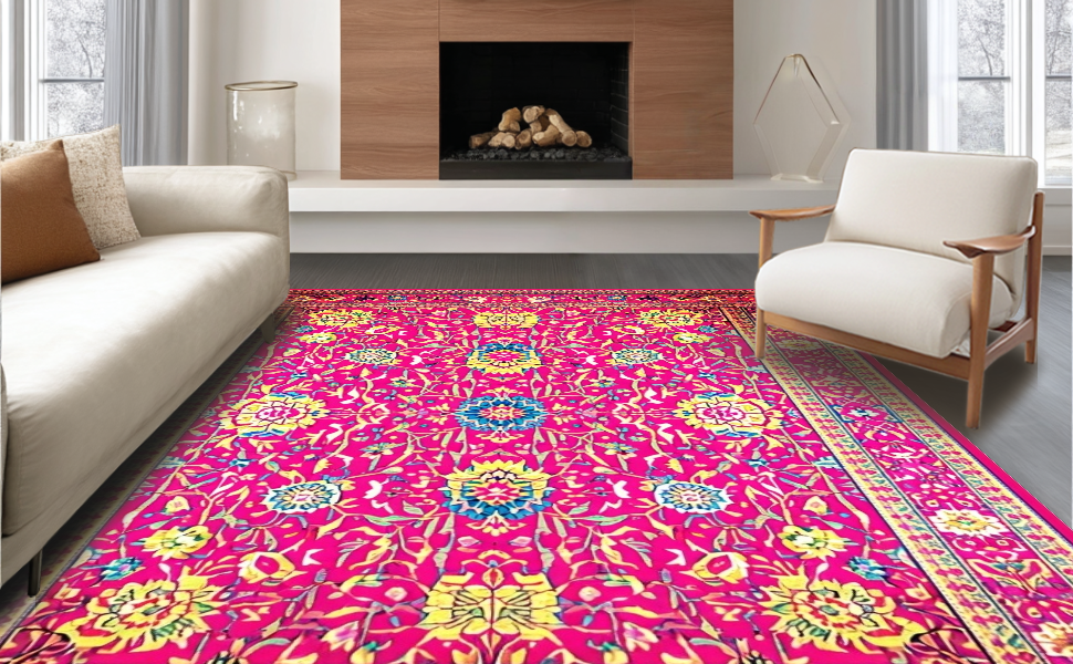 Ultra Soft Area Rug, Non Slip, Stain Resistant, Washable Area Rugs for Living Room, Bedroom, Bold Abstract Floral Arrangement(Pink) Overview: