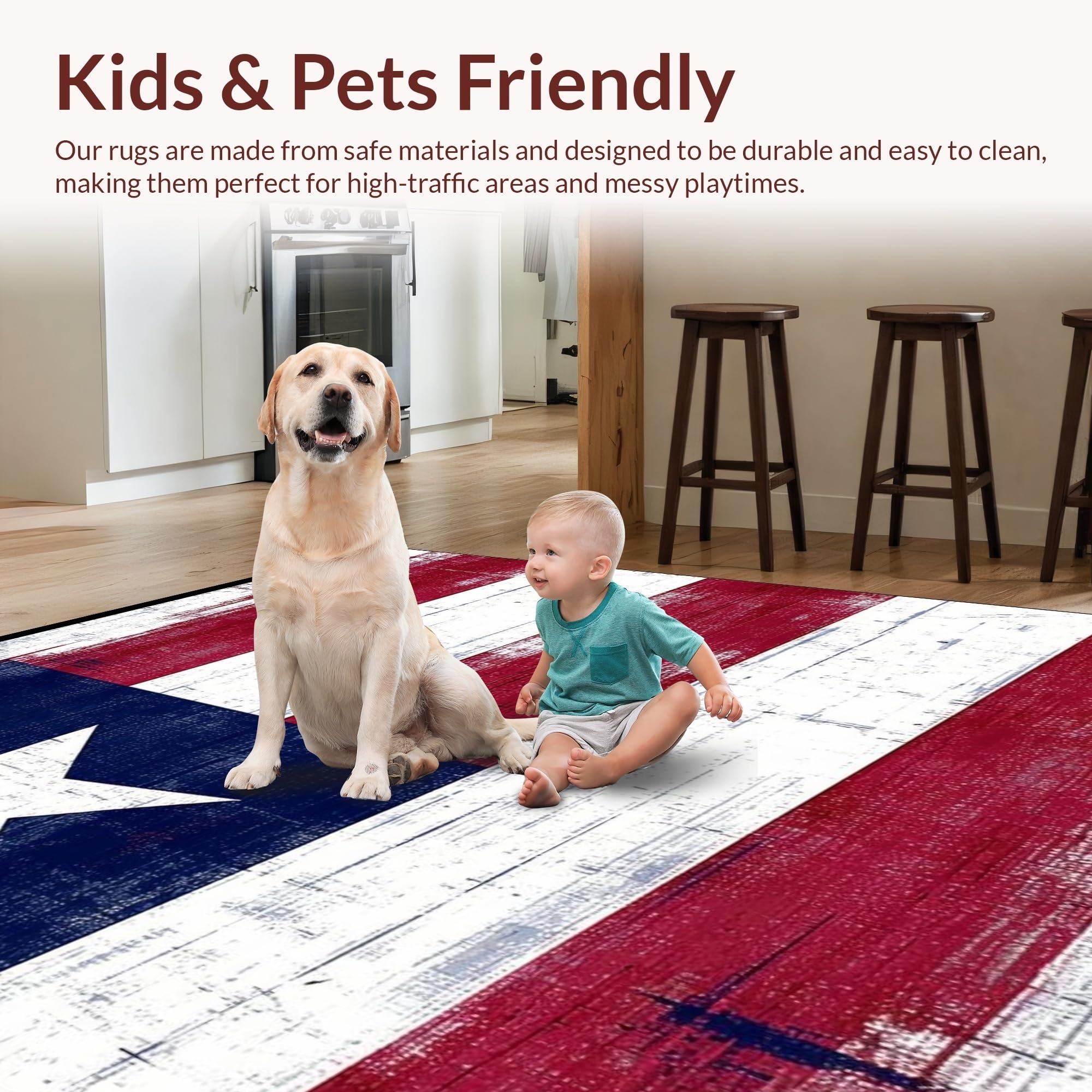 Ultra Soft Area Rug, Non Slip, Stain Resistant, Washable Area Rugs for Living Room, Bedroom, Bold Aged Flag Aesthetic(Red) Overview: