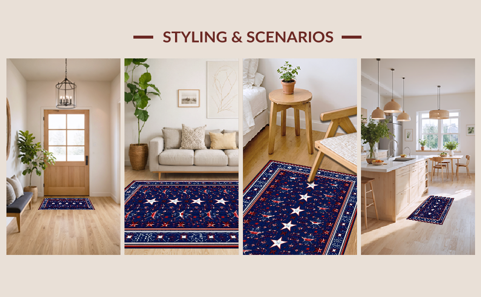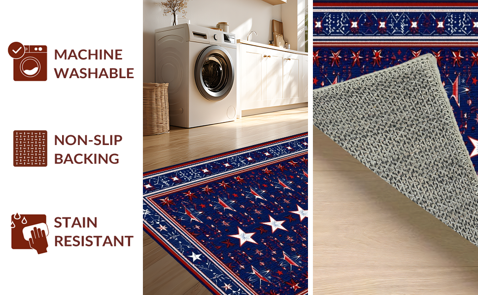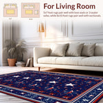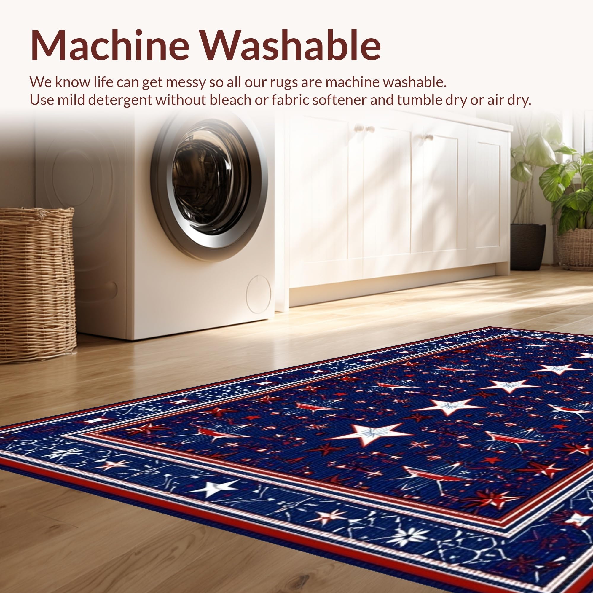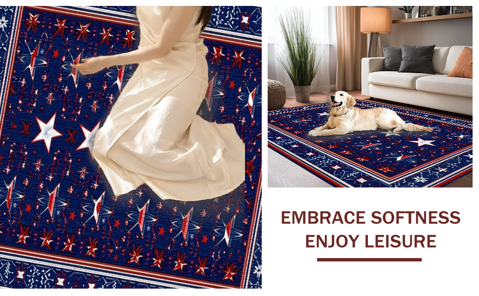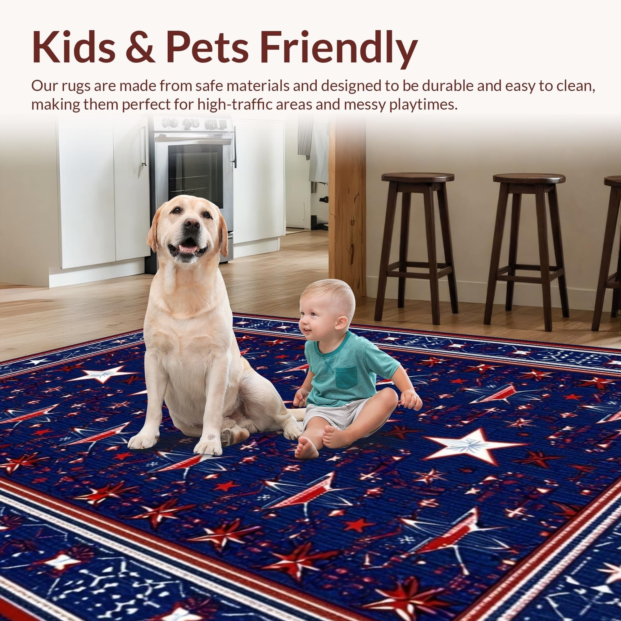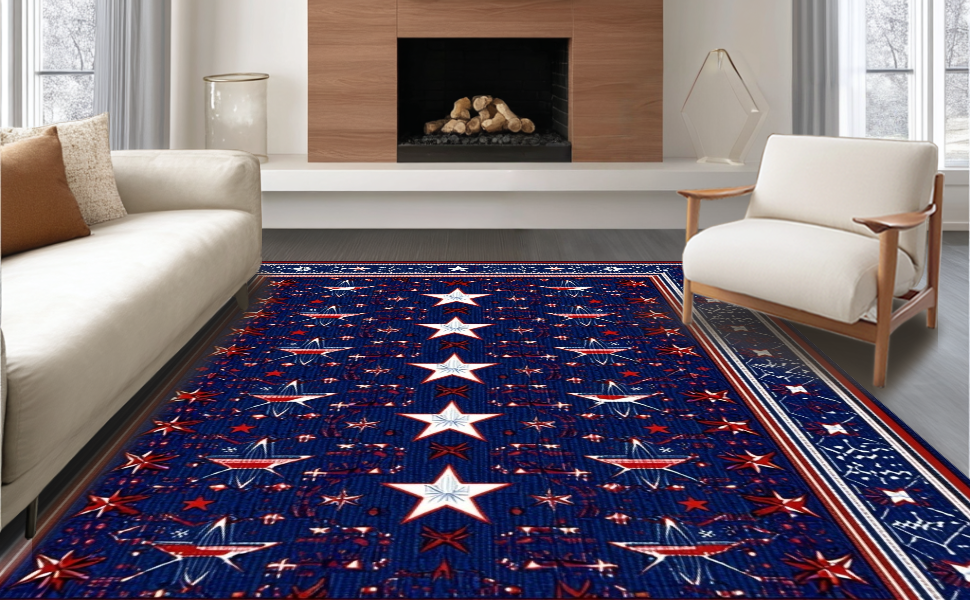 Ultra Soft Area Rug, Non Slip, Stain Resistant, Washable Area Rugs for Living Room, Bedroom, Bold Americana Color Palette(Blue) Overview: