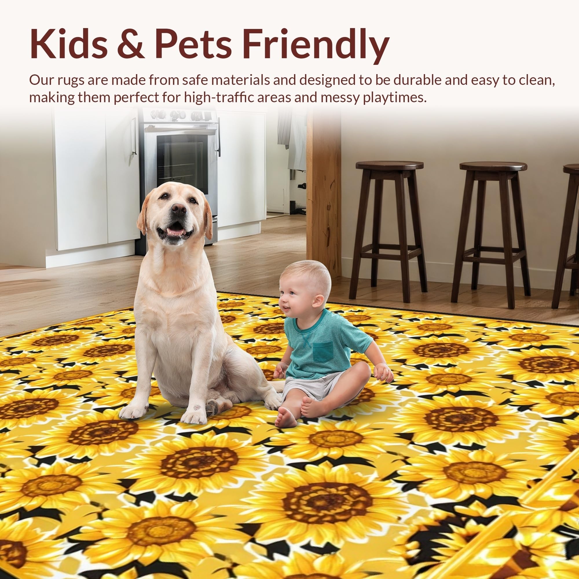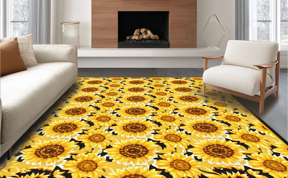 Ultra Soft Area Rug, Non Slip, Stain Resistant, Washable Area Rugs for Living Room, Bedroom, Bold Artistic Floral Composition(Yellow) Overview:
