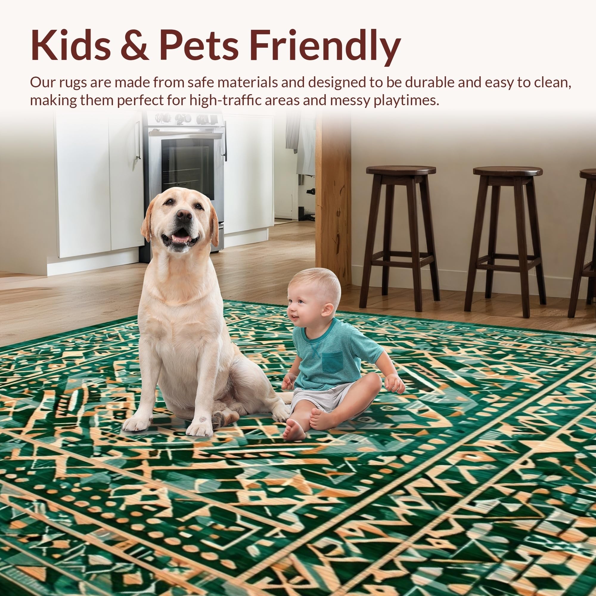 Ultra Soft Area Rug, Non Slip, Stain Resistant, Washable Area Rugs for Living Room, Bedroom, Bold Beige Green Area(Green) Overview: