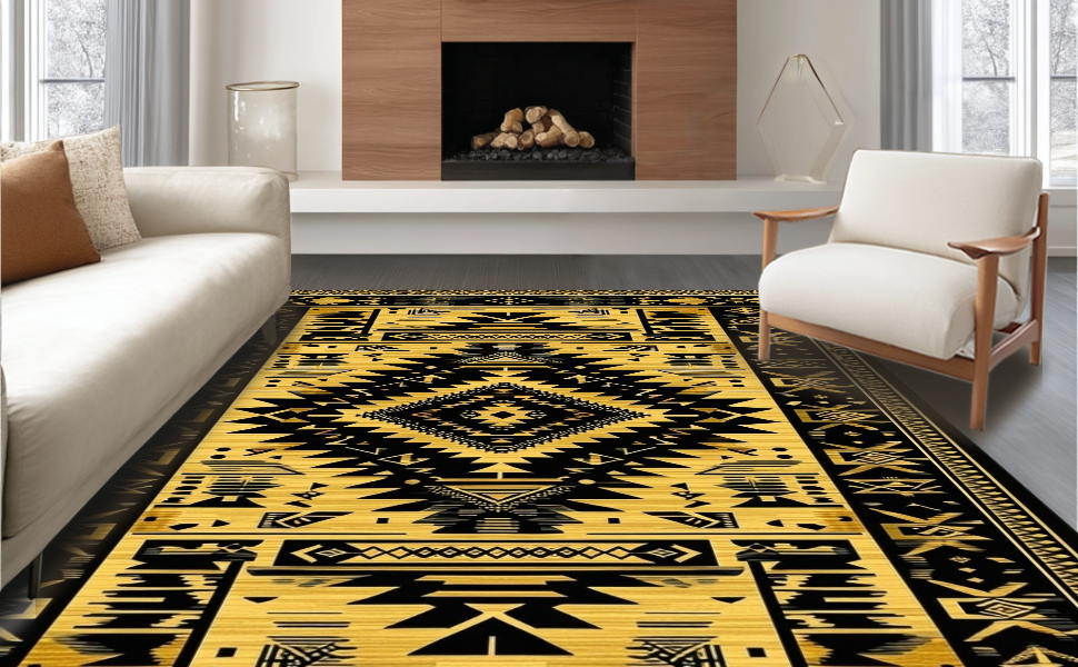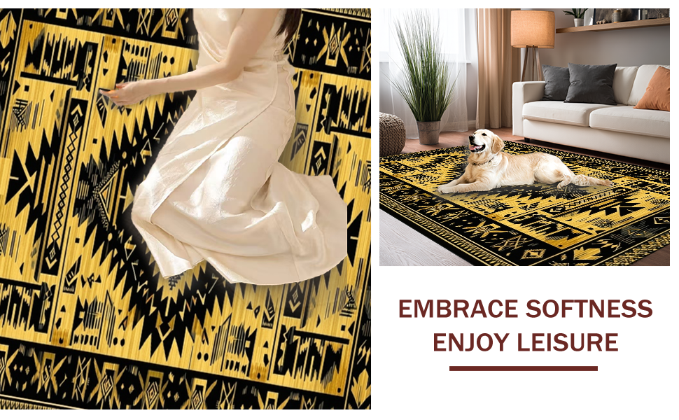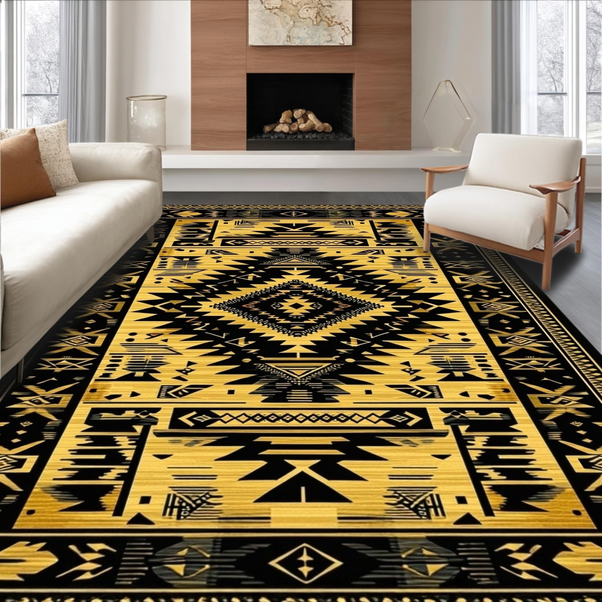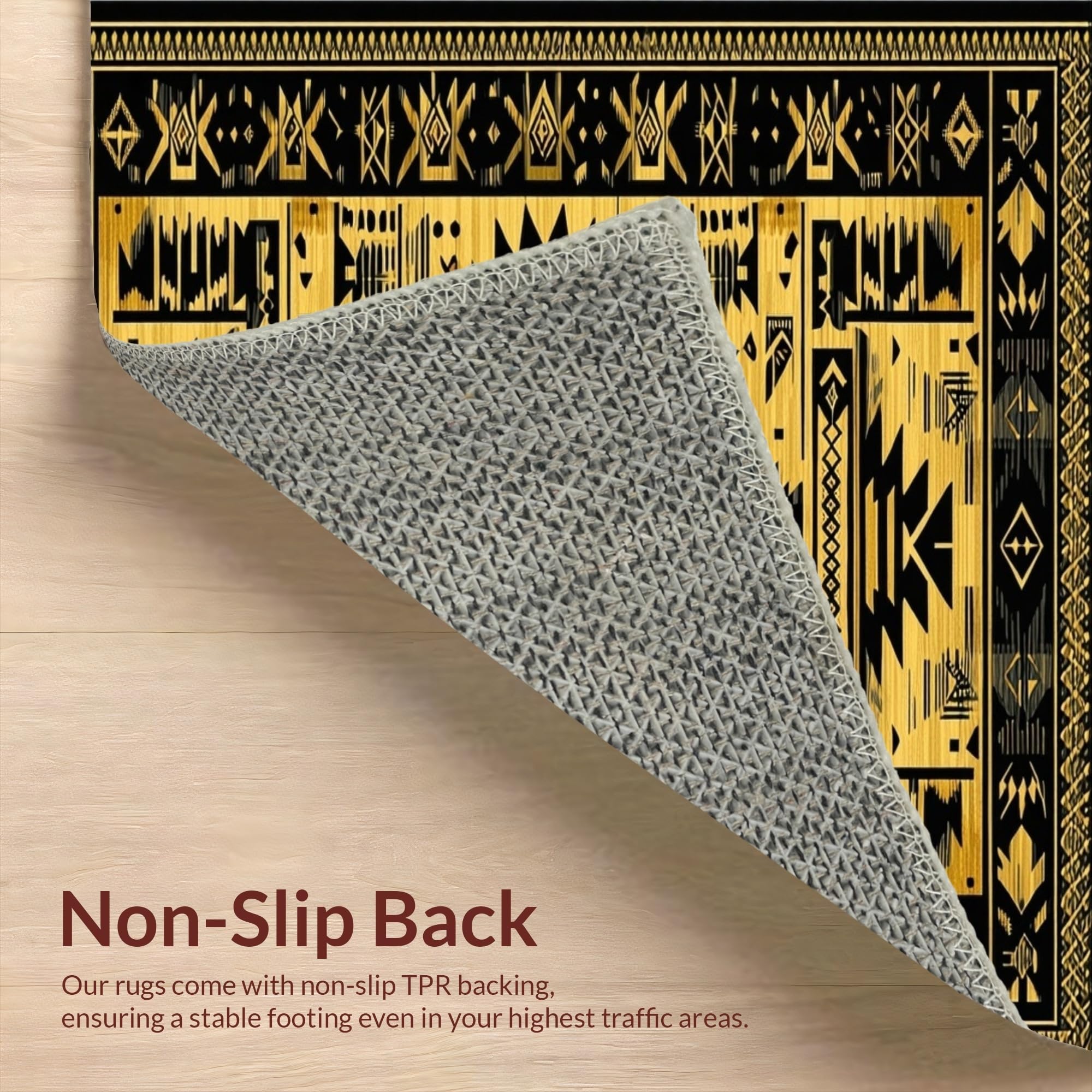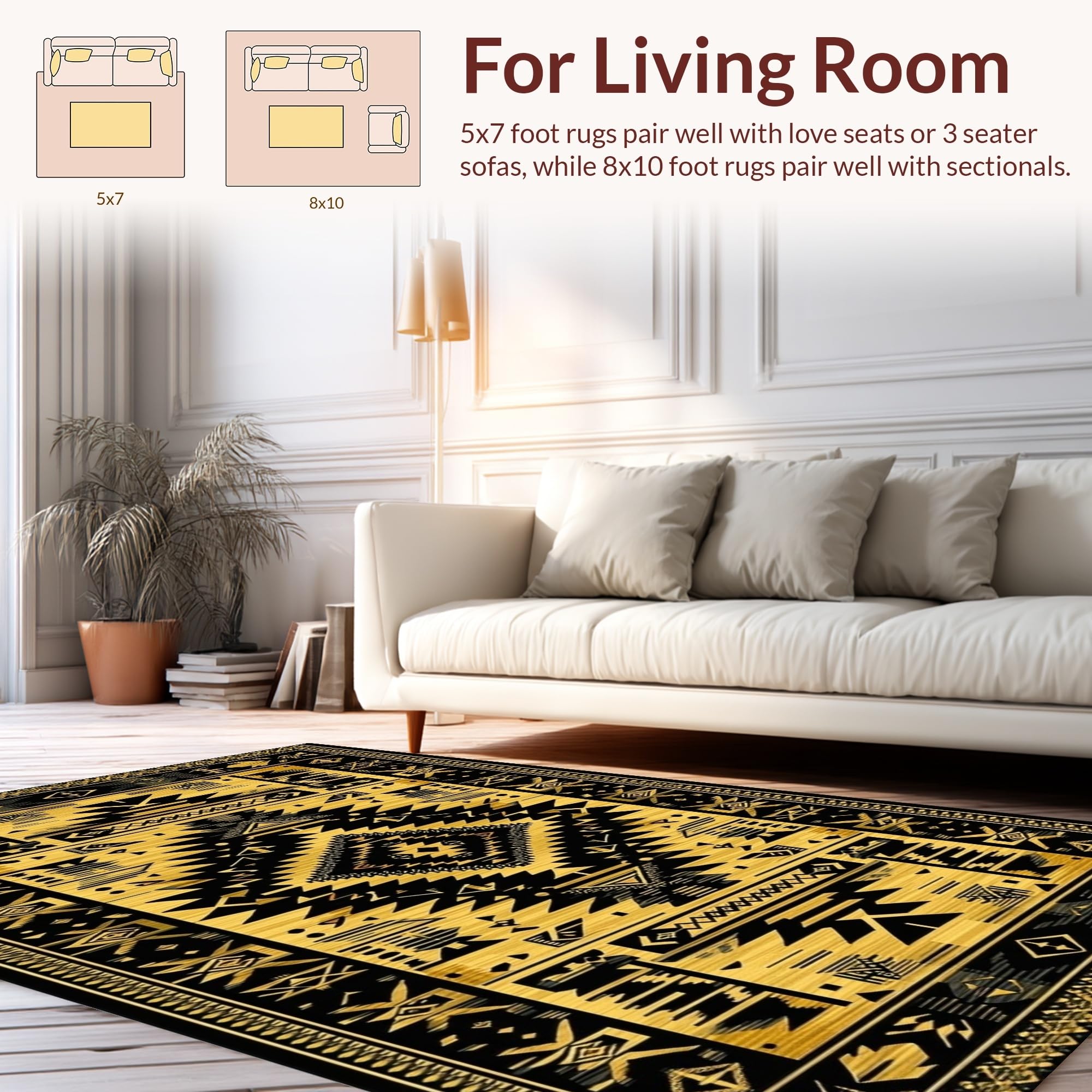 Ultra Soft Area Rug, Non Slip, Stain Resistant, Washable Area Rugs for Living Room, Bedroom, Bold Black and Gold Textures(Gold) Overview:
