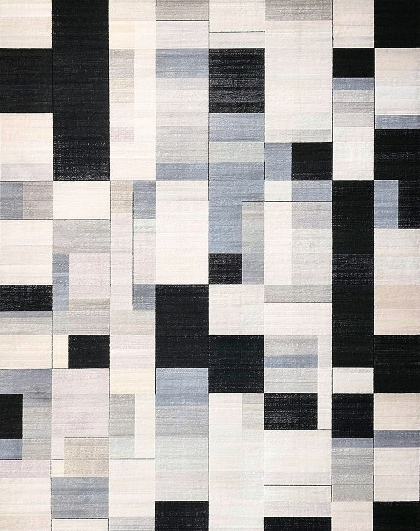Bold Black & White Blocks Contemporary Patterned Floor Mat(Gray)