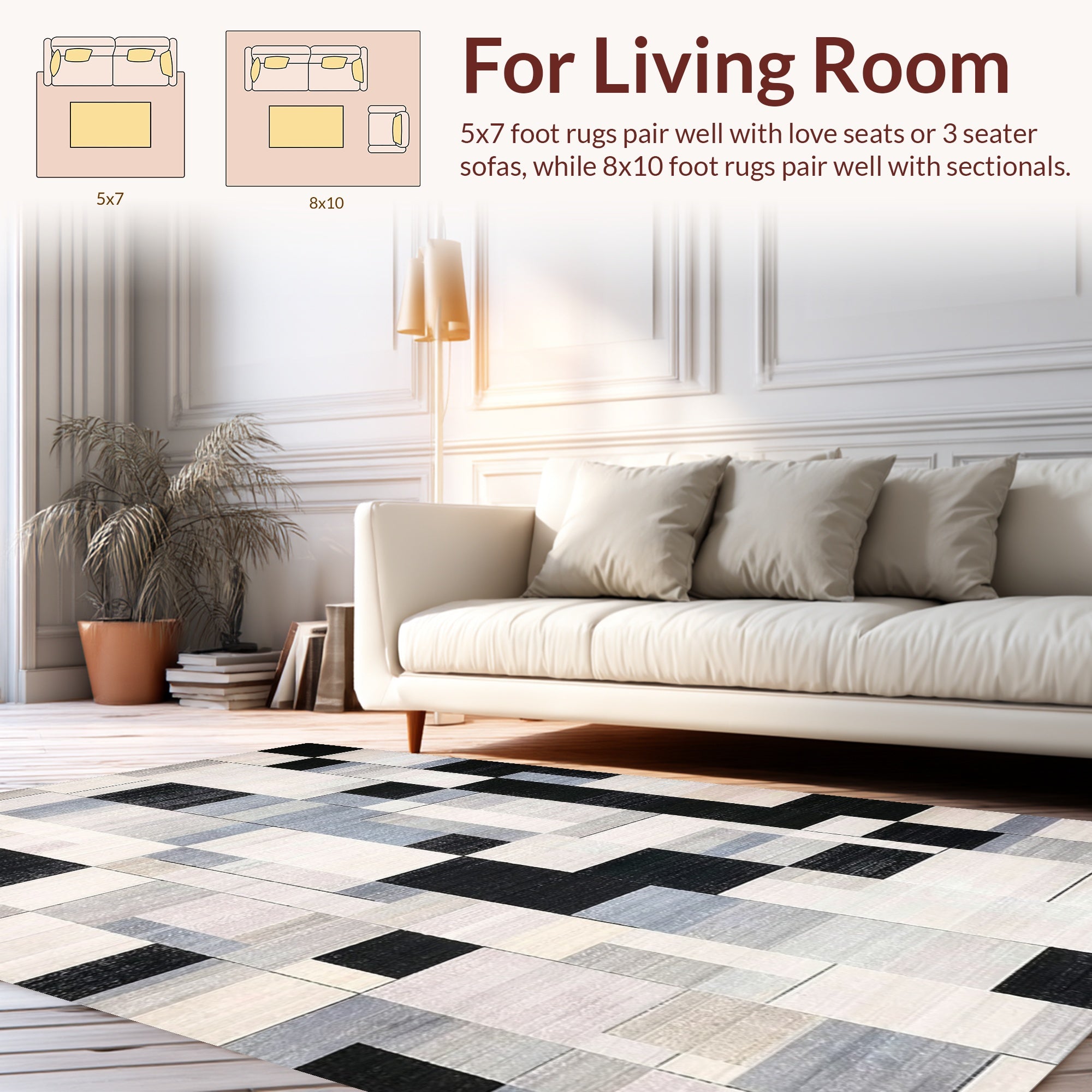 Ultra Soft Area Rug, Non Slip, Stain Resistant, Washable Area Rugs for Living Room, Bedroom, Bold Black & White Blocks Rug Contemporary Patterned Floor Mat(Gray) Overview: