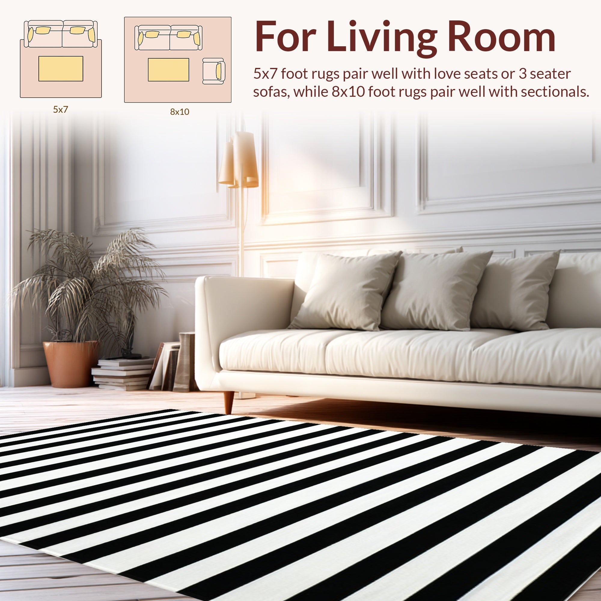 Ultra Soft Area Rug, Non Slip, Stain Resistant, Washable Area Rugs for Living Room, Bedroom, Bold Black & White Rug Front Porch(Black) Overview: