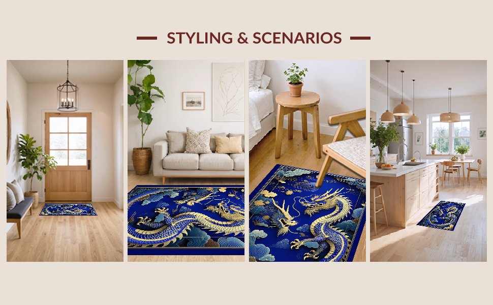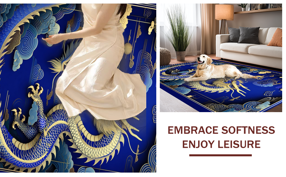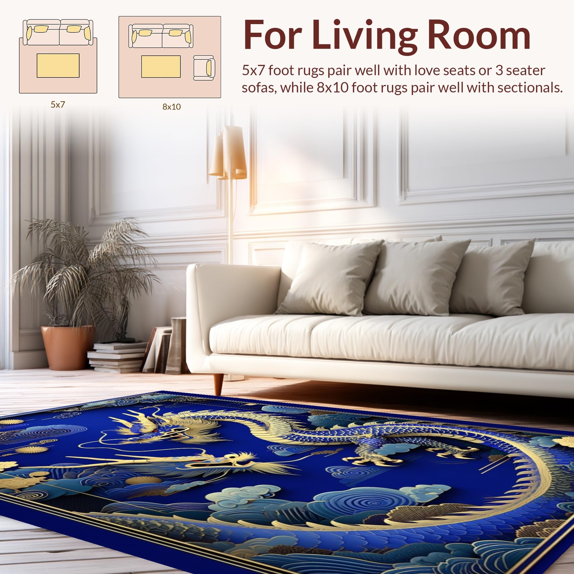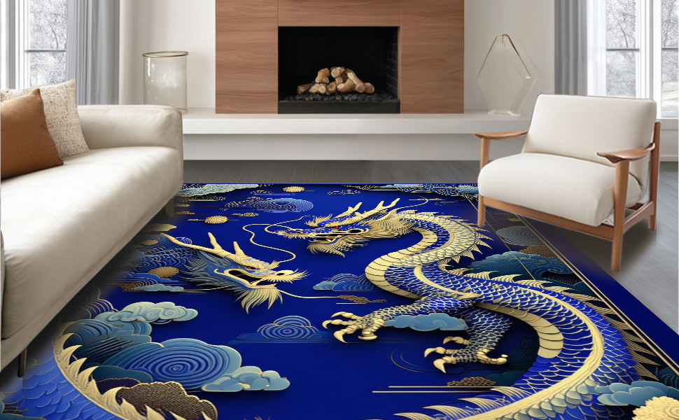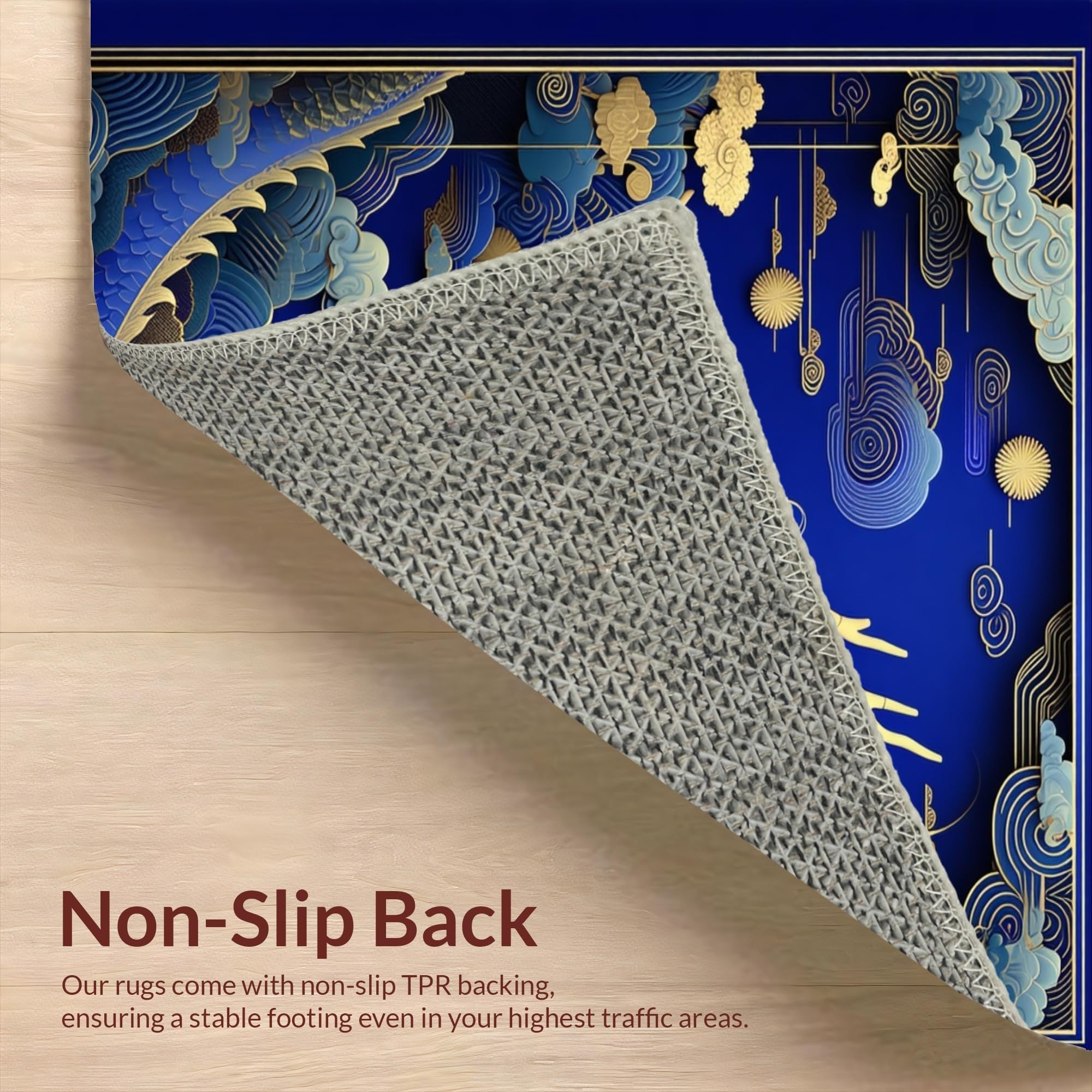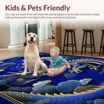 Ultra Soft Area Rug, Non Slip, Stain Resistant, Washable Area Rugs for Living Room, Bedroom, Bold Blue Toned Illustration(Blue) Overview: