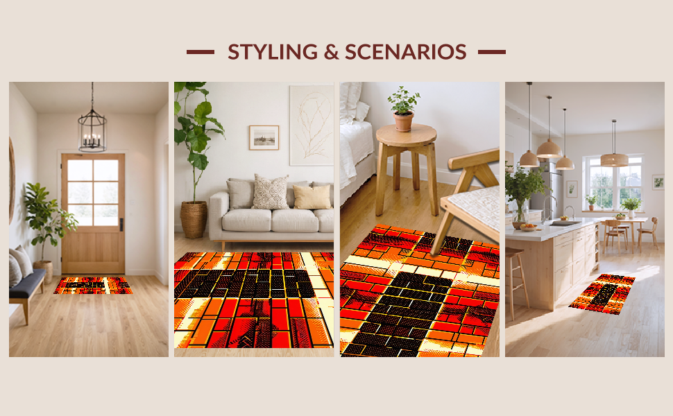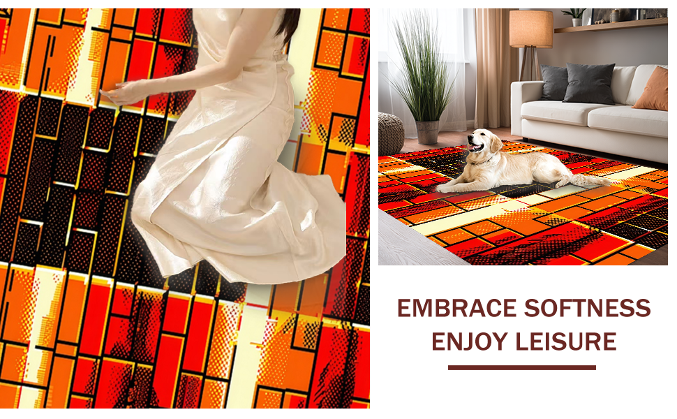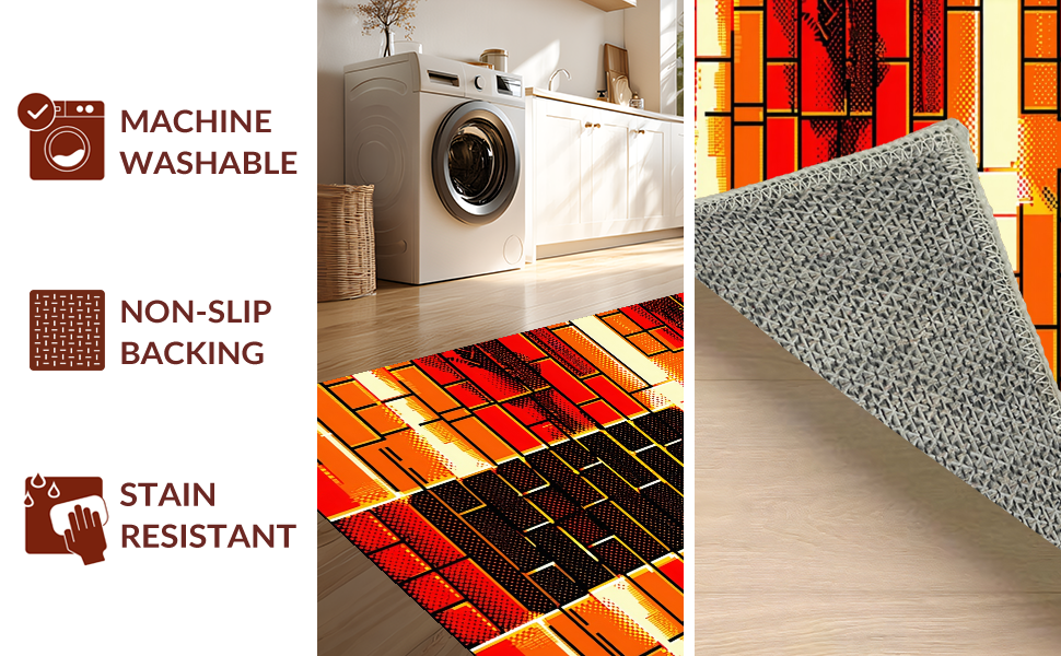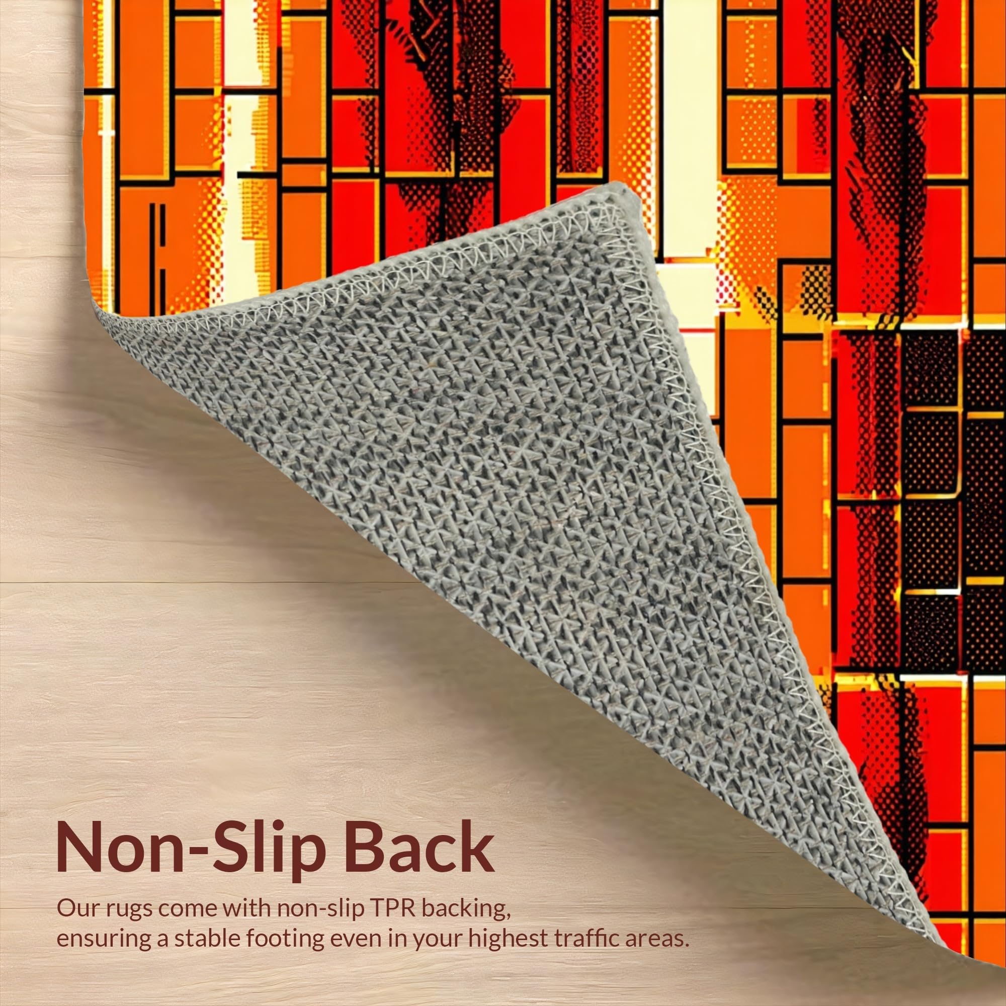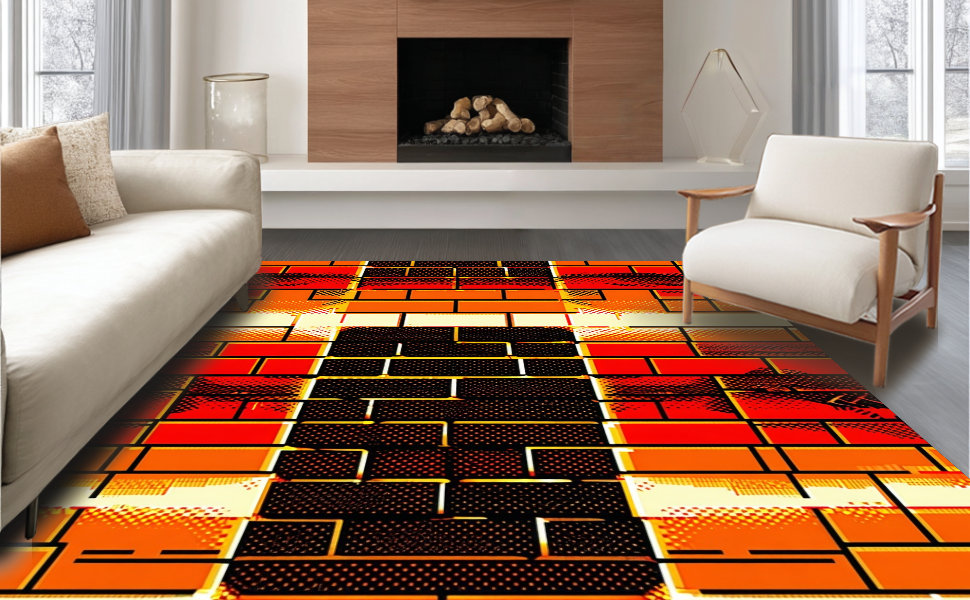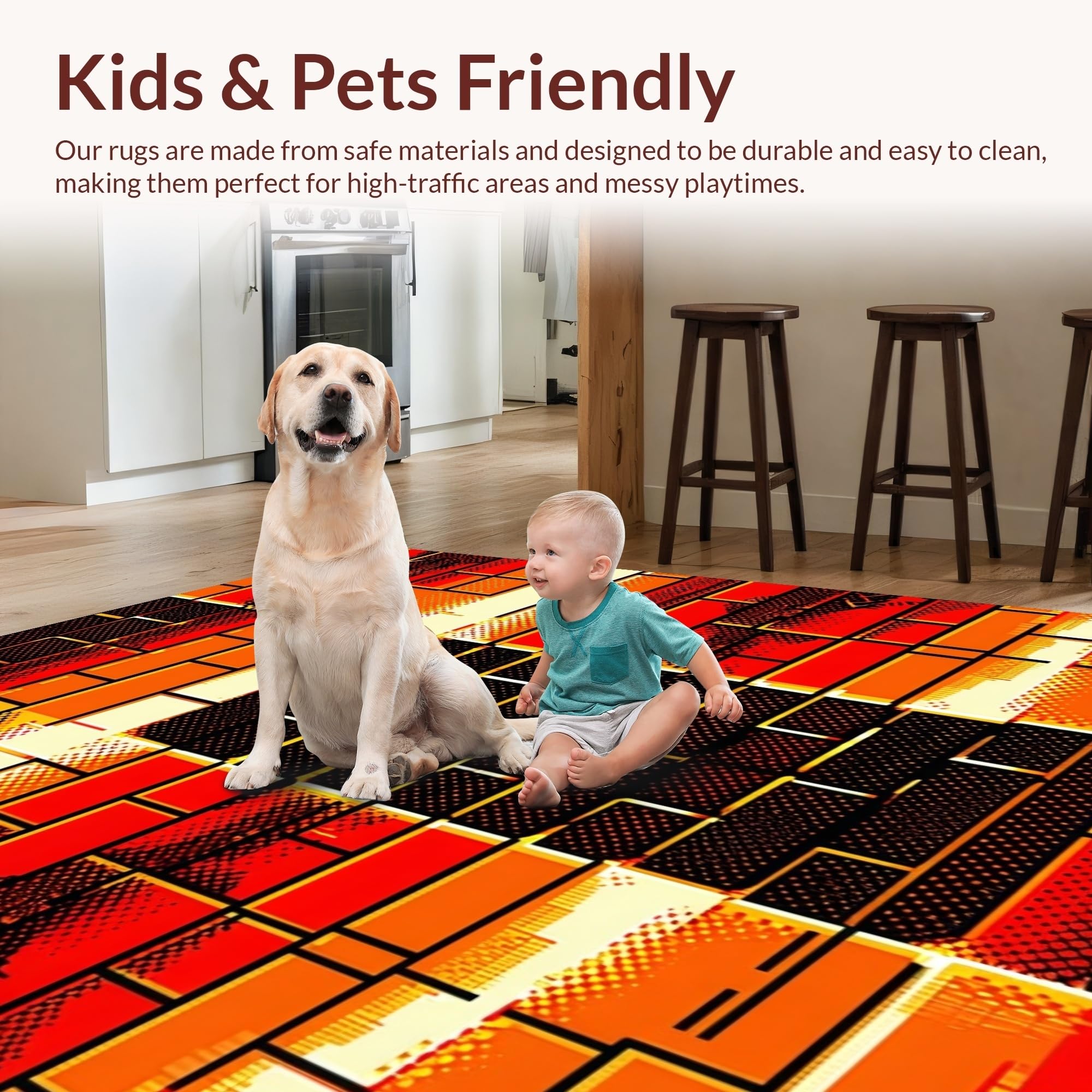 Ultra Soft Area Rug, Non Slip, Stain Resistant, Washable Area Rugs for Living Room, Bedroom, Bold Brick Pattern Fusion(Red) Overview: