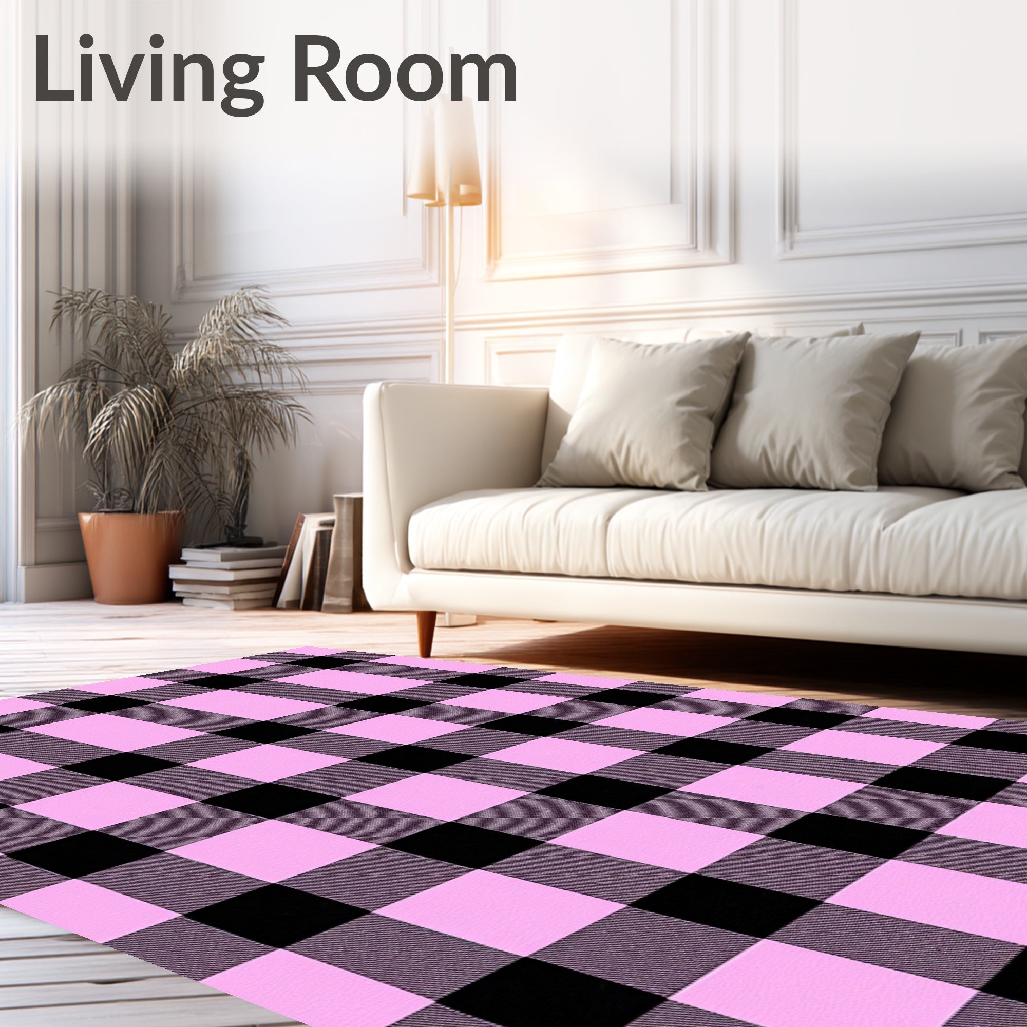 Ultra Soft Area Rug, Non Slip, Stain Resistant, Washable Area Rugs for Living Room, Bedroom, Bold Buffalo Check Motif Composed of Large Contrasting Blocks(Pink) Overview: