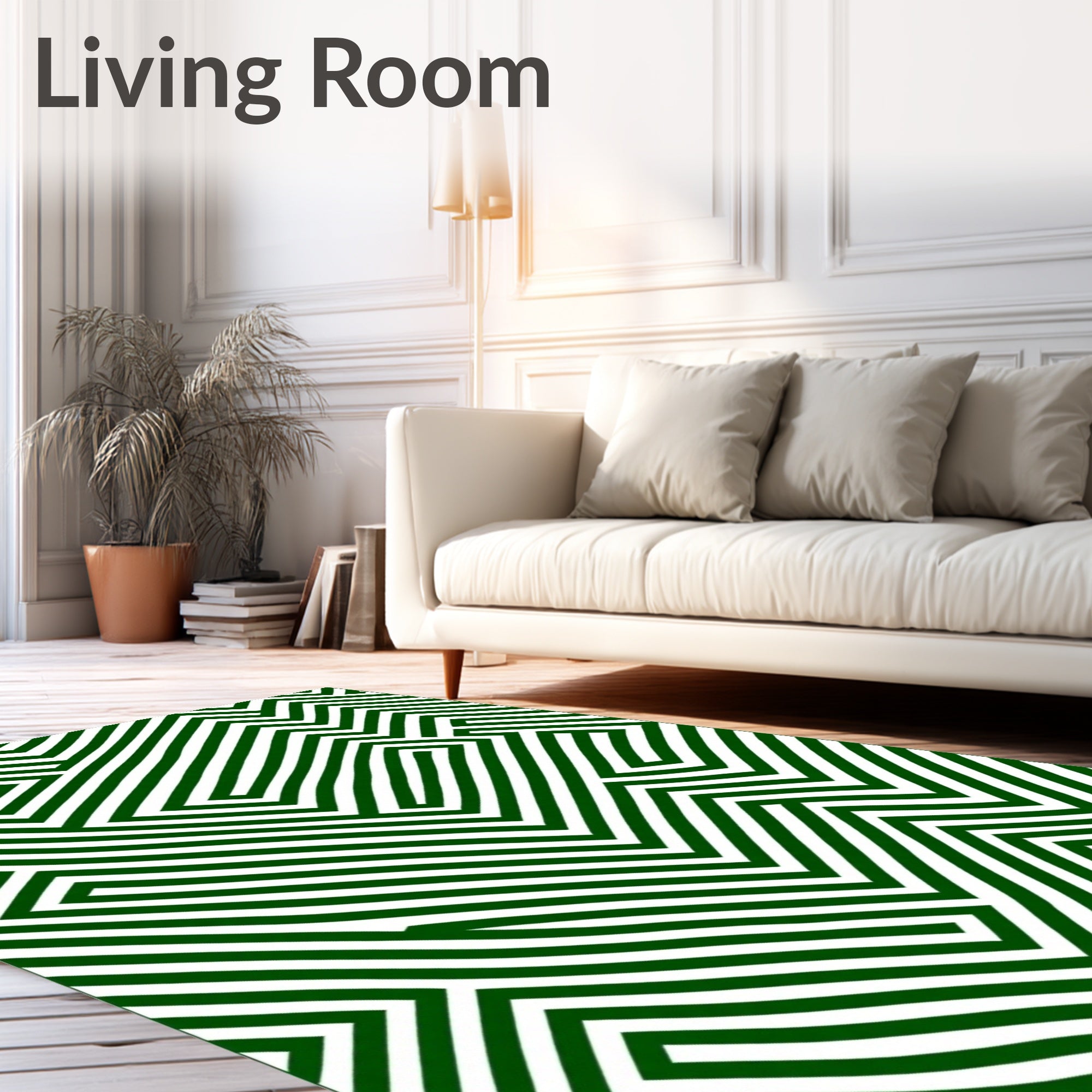 Ultra Soft Area Rug, Non Slip, Stain Resistant, Washable Area Rugs for Living Room, Bedroom, Bold Chevron Inspired Stripe Sequence in Monochrome(Green) Overview: