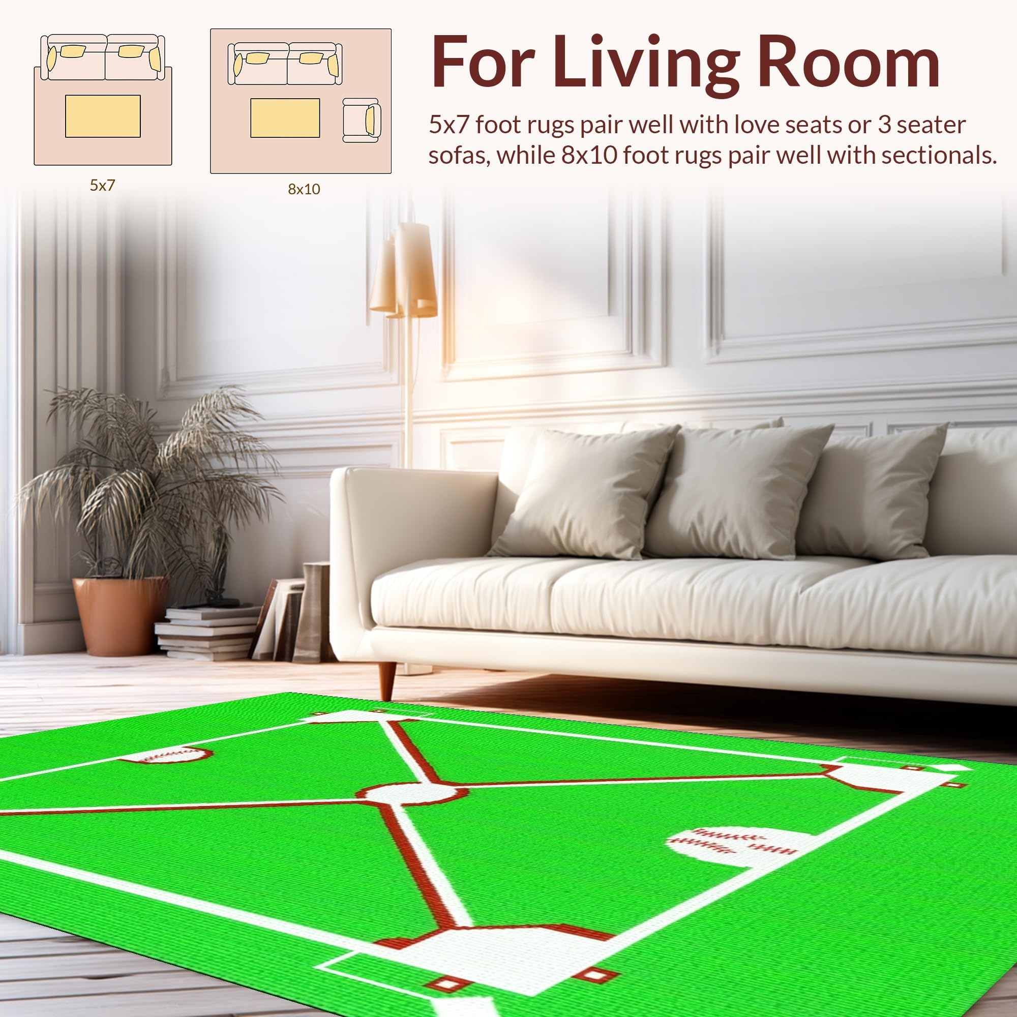 Ultra Soft Area Rug, Non Slip, Stain Resistant, Washable Area Rugs for Living Room, Bedroom, Bold Circular Stitch Detail(Green) Overview: