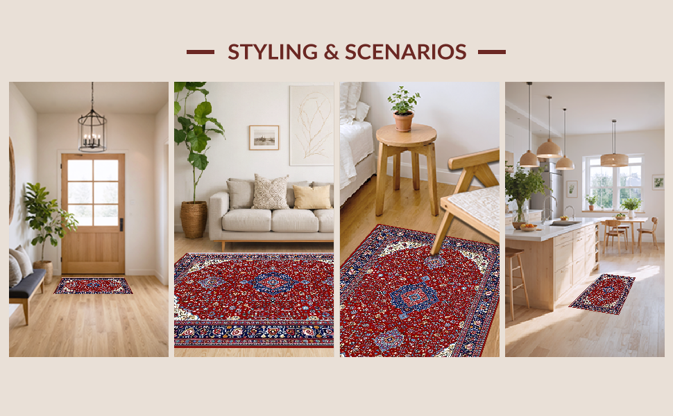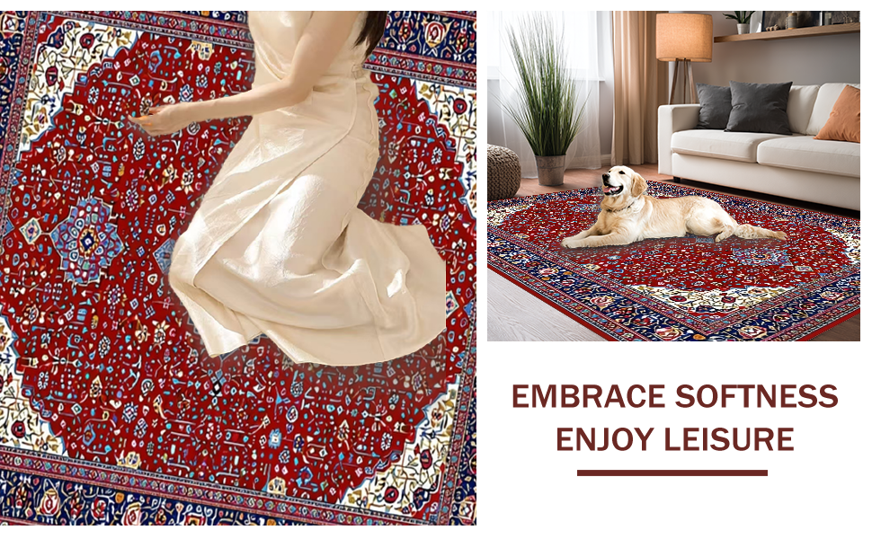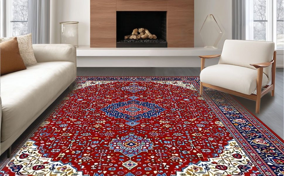 Ultra Soft Area Rug, Non Slip, Stain Resistant, Washable Area Rugs for Living Room, Bedroom, Bold Color Blocked Geometric Artistry(Red) Overview: