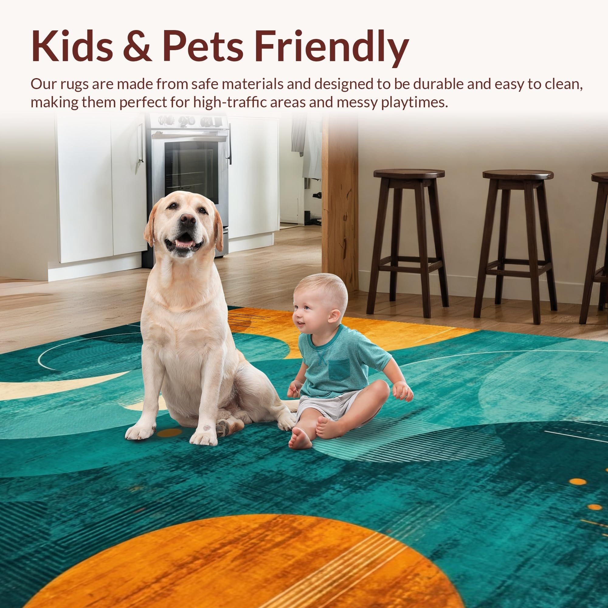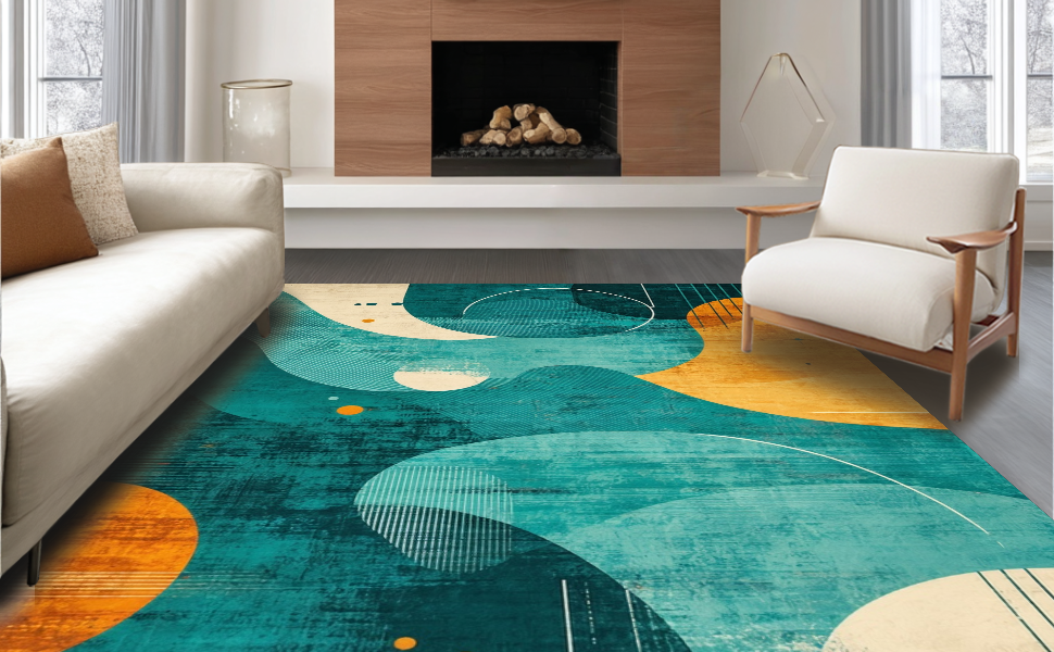 Ultra Soft Area Rug, Non Slip, Stain Resistant, Washable Area Rugs for Living Room, Bedroom, Bold Color Contrast Splash Design(Blue) Overview: