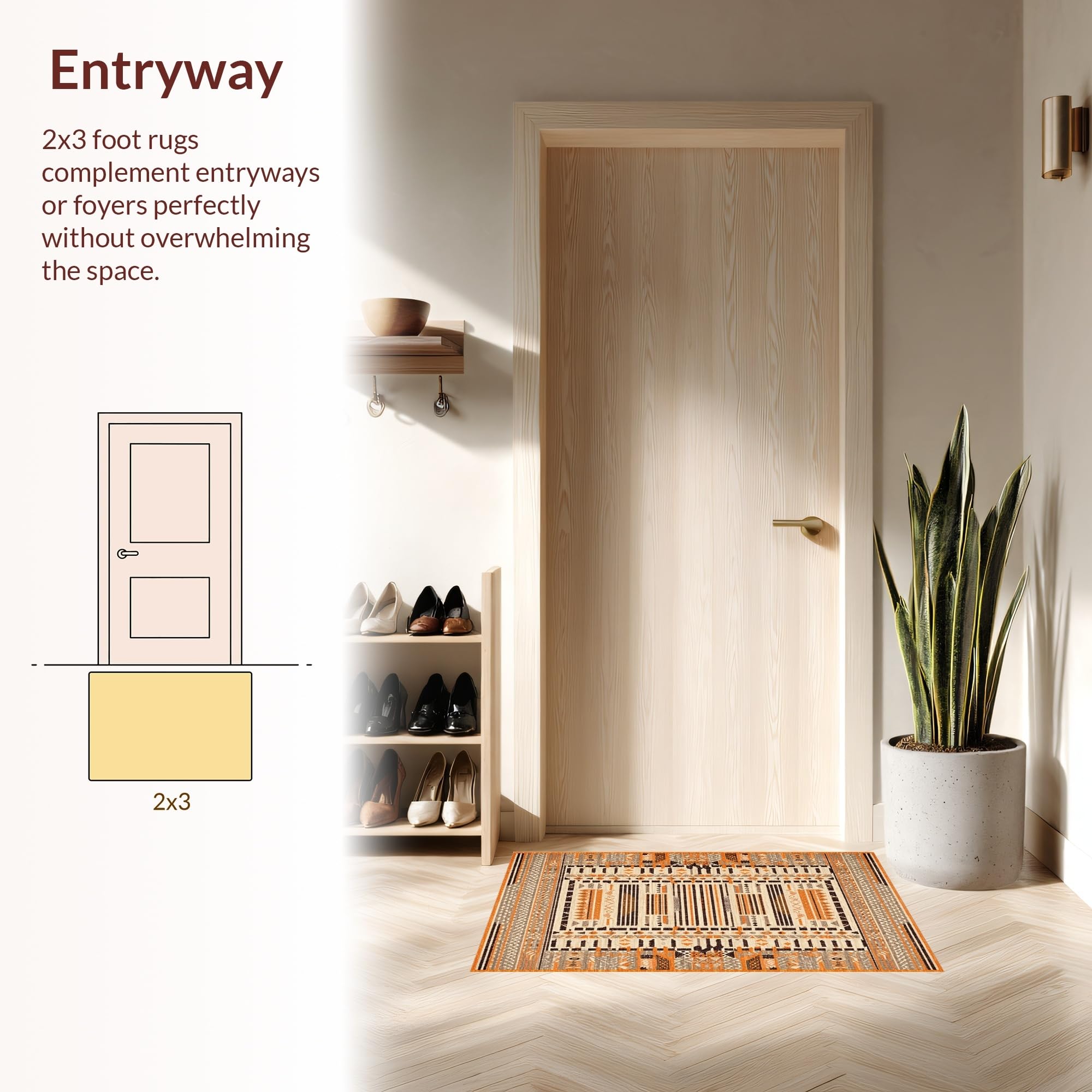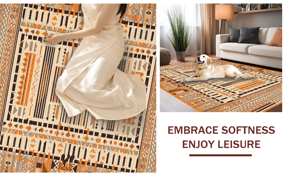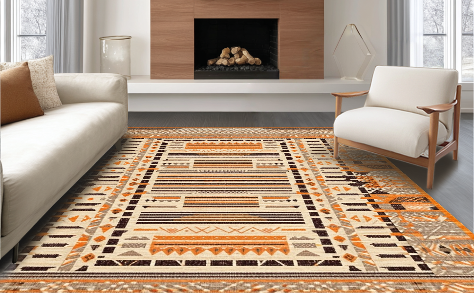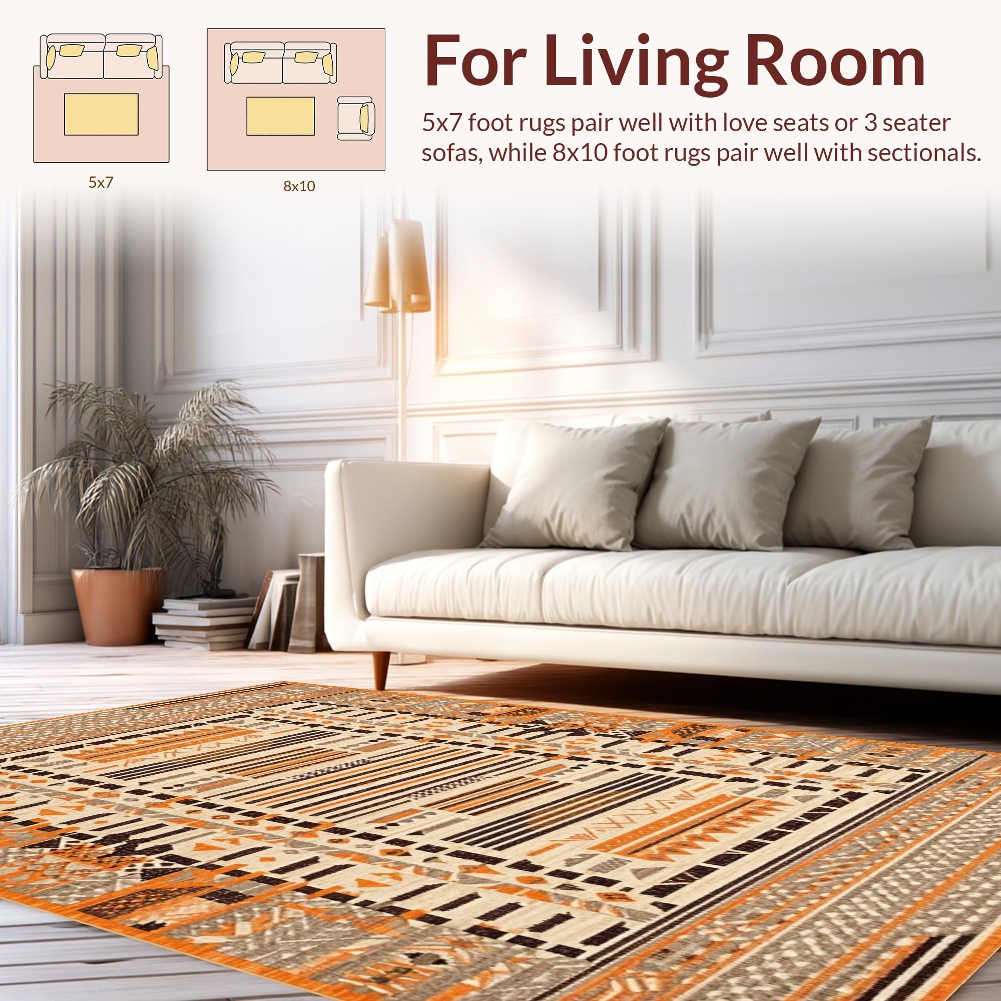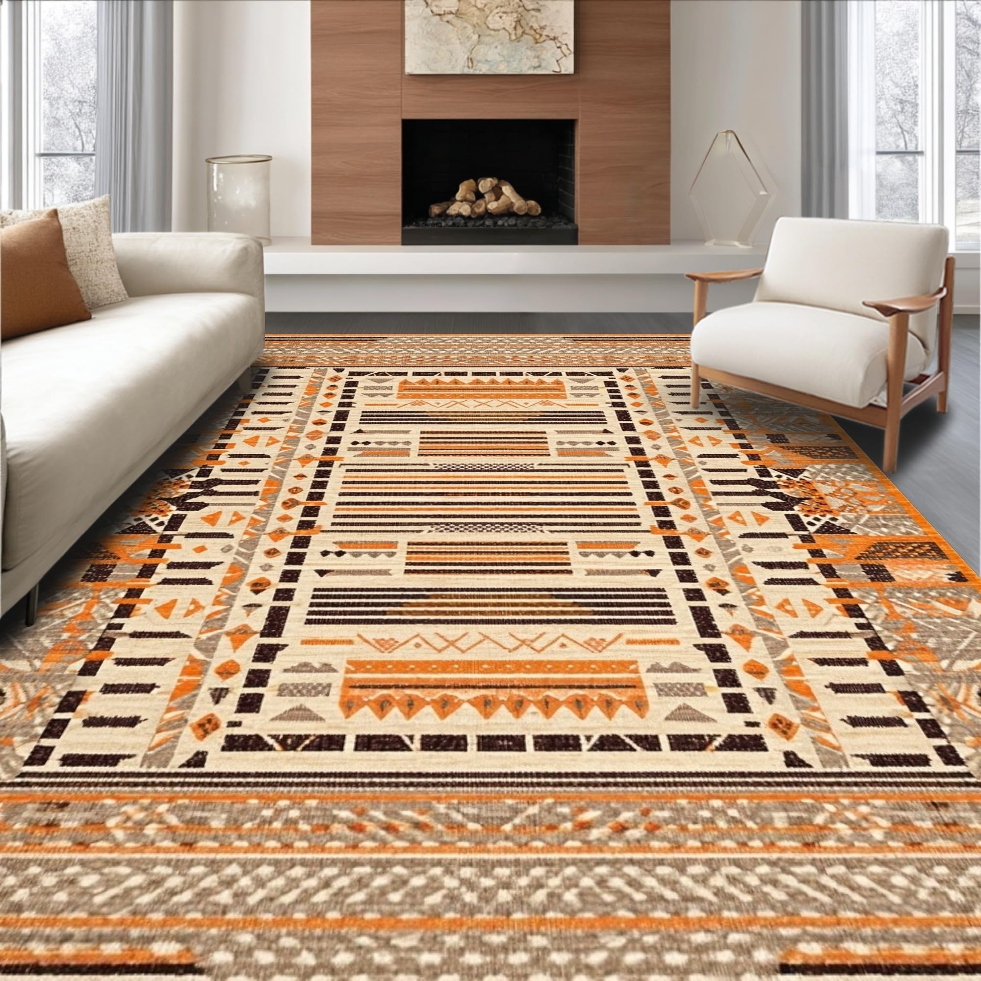 Ultra Soft Area Rug, Non Slip, Stain Resistant, Washable Area Rugs for Living Room, Bedroom, Bold Colorful Lattice Arrangement(Beige) Overview: