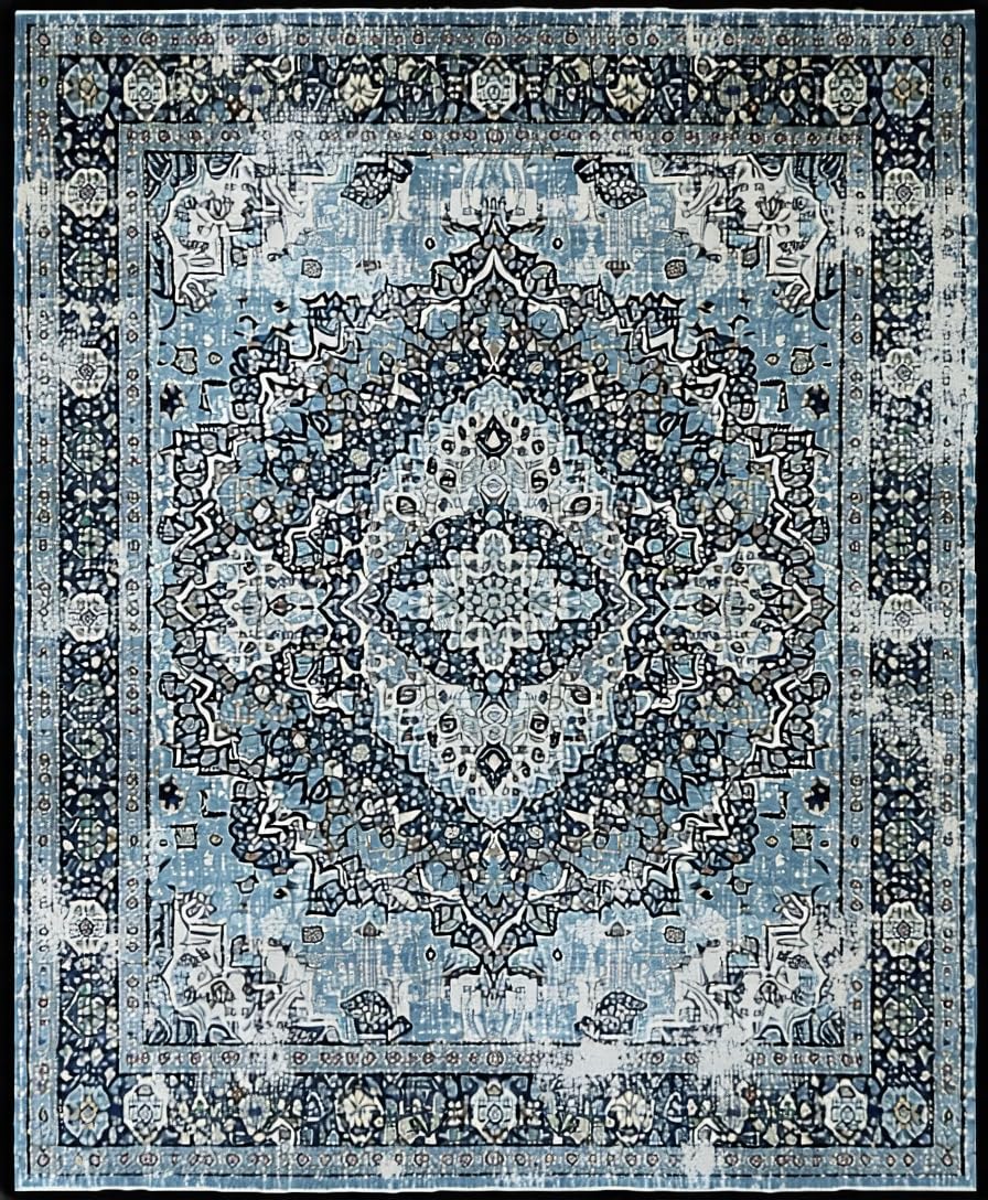 Ultra Soft Area Rug, Non Slip, Stain Resistant, Washable Area Rugs for Living Room, Bedroom, Bold Contemporary Diamond Motif(Blue) Overview: