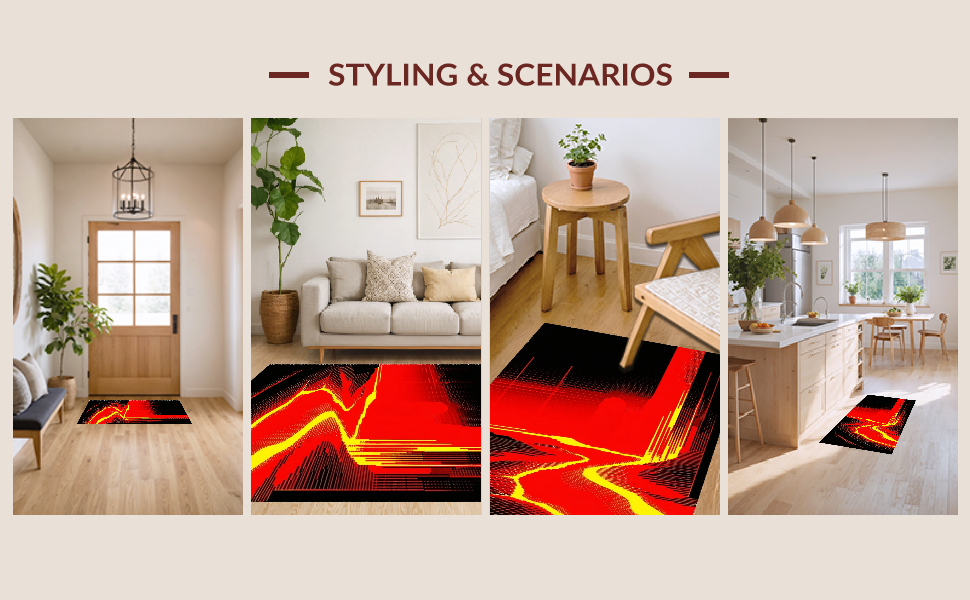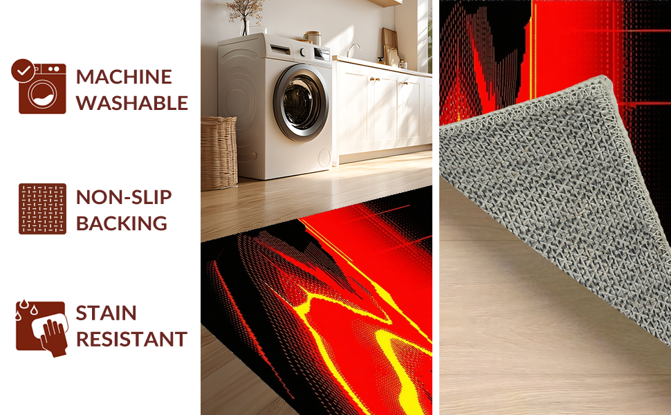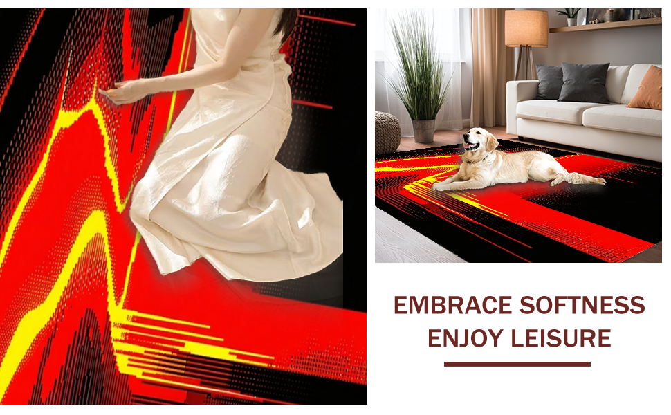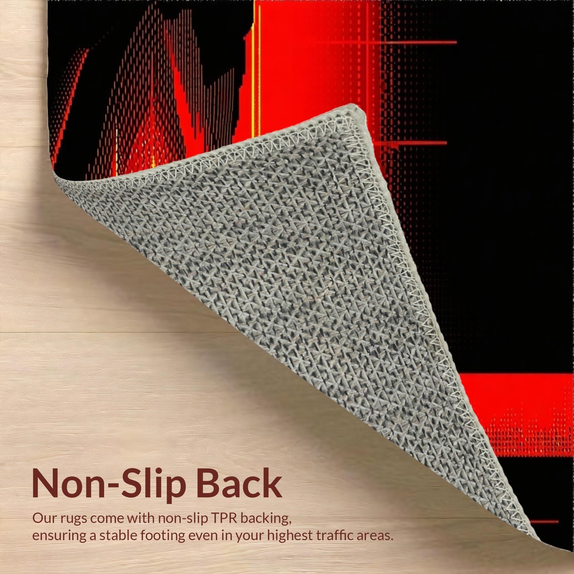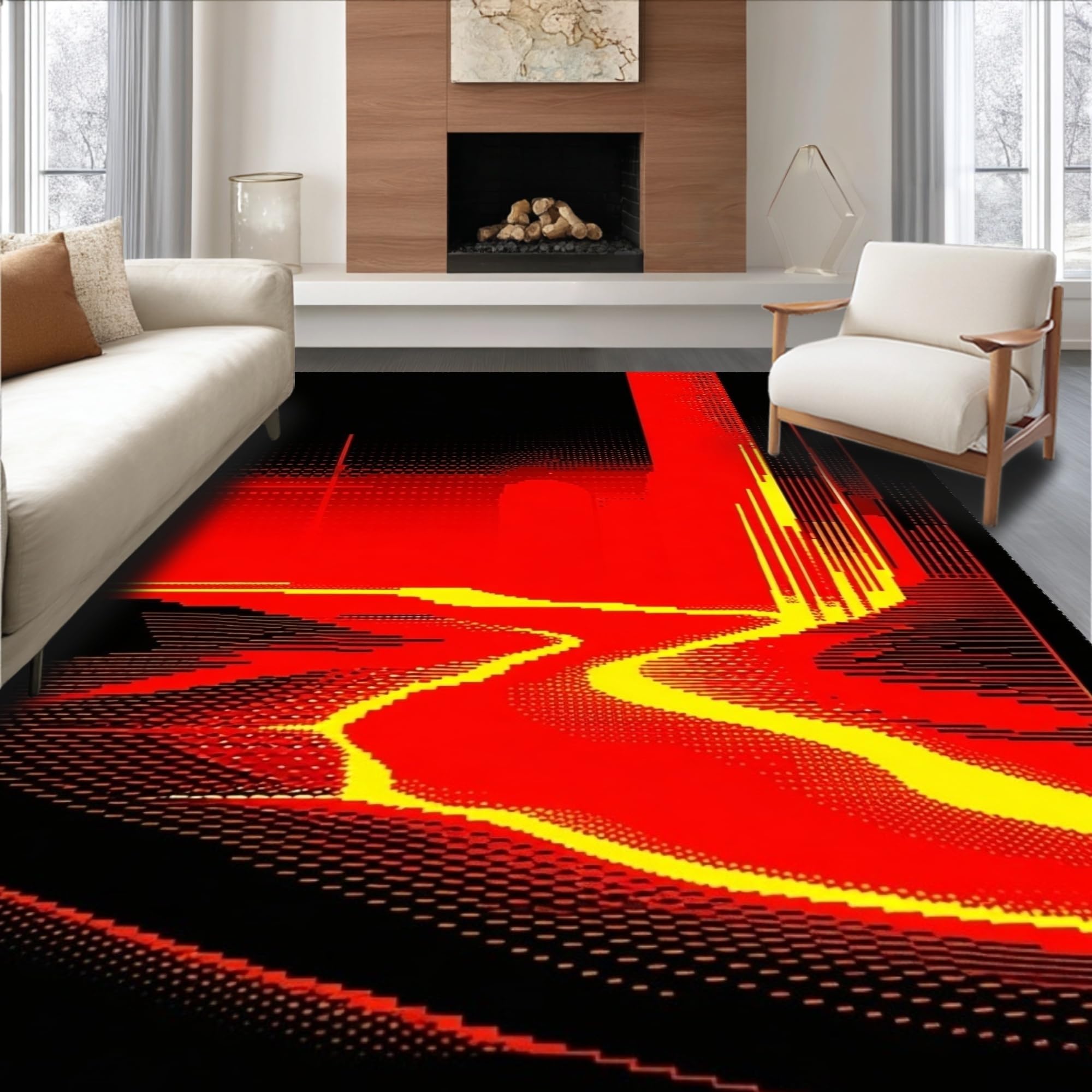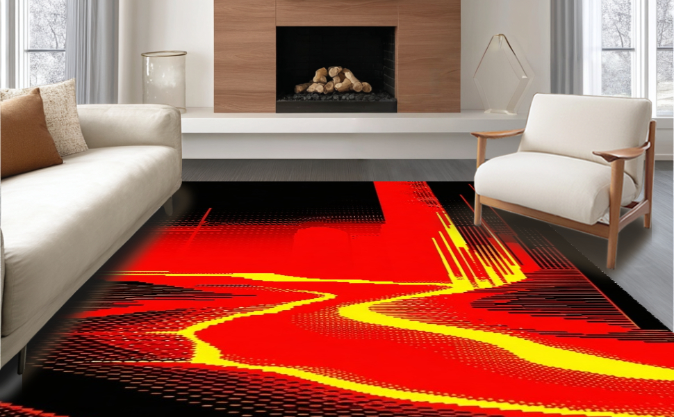 Ultra Soft Area Rug, Non Slip, Stain Resistant, Washable Area Rugs for Living Room, Bedroom, Bold Contemporary Magma Inspired Design(Red) Overview:
