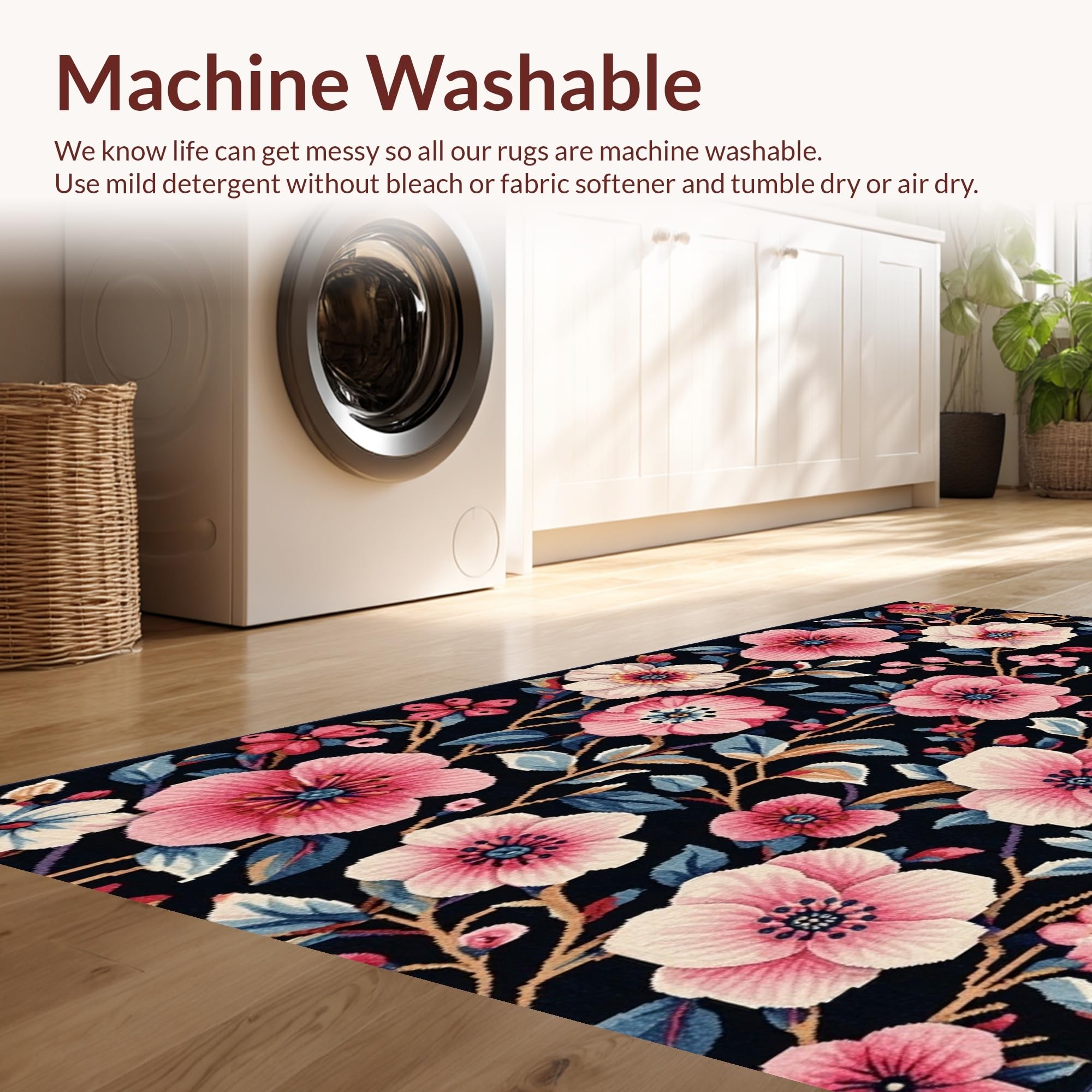 - Machine Washable: Our rugs can be easily thrown in the wash machine.