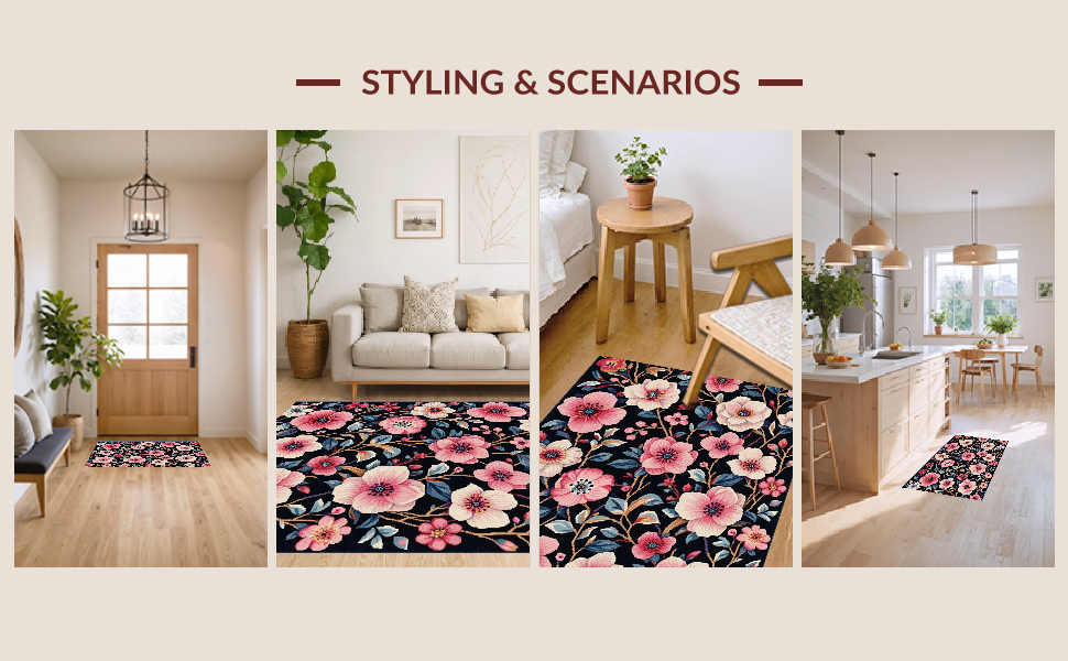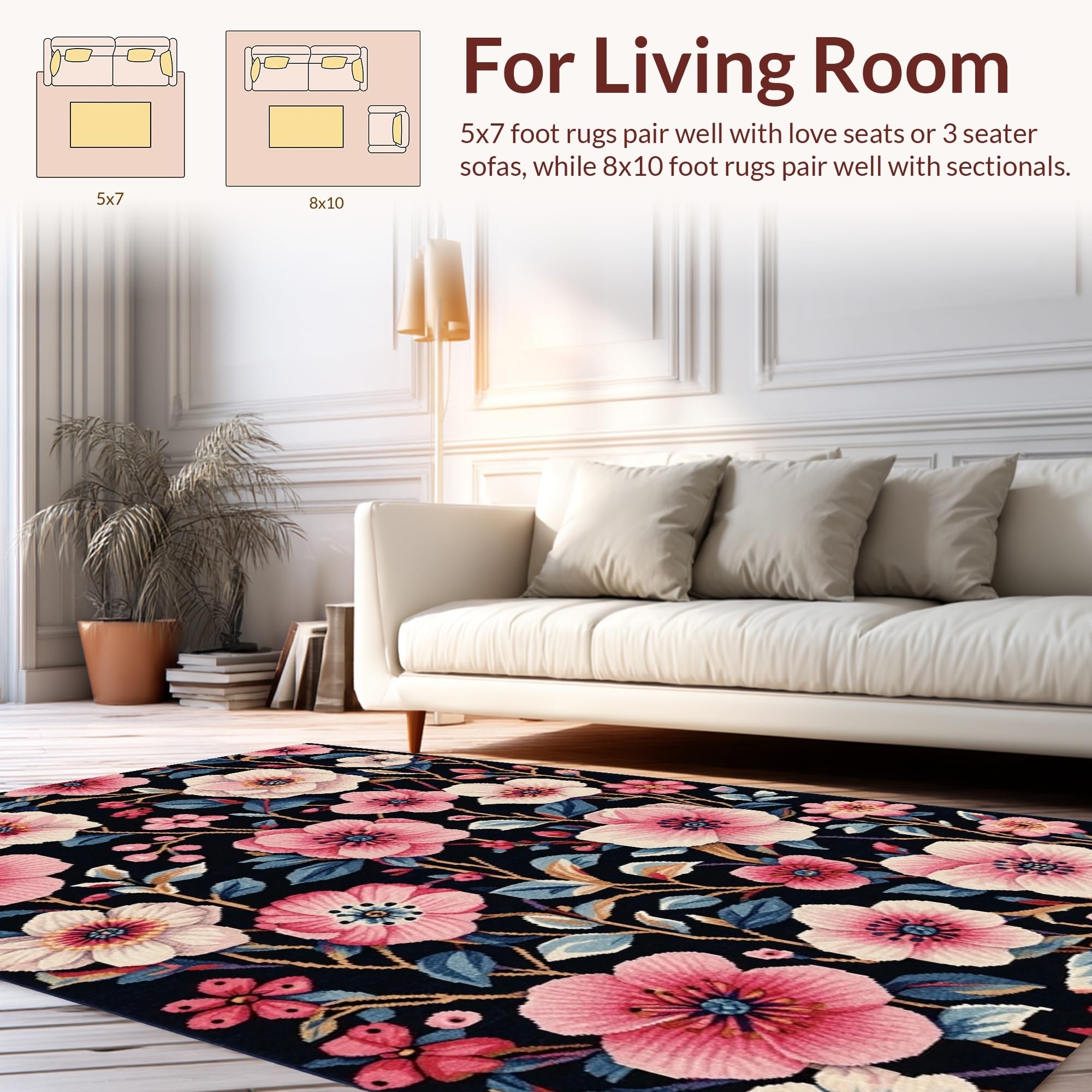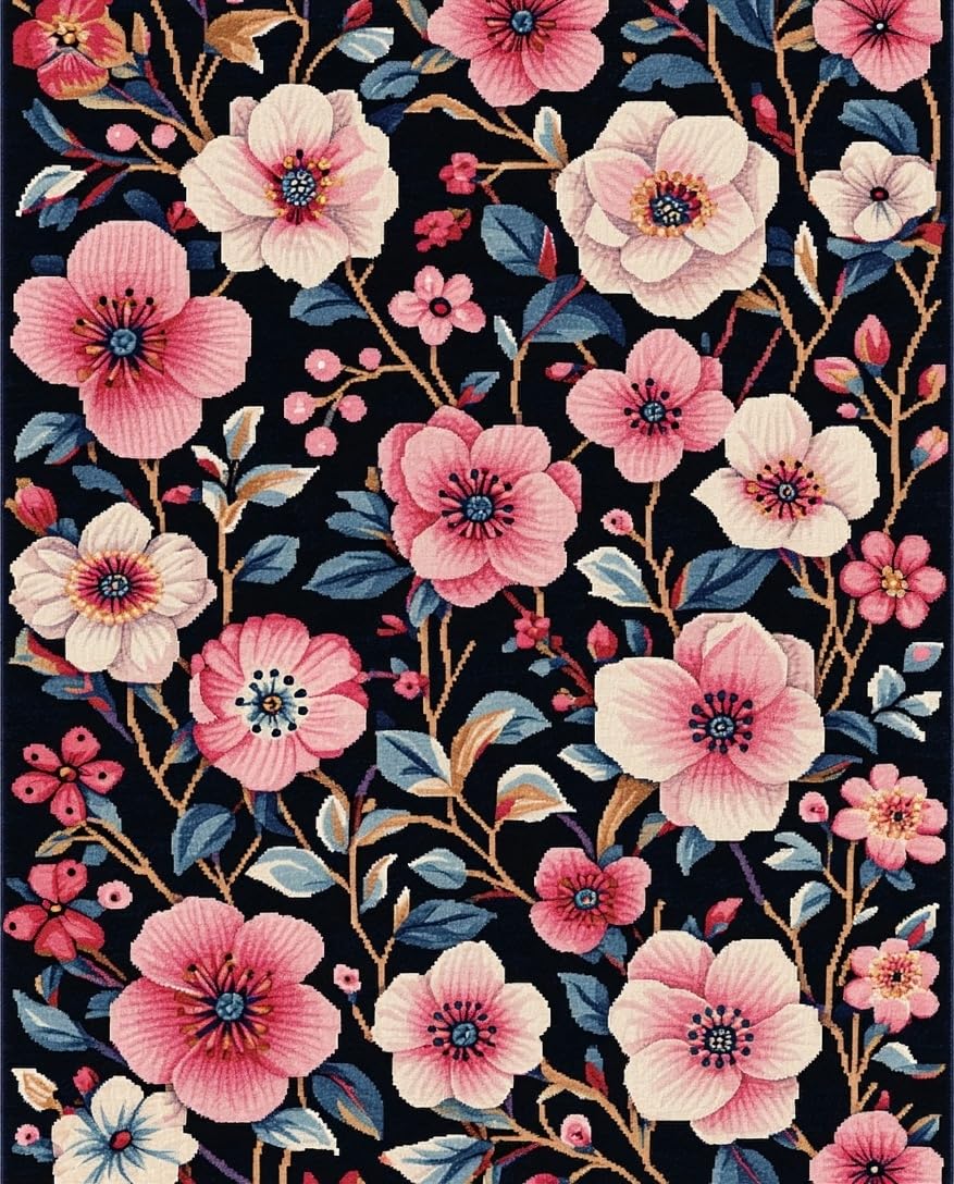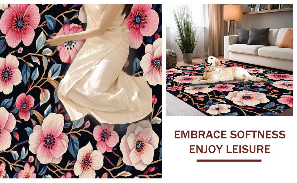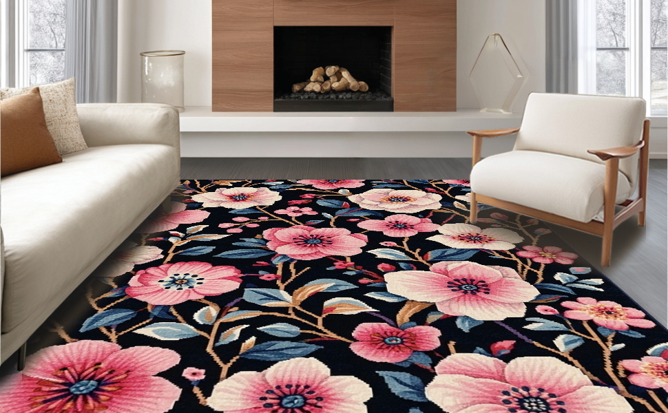 Ultra Soft Area Rug, Non Slip, Stain Resistant, Washable Area Rugs for Living Room, Bedroom, Bold Contemporary Petal Inspired(Black) Overview: