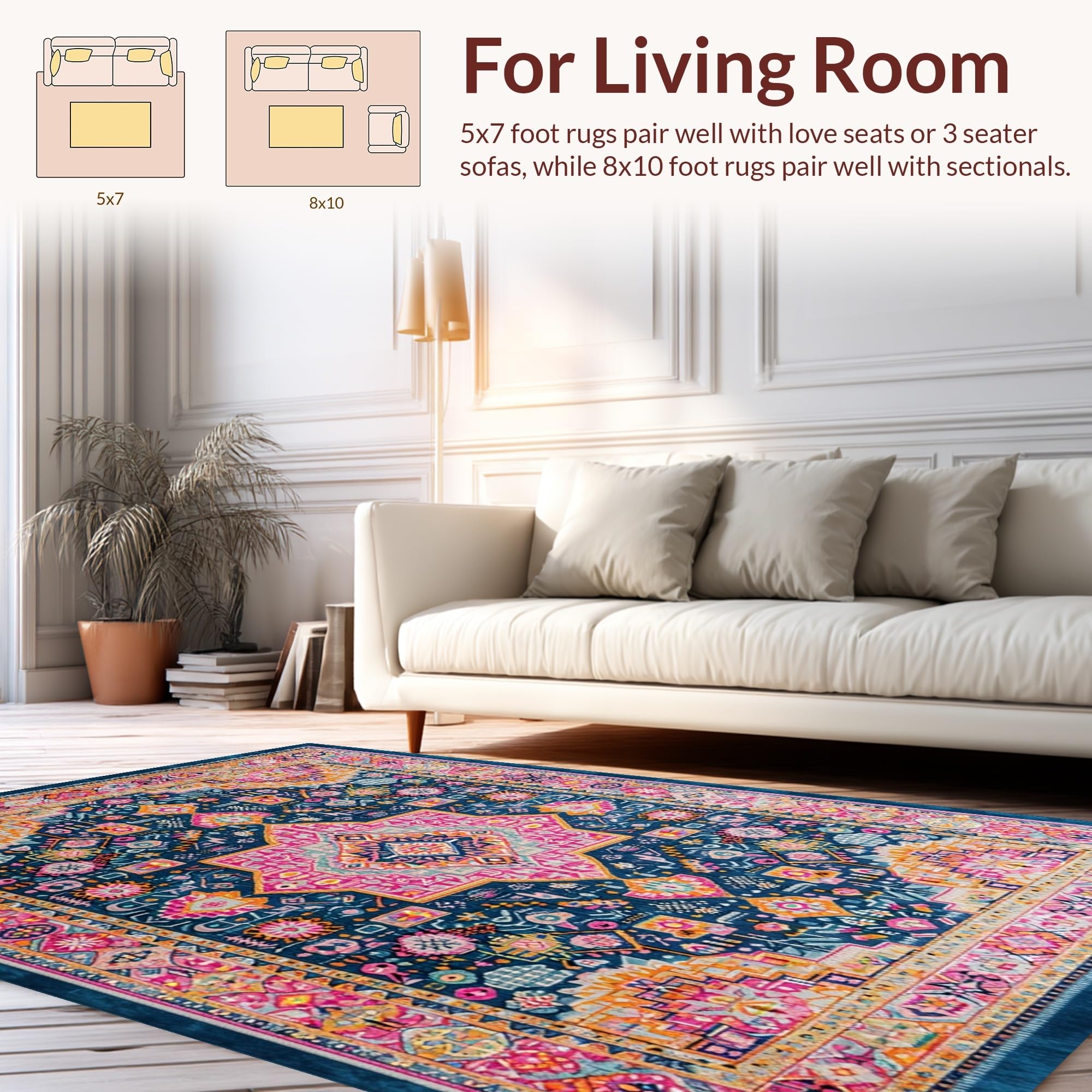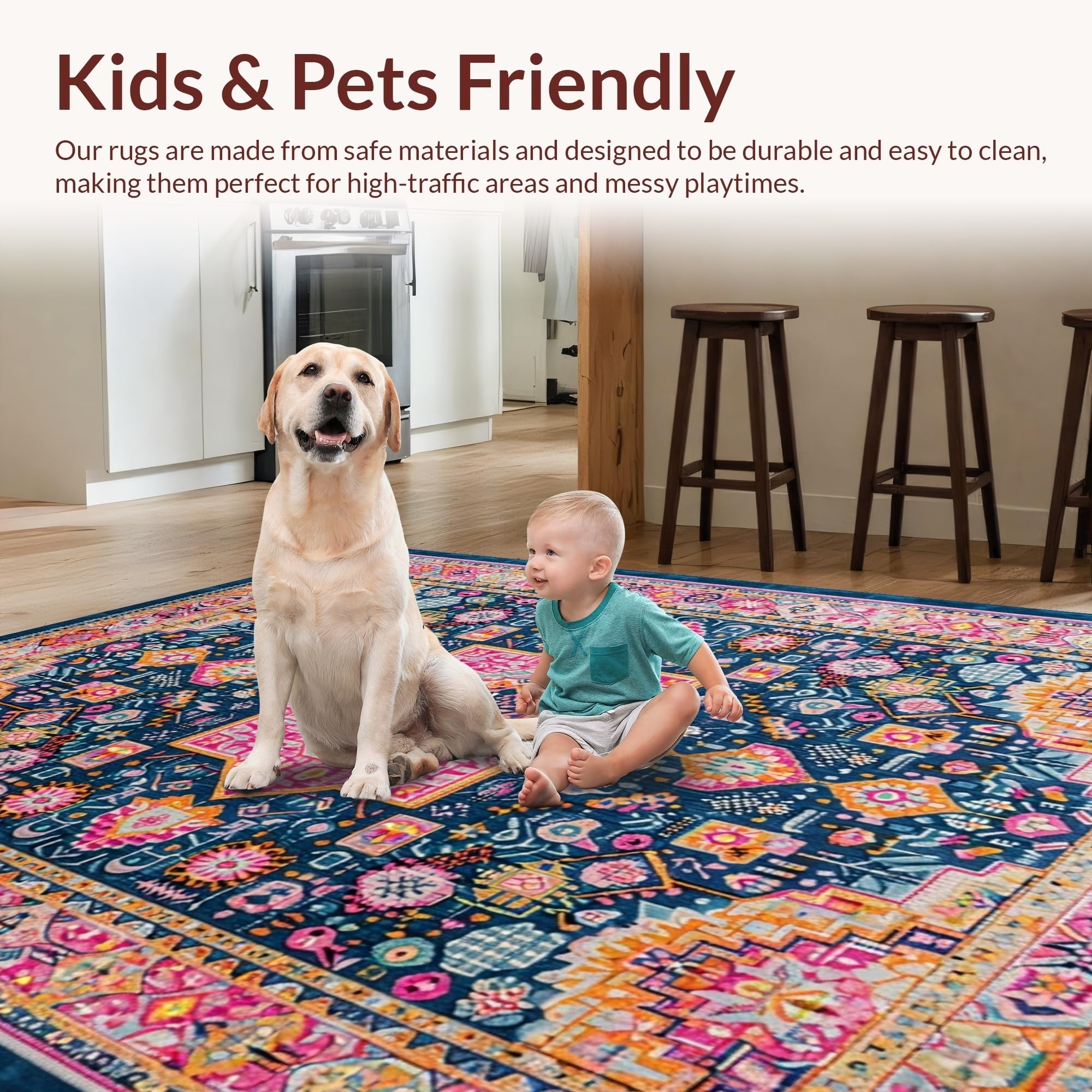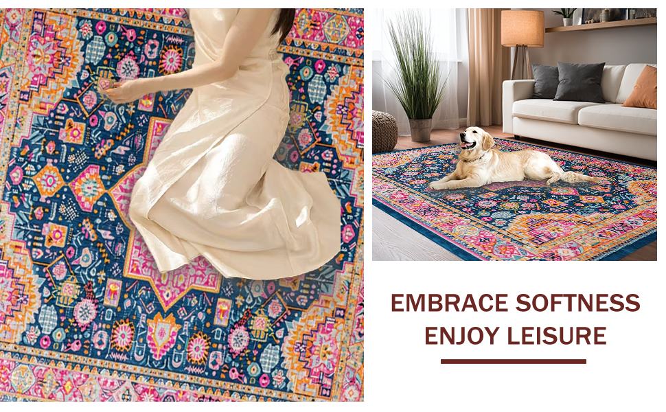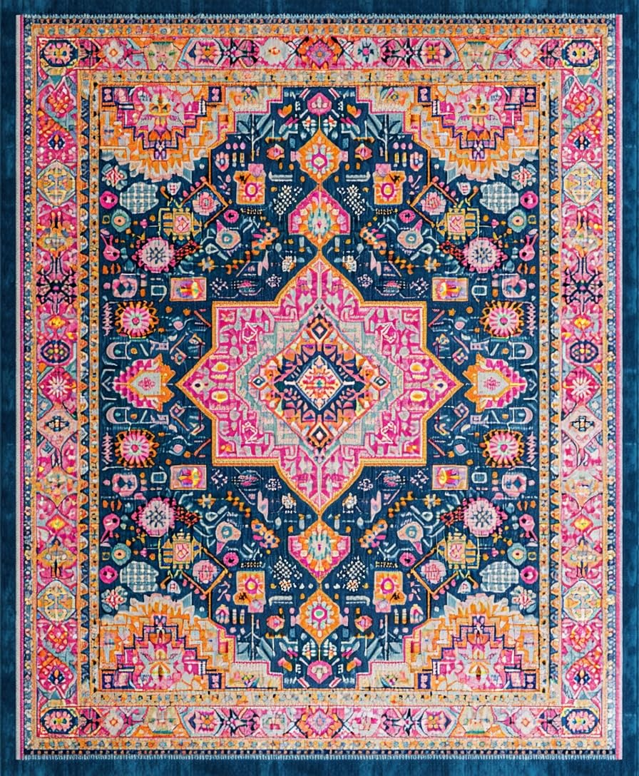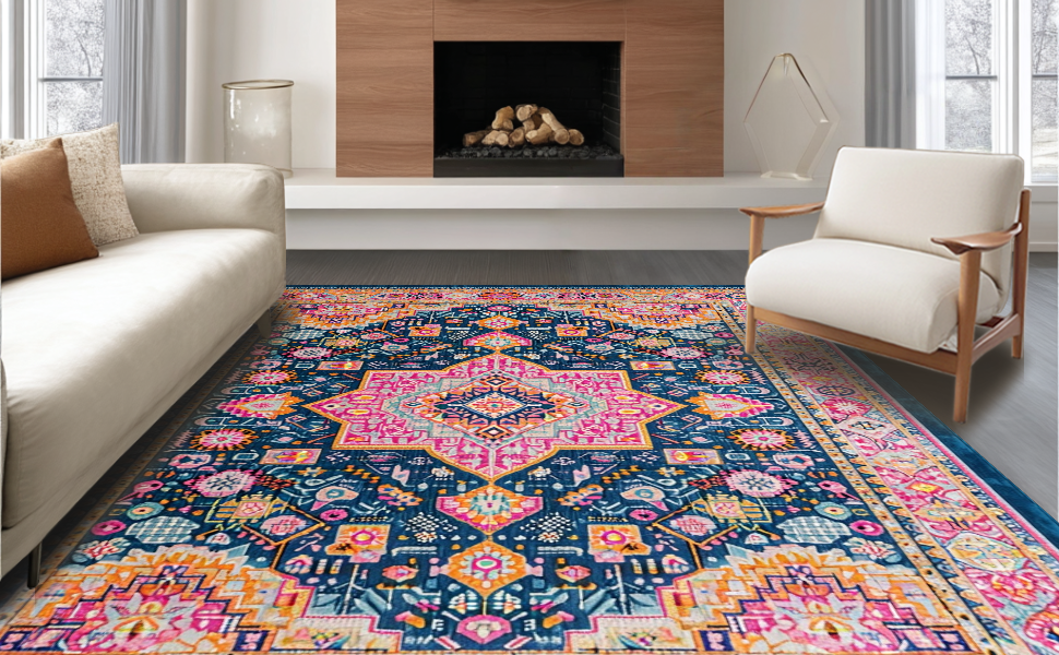 Ultra Soft Area Rug, Non Slip, Stain Resistant, Washable Area Rugs for Living Room, Bedroom, Bold Contemporary Symmetrical Design(Blue) Overview: