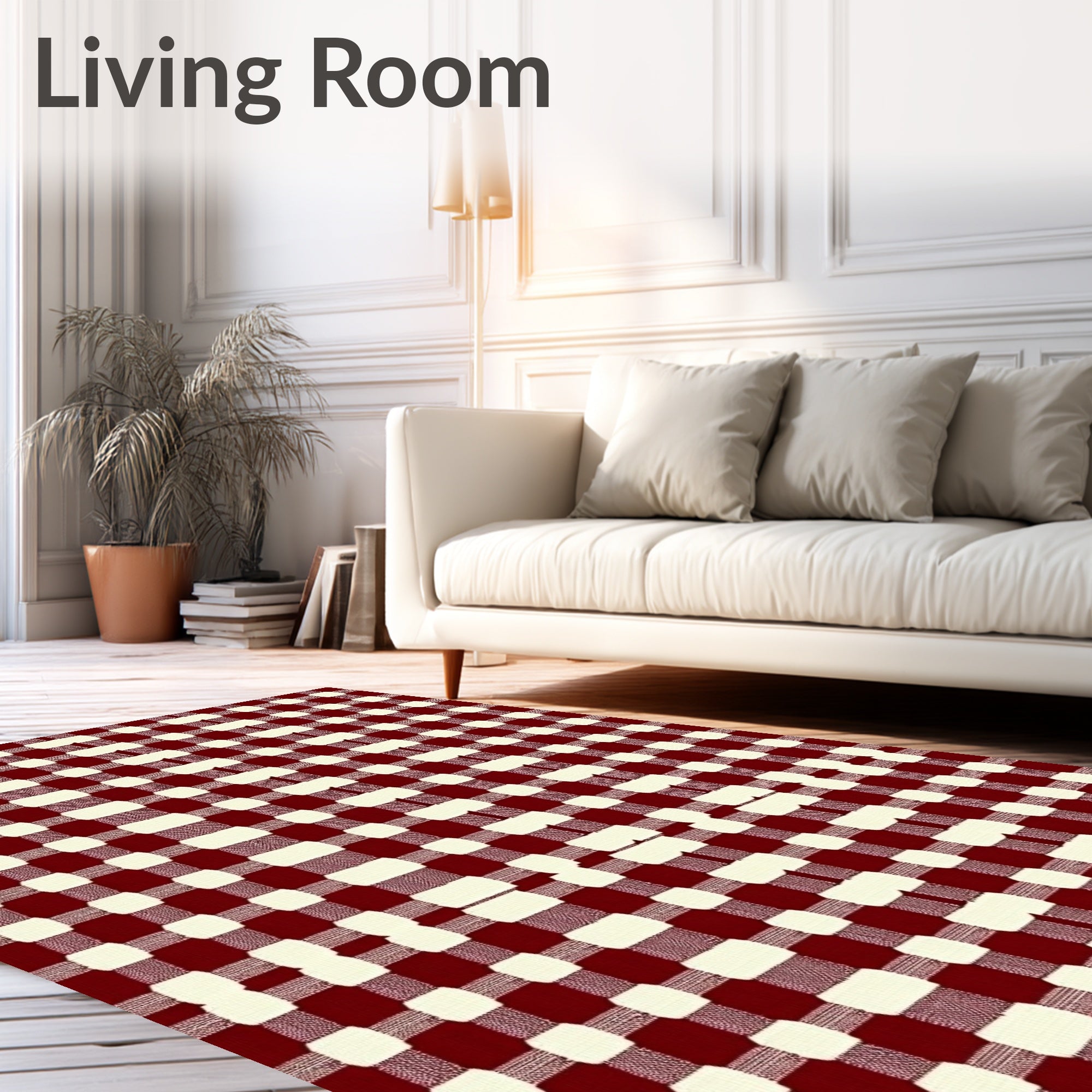 Ultra Soft Area Rug, Non Slip, Stain Resistant, Washable Area Rugs for Living Room, Bedroom, Bold Crimson and Ivory Buffalo Check with Distinctive Grid(Red) Overview: