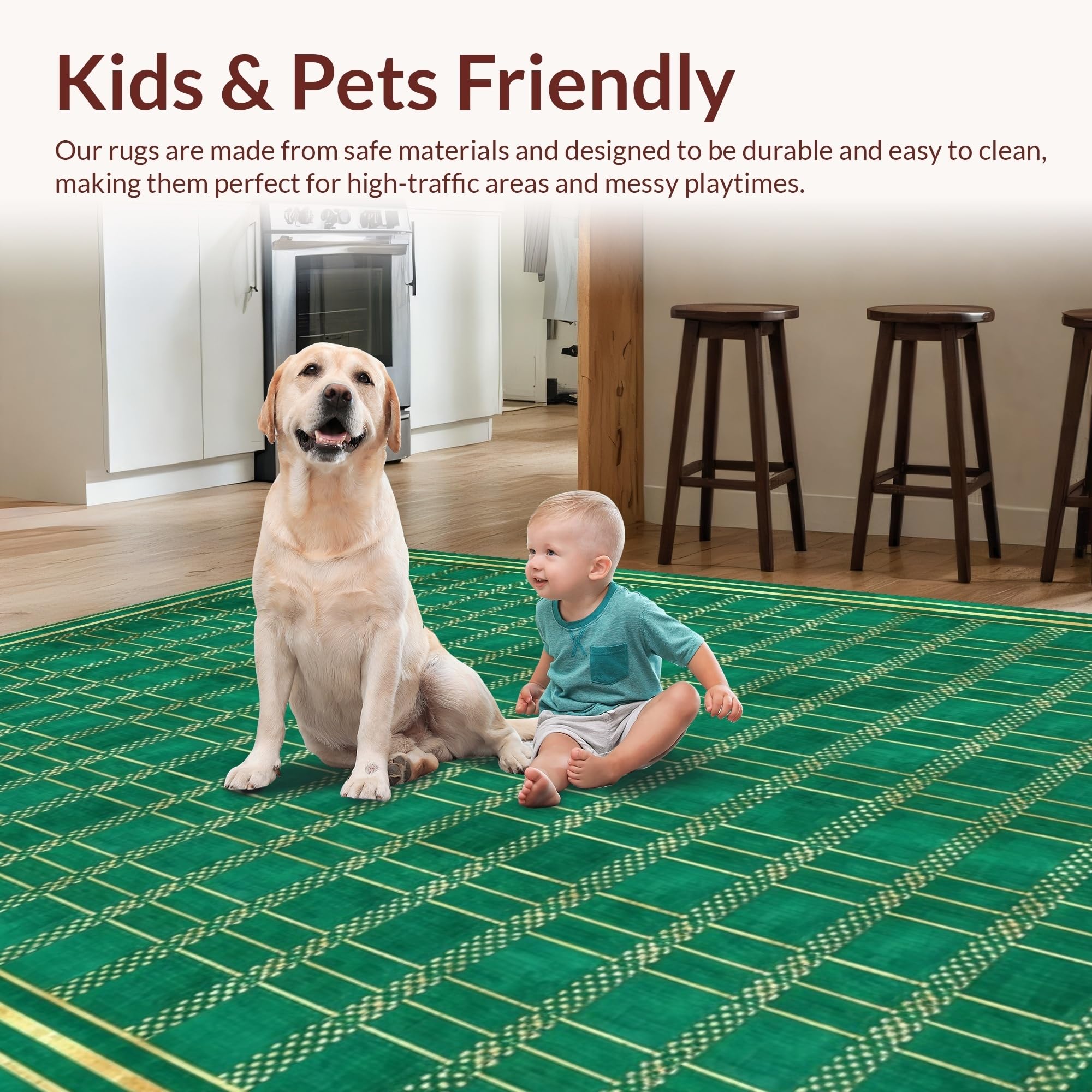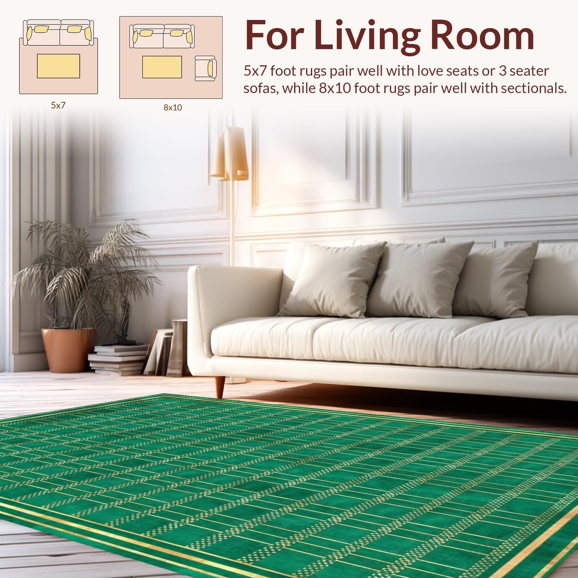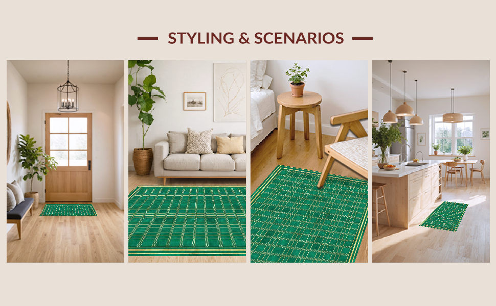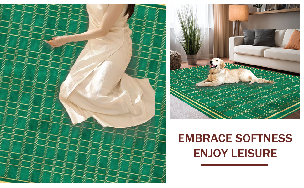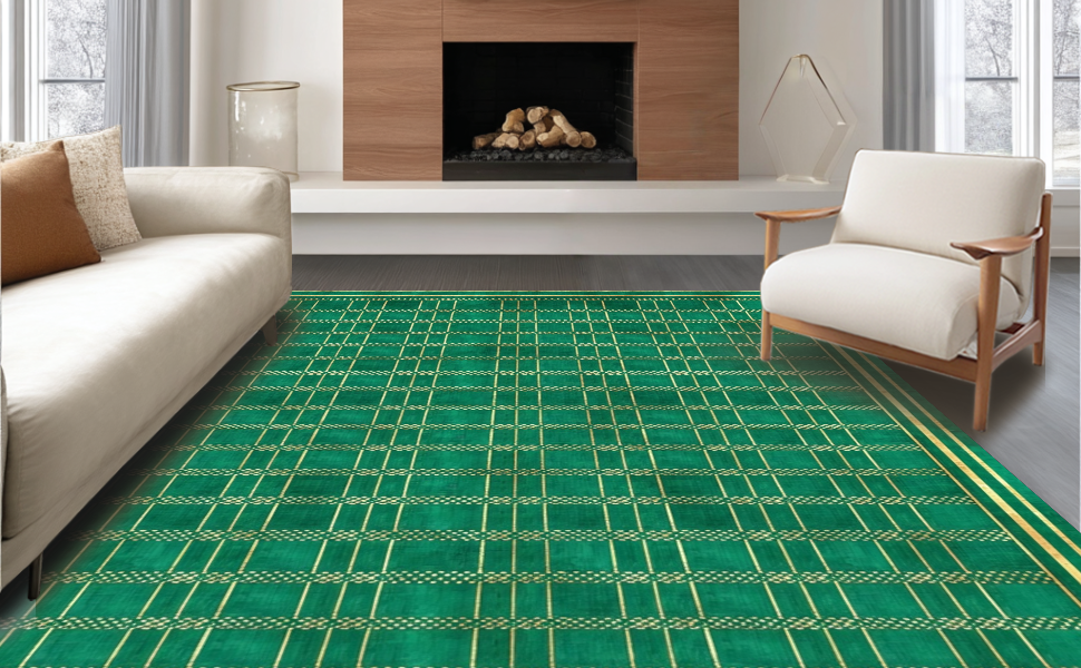 Ultra Soft Area Rug, Non Slip, Stain Resistant, Washable Area Rugs for Living Room, Bedroom, Bold Dark Gray Geometric Flair(Green) Overview: