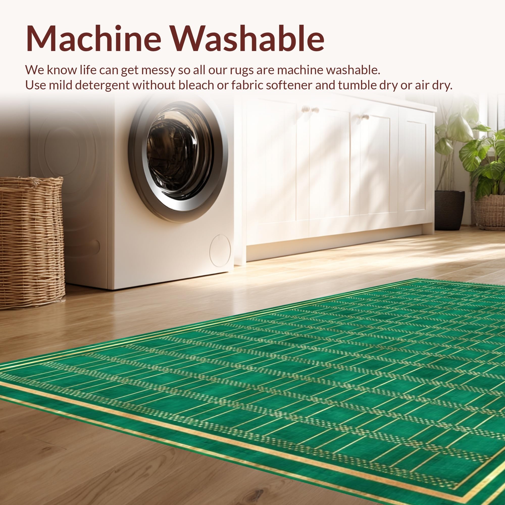 - Machine Washable: Our rugs can be easily thrown in the wash machine.