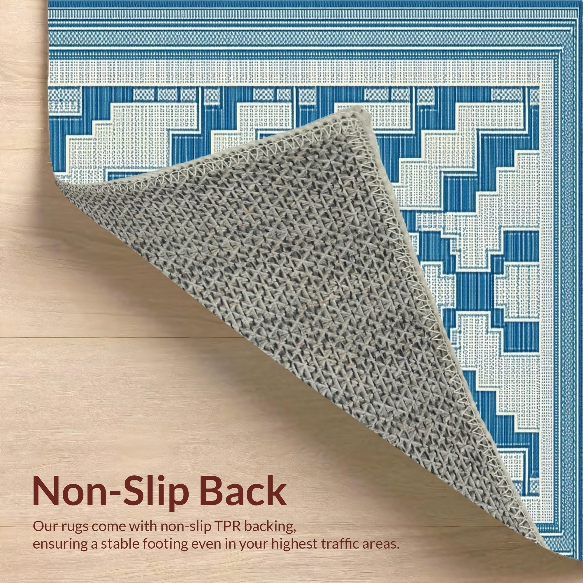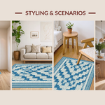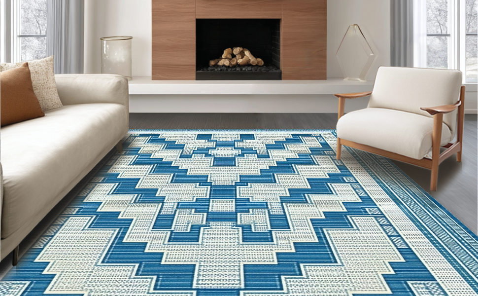 Ultra Soft Area Rug, Non Slip, Stain Resistant, Washable Area Rugs for Living Room, Bedroom, Bold Diamond Design in Cool Tones(Blue) Overview: