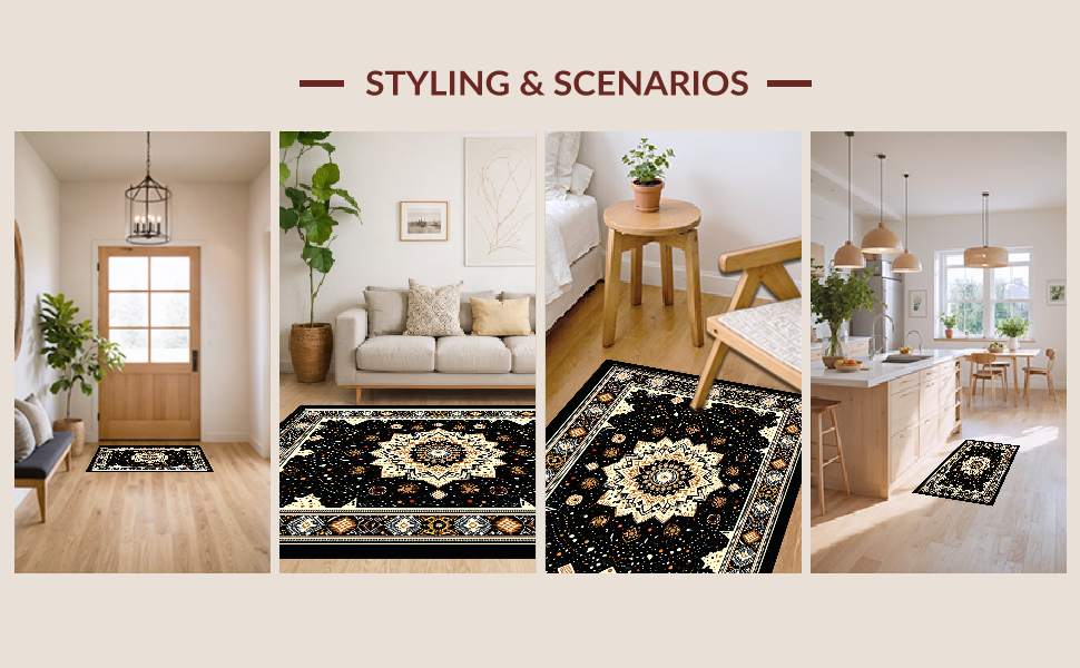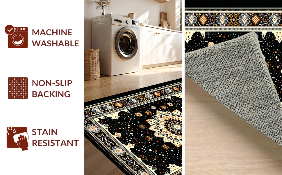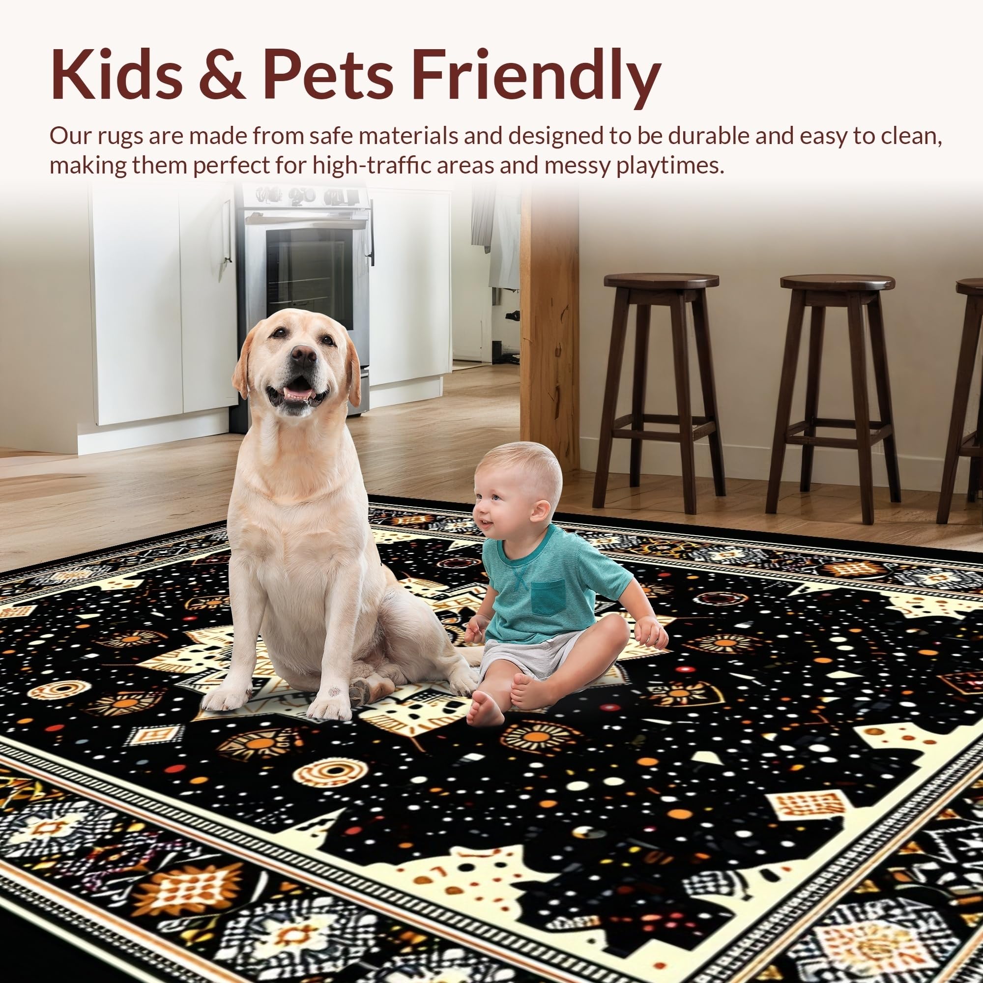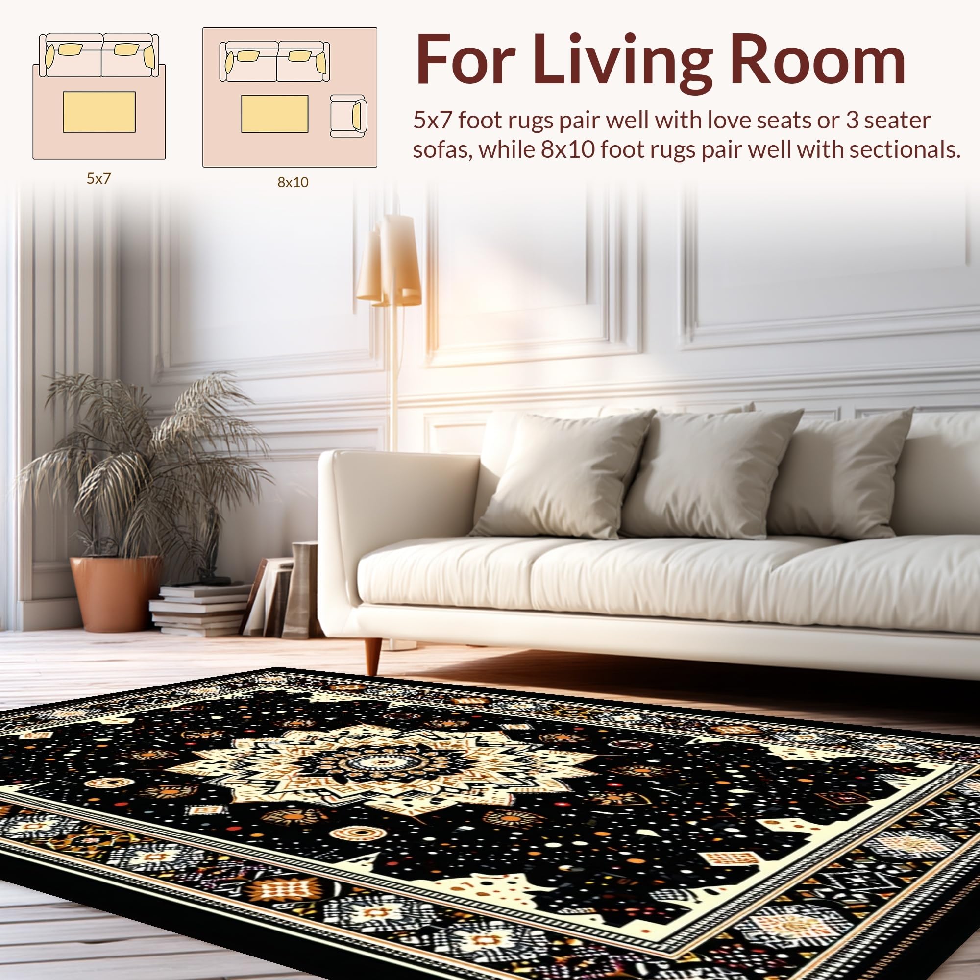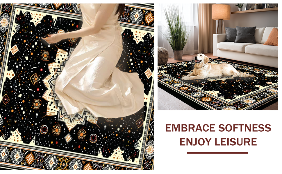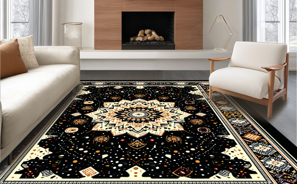 Ultra Soft Area Rug, Non Slip, Stain Resistant, Washable Area Rugs for Living Room, Bedroom, Bold Earthy Toned Patterns(Black) Overview: