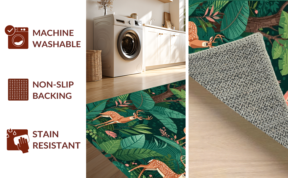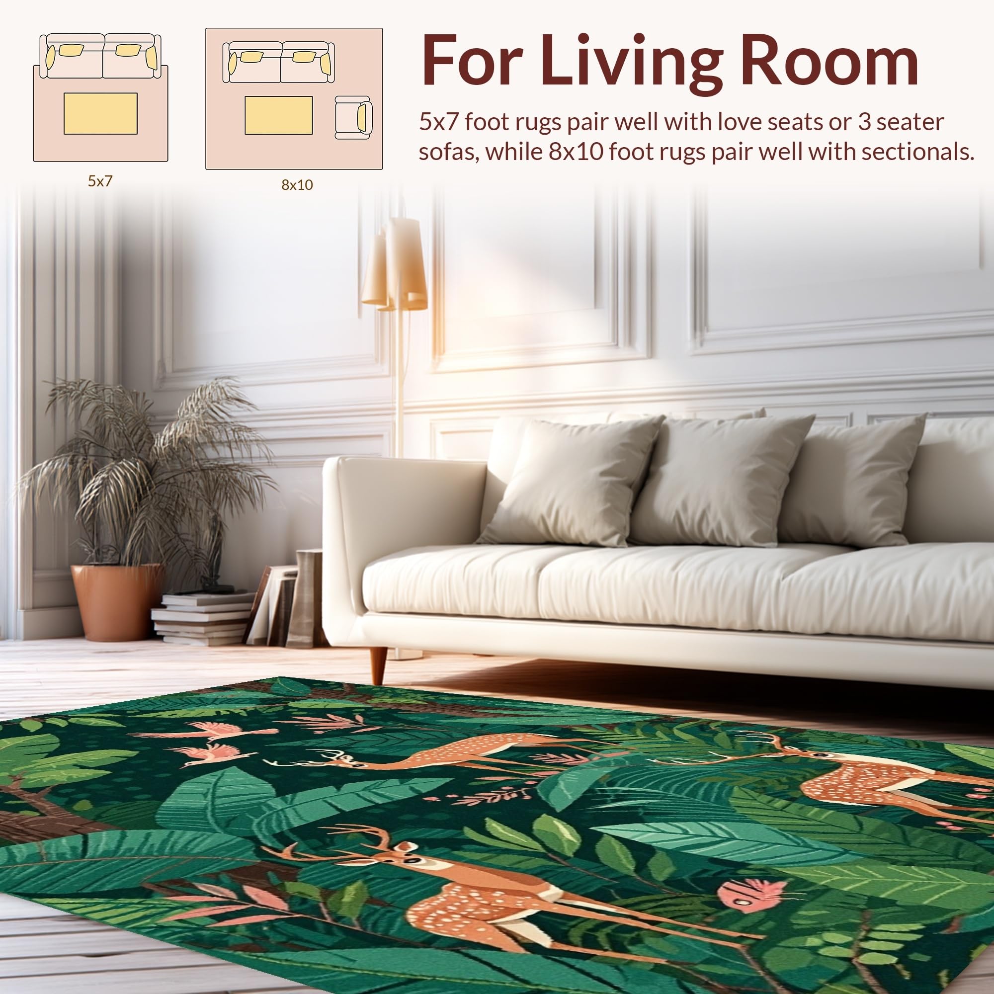 Ultra Soft Area Rug, Non Slip, Stain Resistant, Washable Area Rugs for Living Room, Bedroom, Bold Earthy Tones Artwork(Green) Overview: