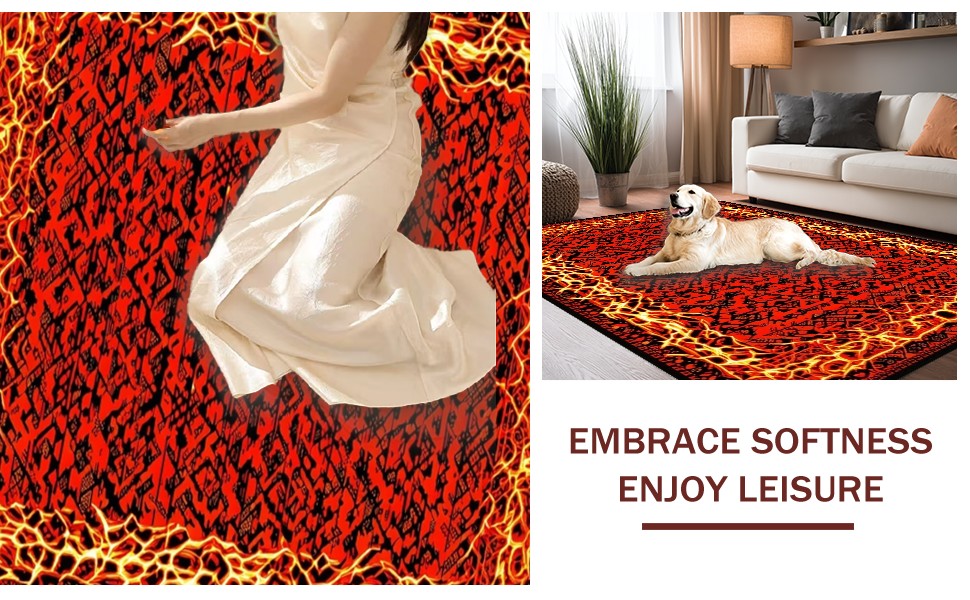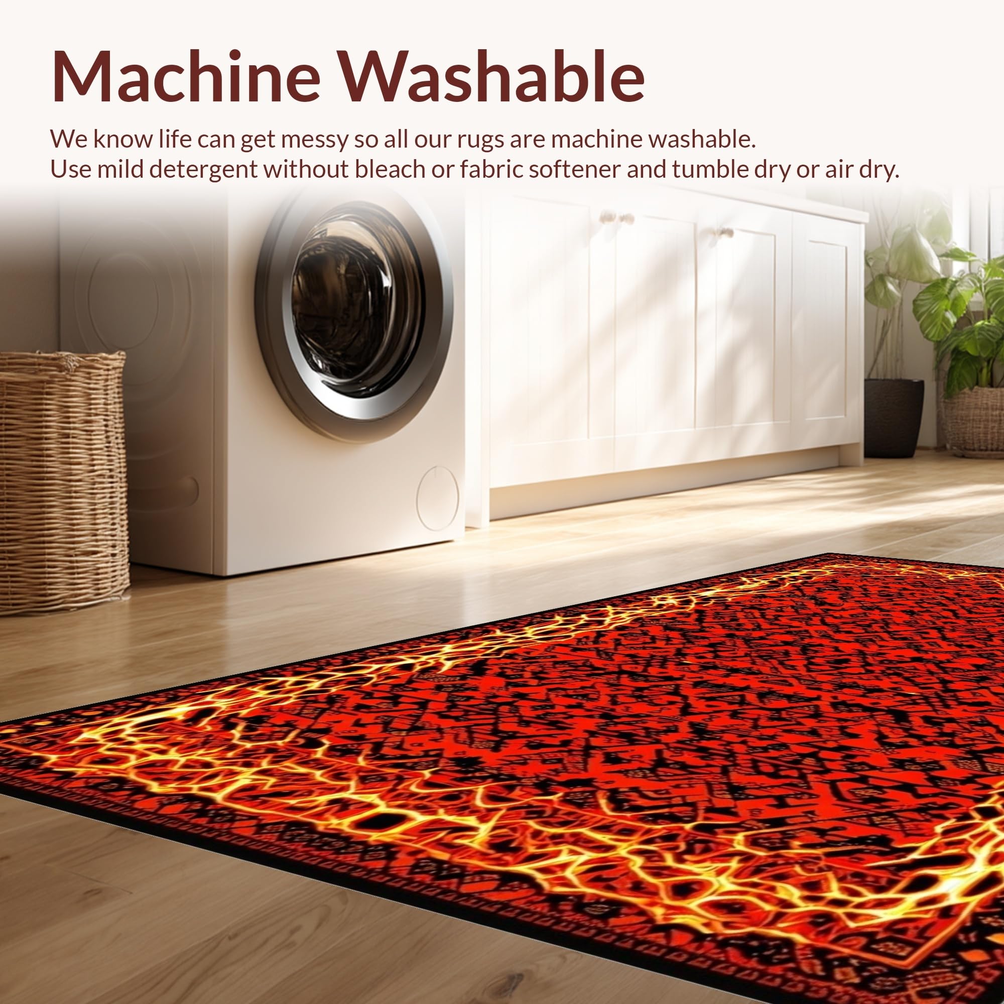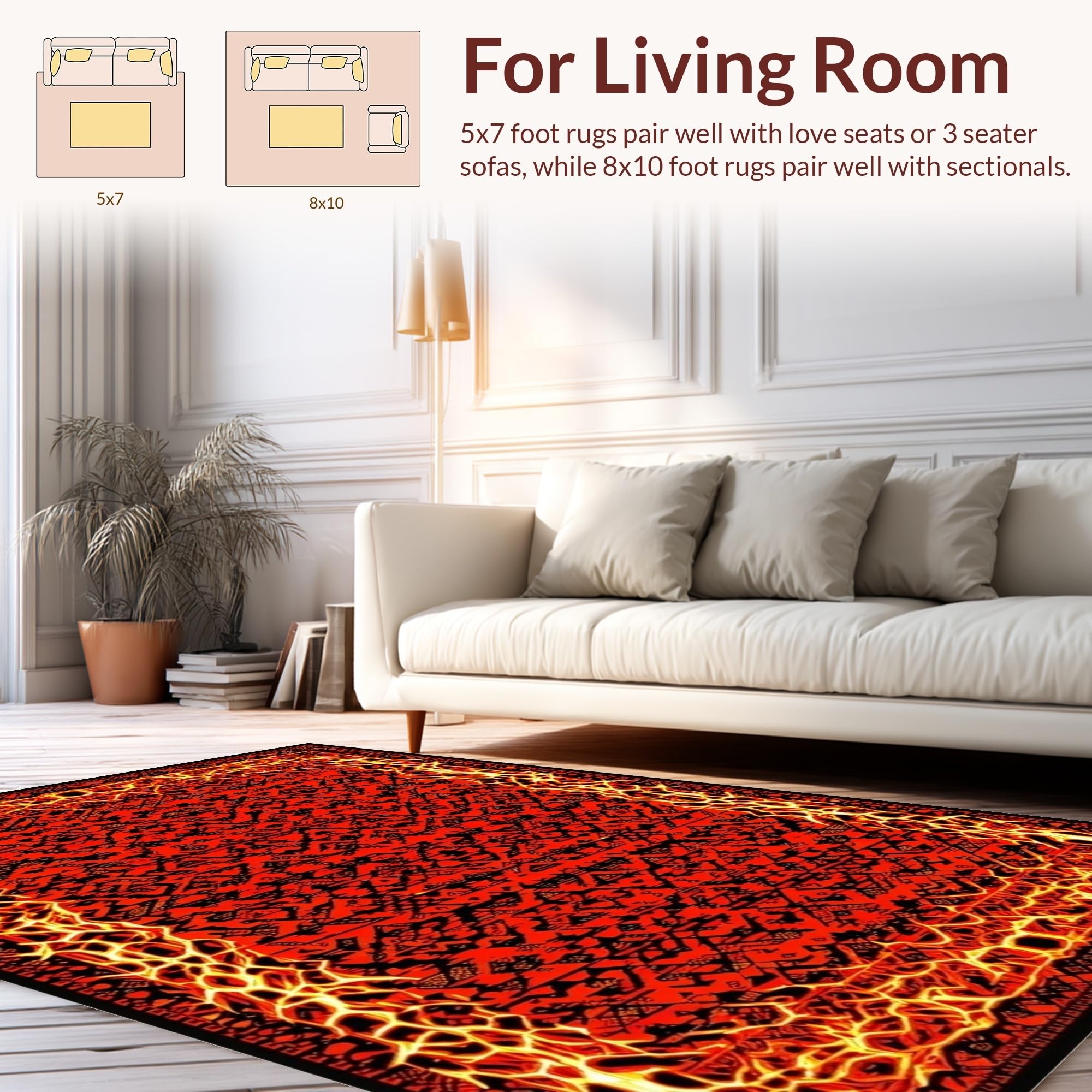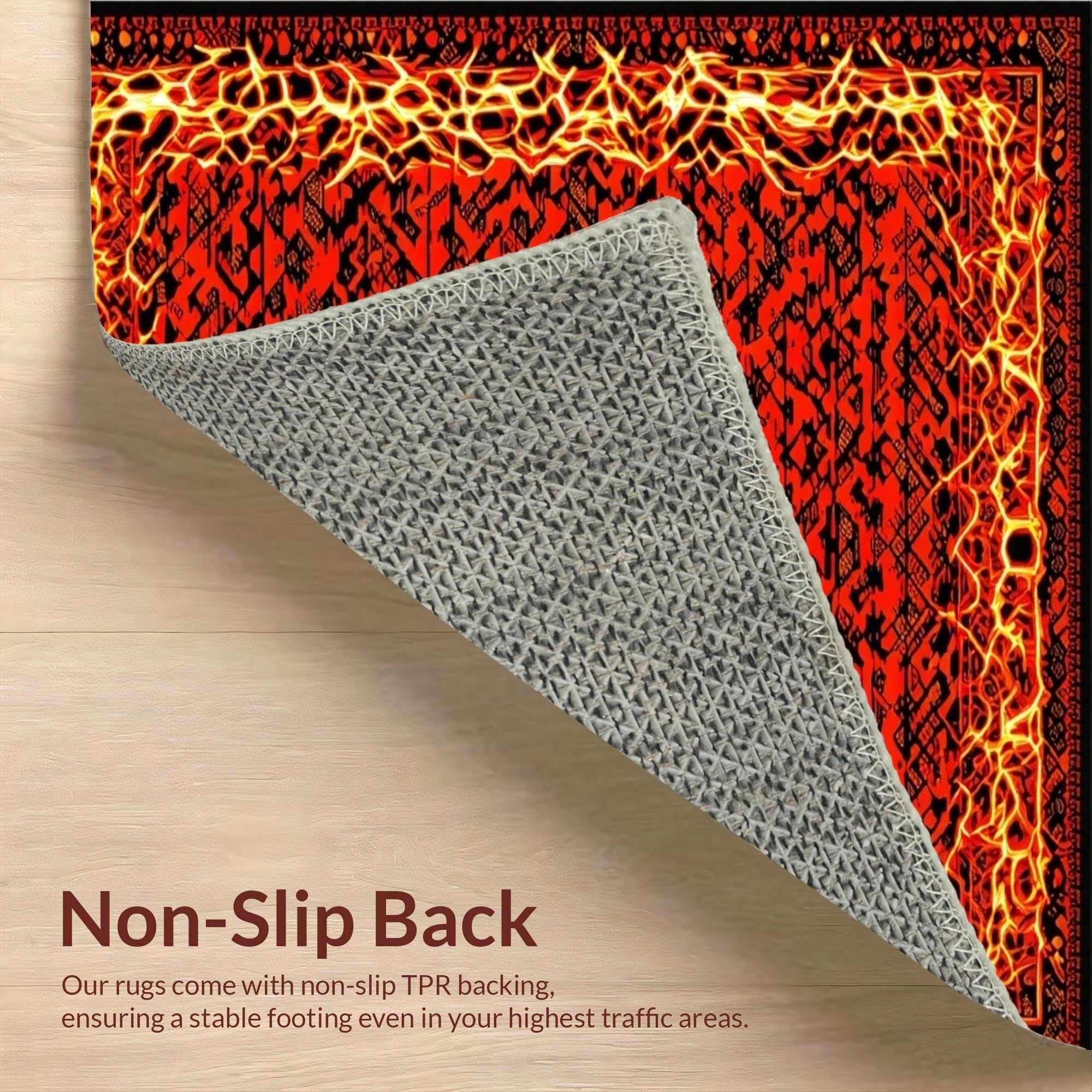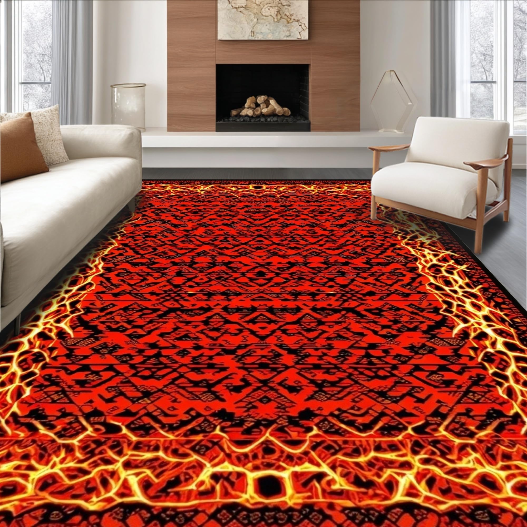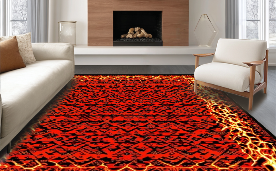 Ultra Soft Area Rug, Non Slip, Stain Resistant, Washable Area Rugs for Living Room, Bedroom, Bold Fiery Swirl Pattern(Red) Overview:
