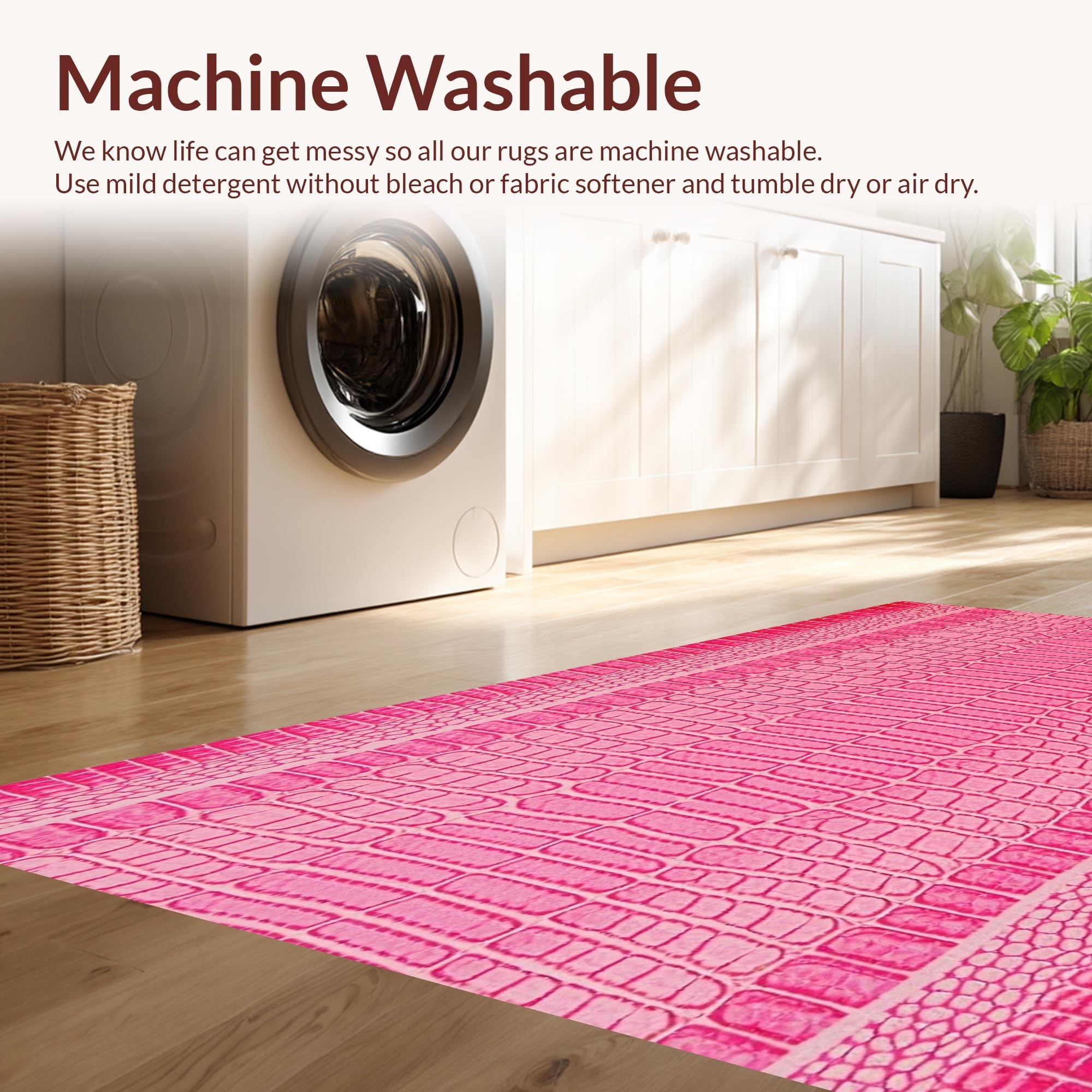 - Machine Washable: Our rugs can be easily thrown in the wash machine.