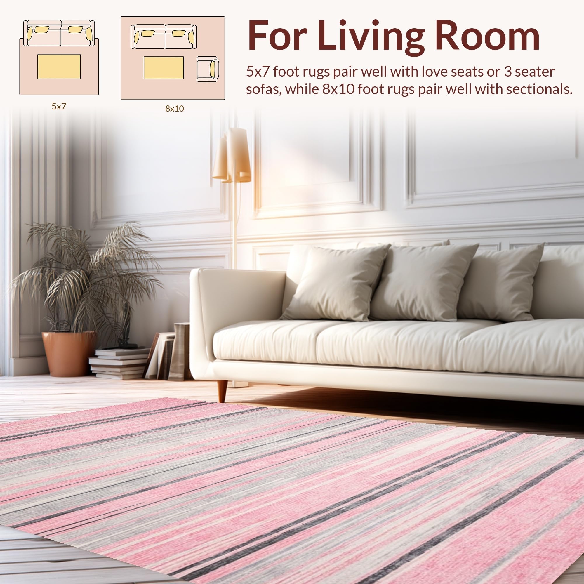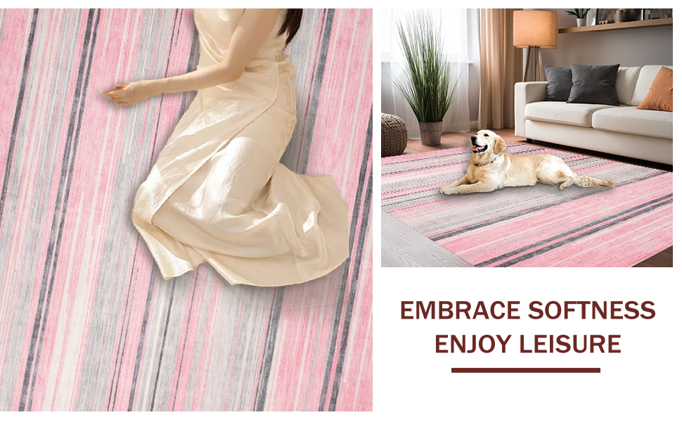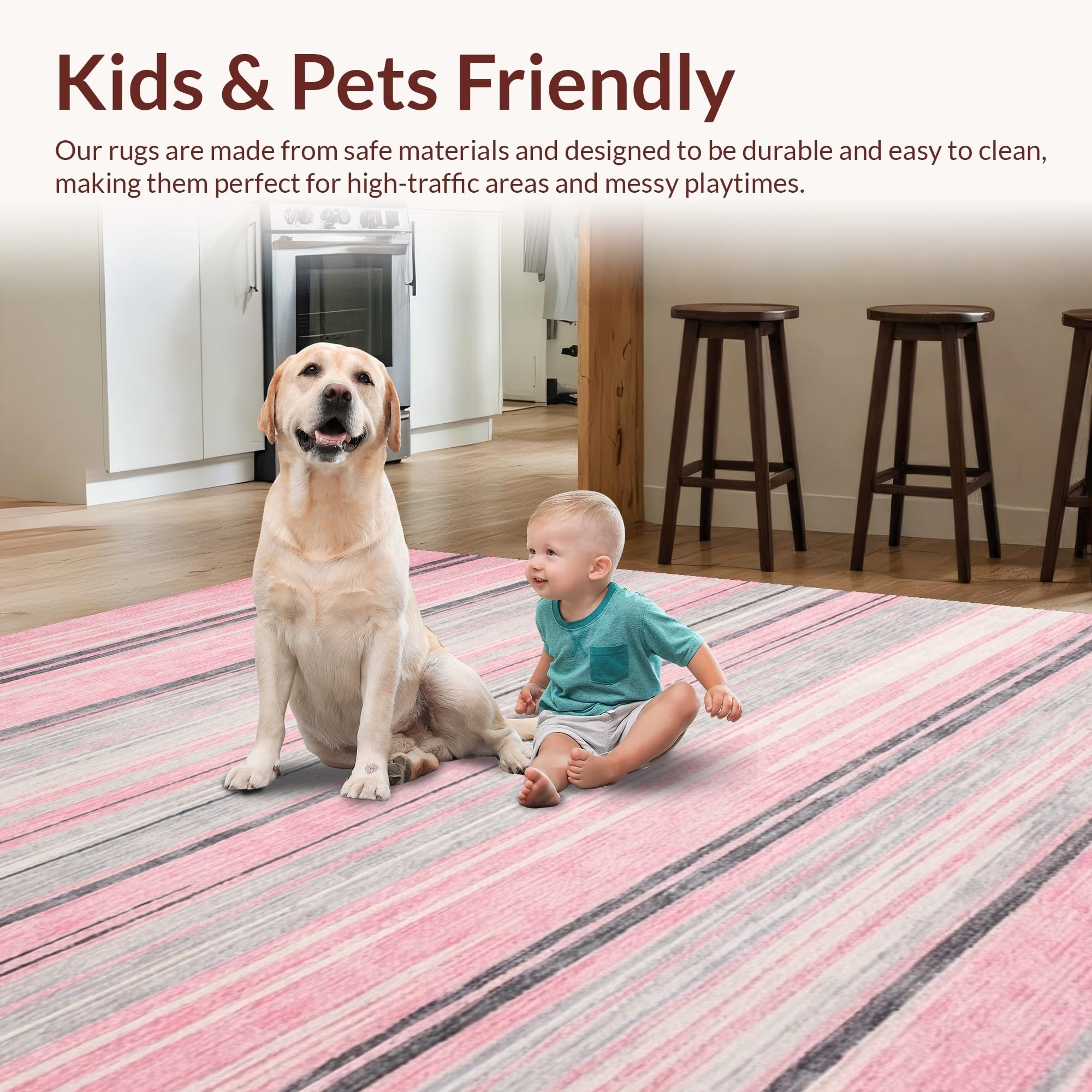 Ultra Soft Area Rug, Non Slip, Stain Resistant, Washable Area Rugs for Living Room, Bedroom, Bold Geometric Animal Motif(Pink) Overview:
