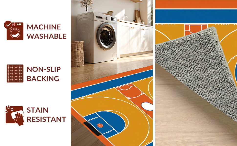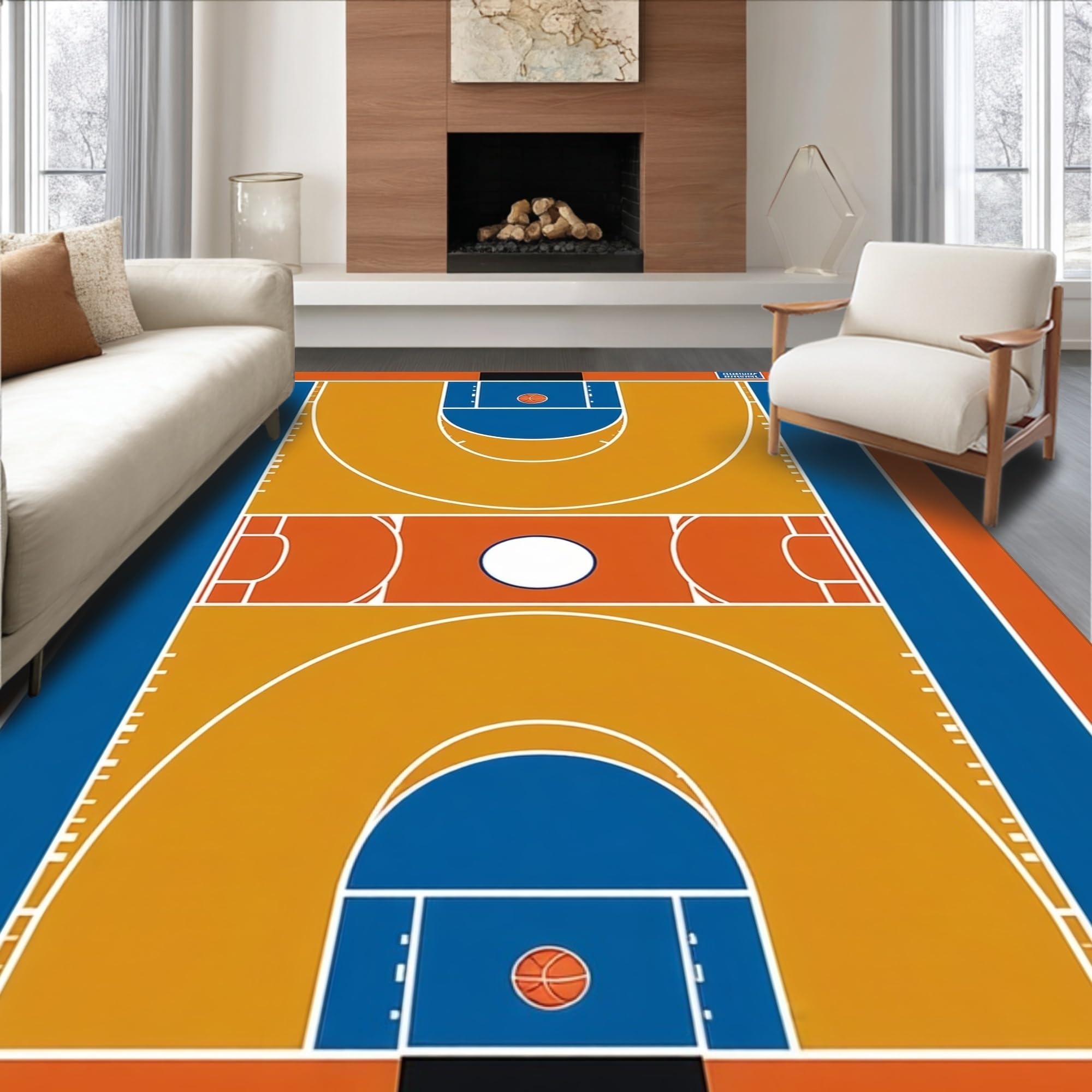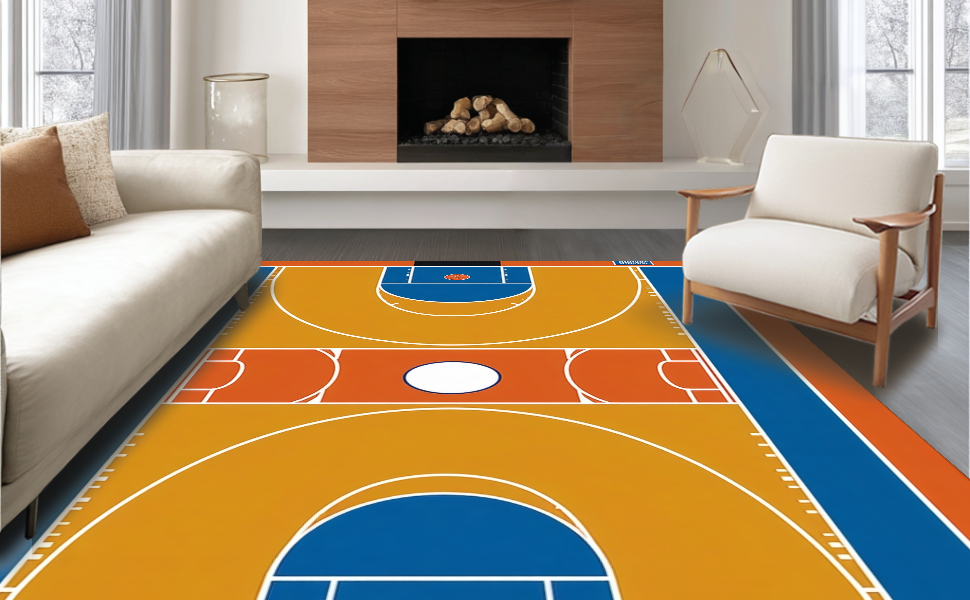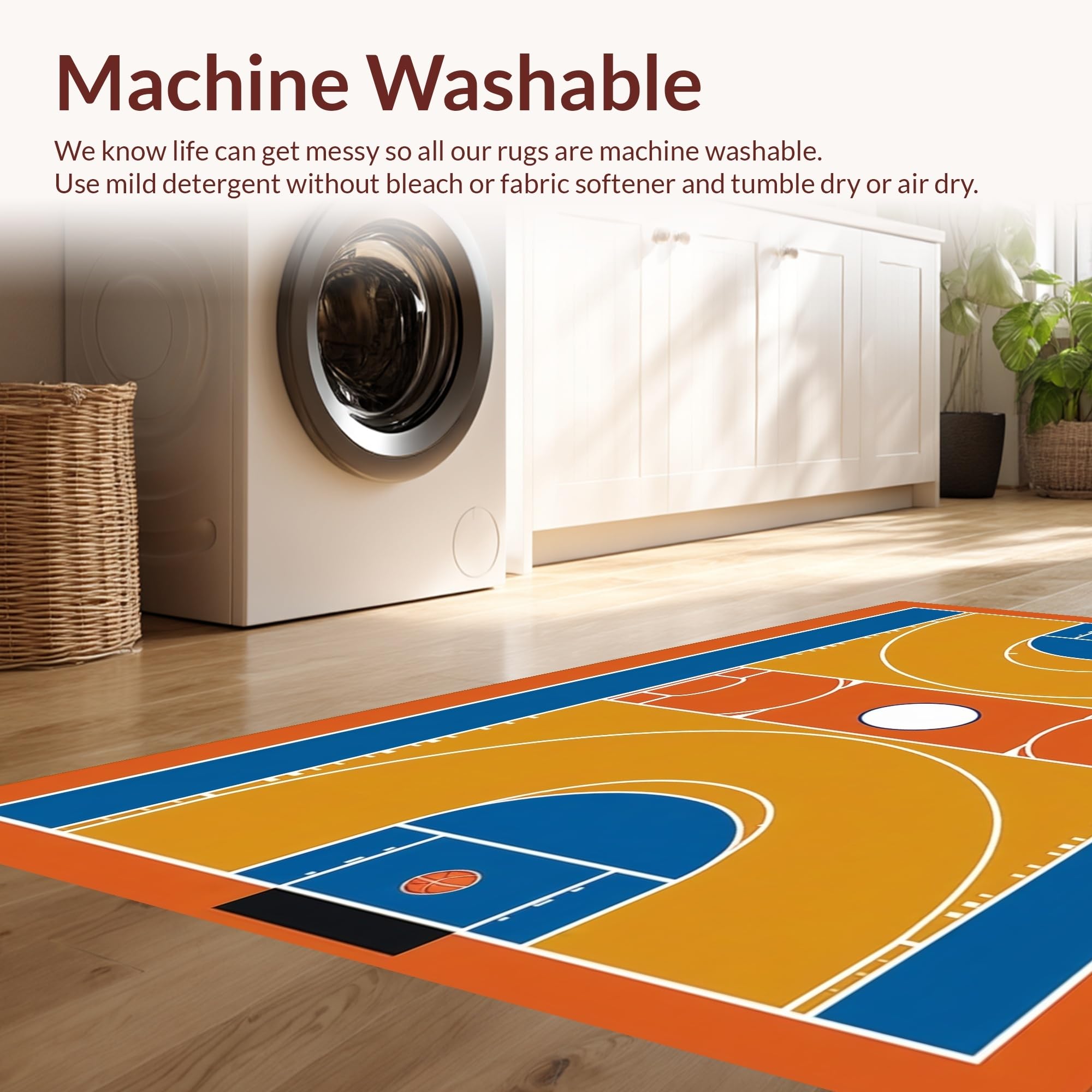 Ultra Soft Area Rug, Non Slip, Stain Resistant, Washable Area Rugs for Living Room, Bedroom, Bold Geometric Basketball Motif(Orange) Overview: