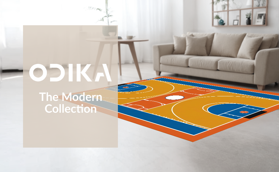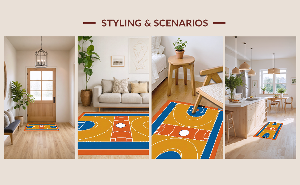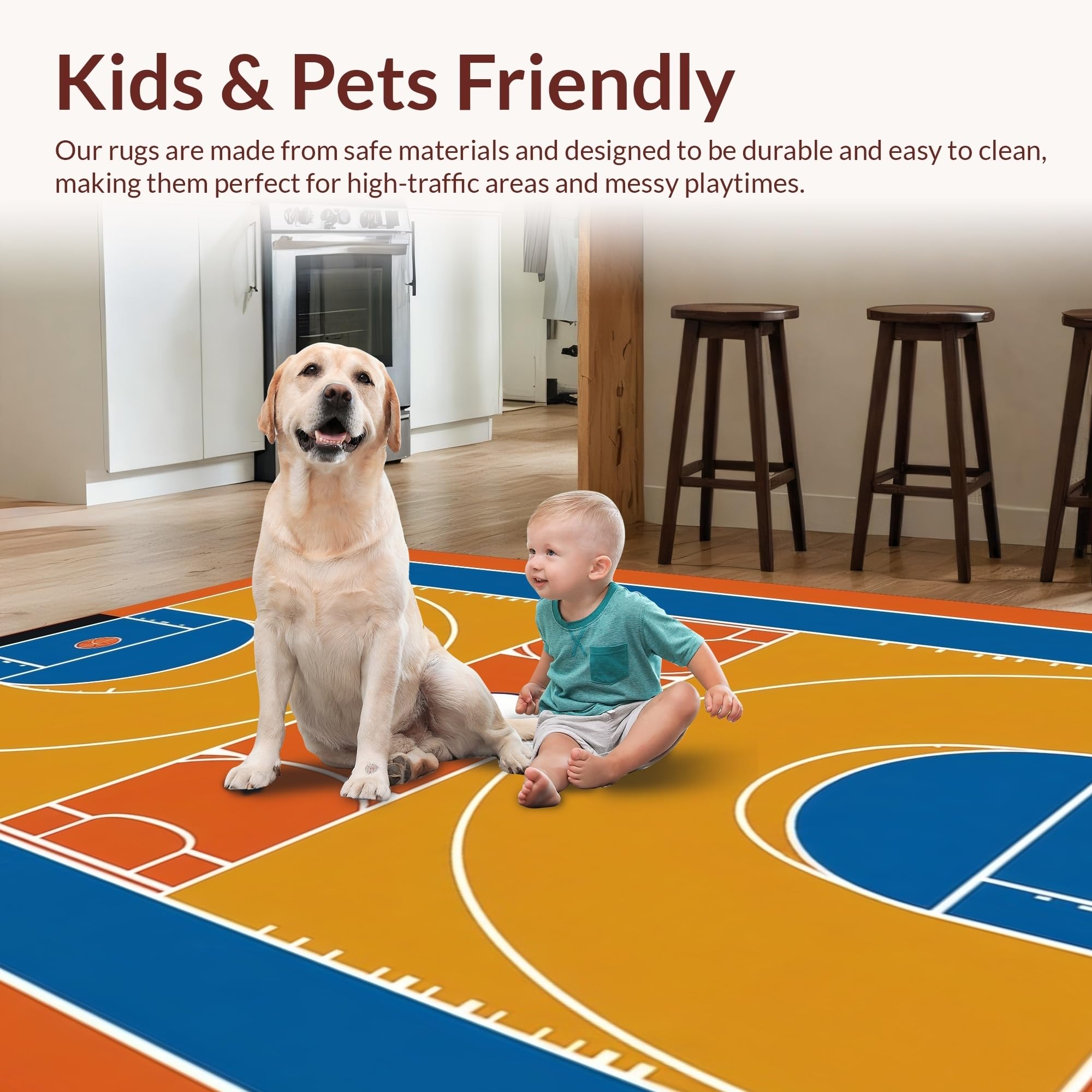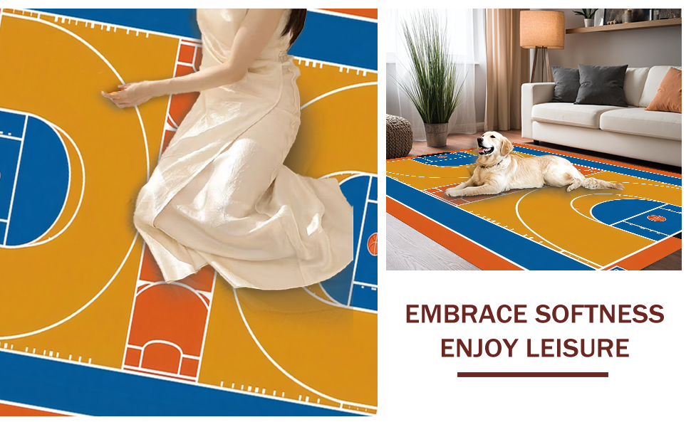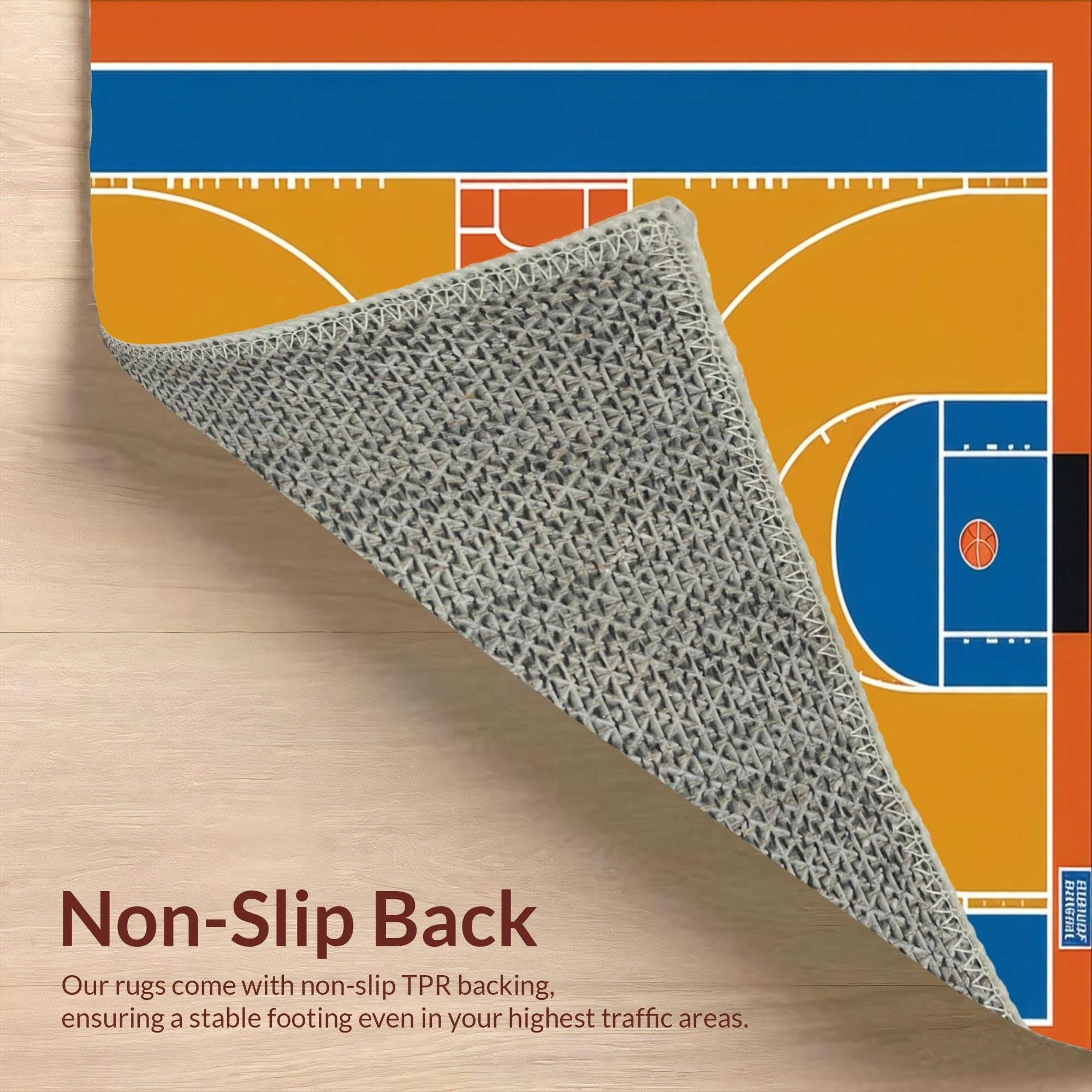 Ultra Soft Area Rug, Non Slip, Stain Resistant, Washable Area Rugs for Living Room, Bedroom, Bold Geometric Basketball Motif(Orange) Overview: