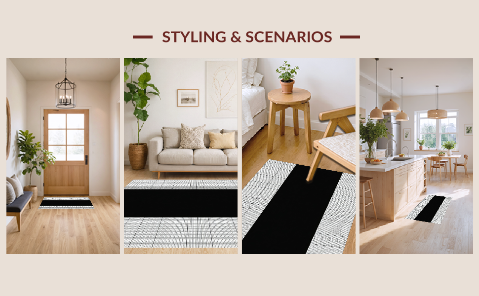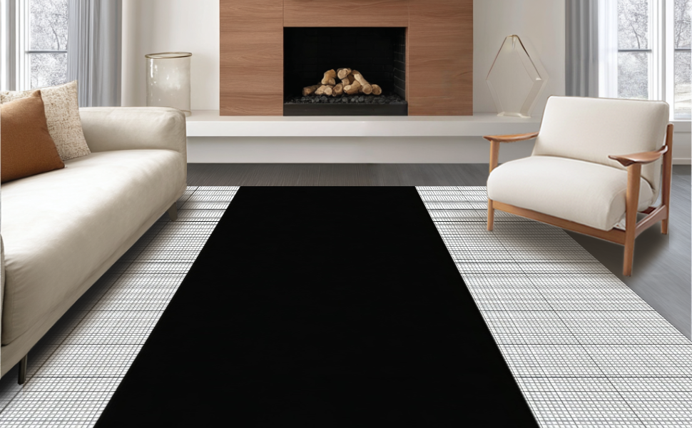Ultra Soft Area Rug, Non Slip, Stain Resistant, Washable Area Rugs for Living Room, Bedroom, Bold Geometric Black Circular Element(Black) Overview: