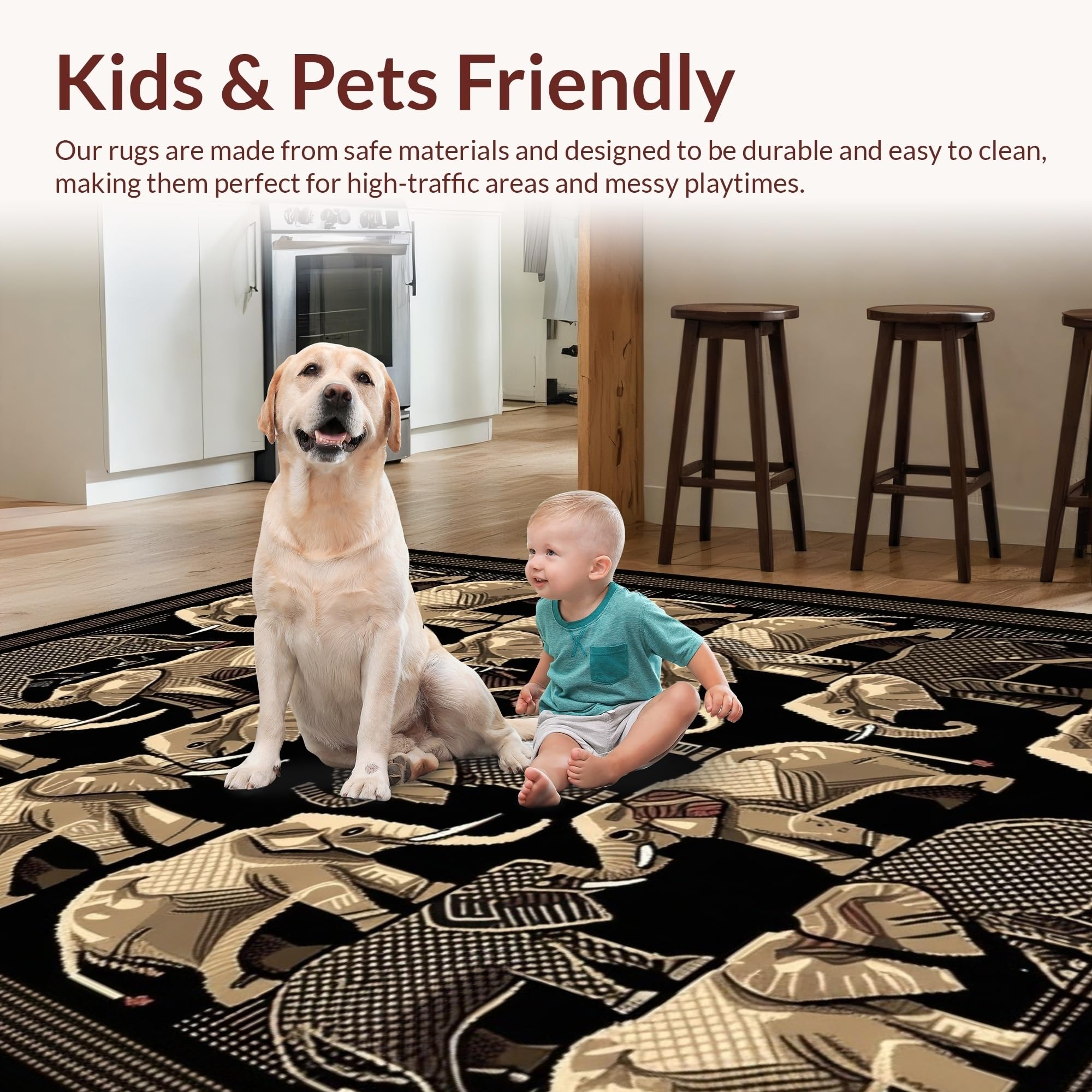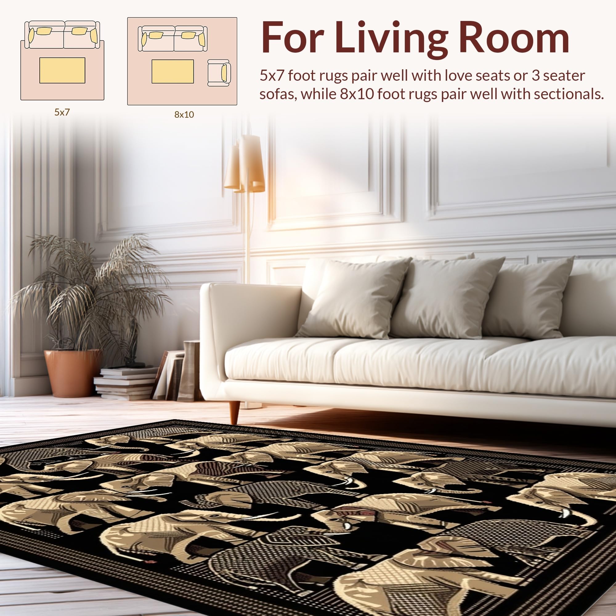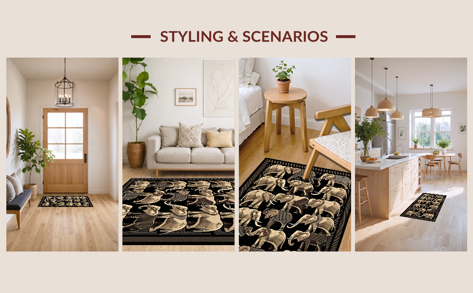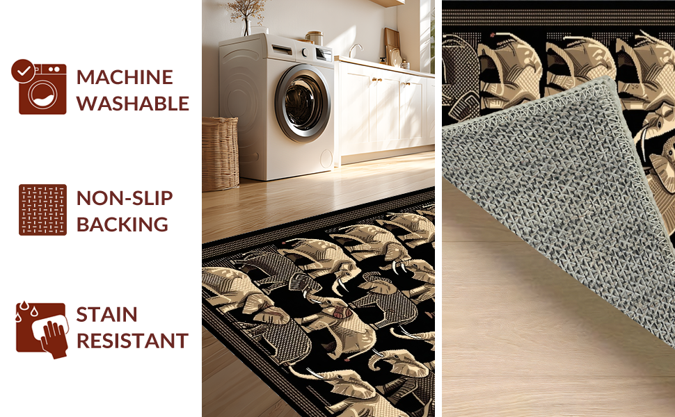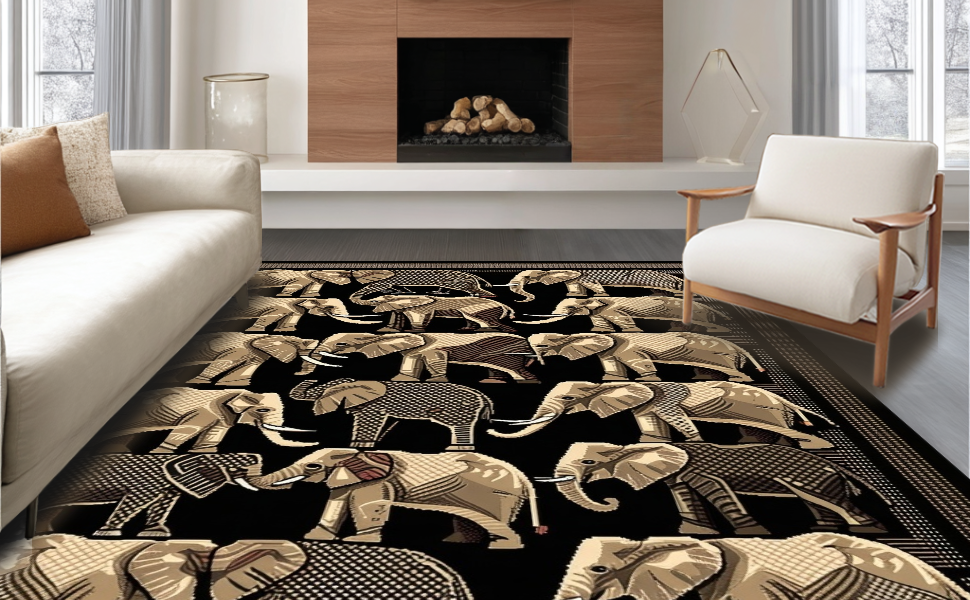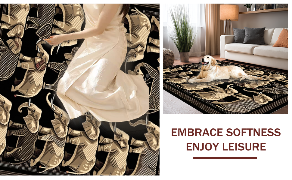 Ultra Soft Area Rug, Non Slip, Stain Resistant, Washable Area Rugs for Living Room, Bedroom, Bold Geometric Elephant Print Style(Gray) Overview: