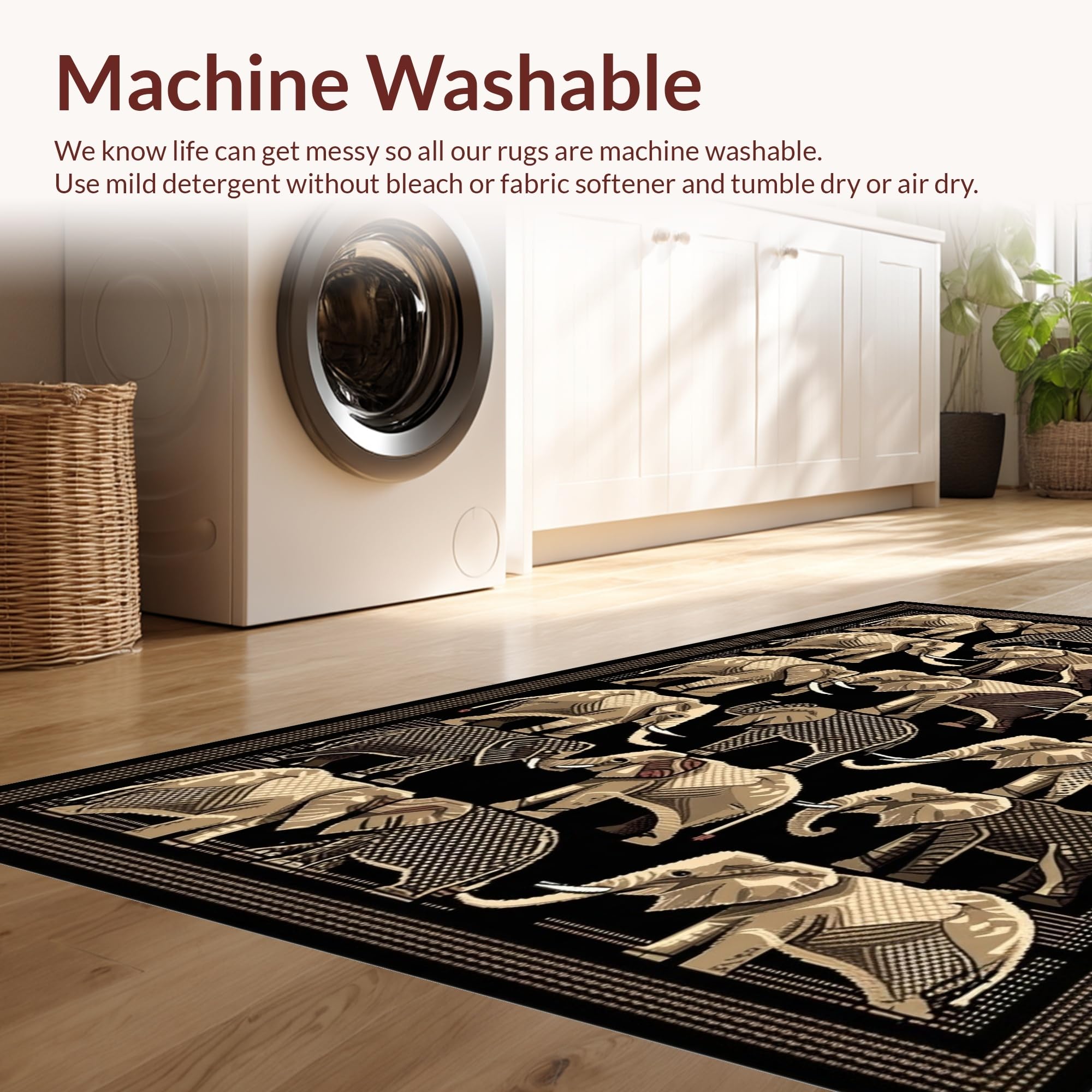 - Machine Washable: Our rugs can be easily thrown in the wash machine.