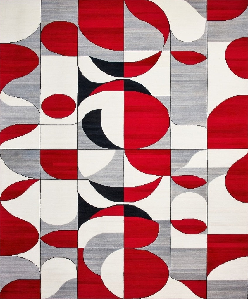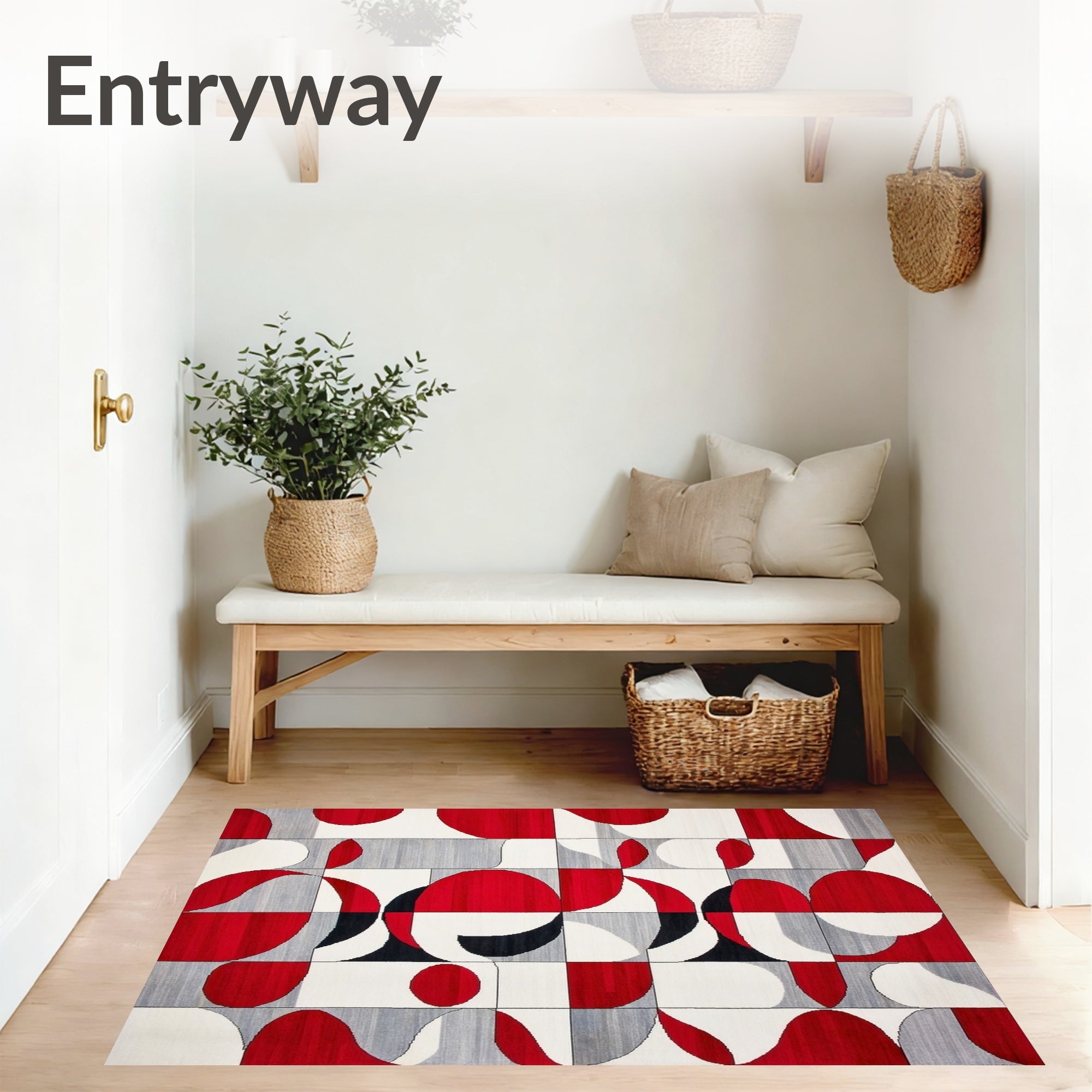 Bold Geometric Red White Grey Black Accent Carpet(Red)