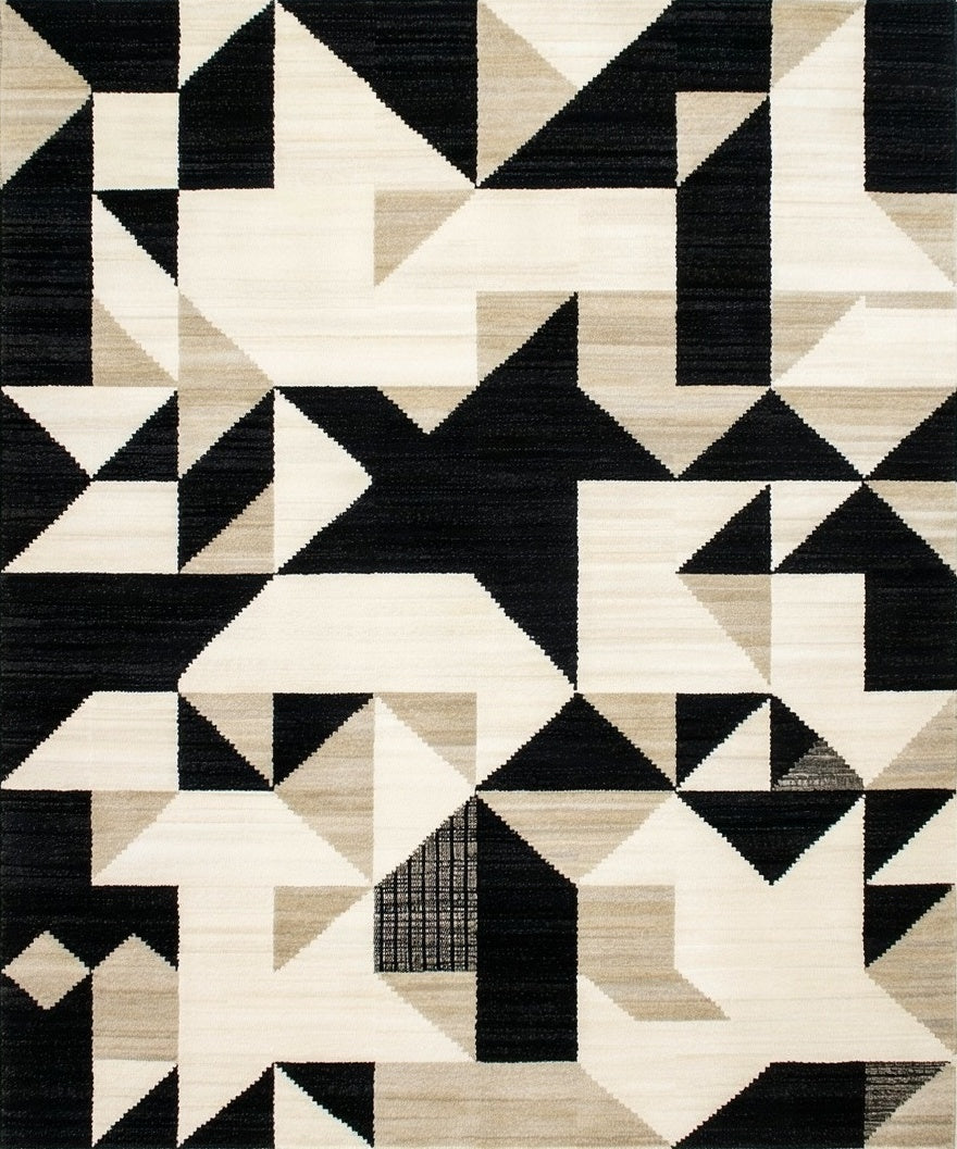 Ultra Soft Area Rug, Non Slip, Stain Resistant, Washable Area Rugs for Living Room, Bedroom, Bold Geometric Triangles in Monochrome Contrast(Beige) Overview: