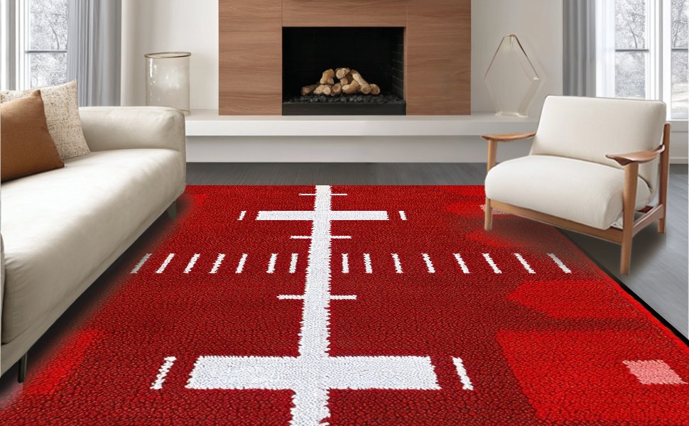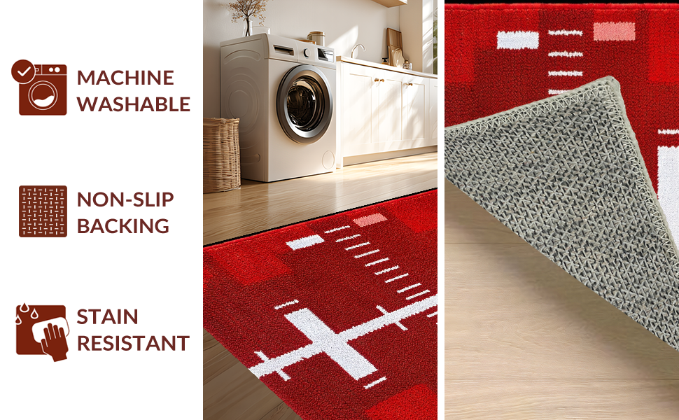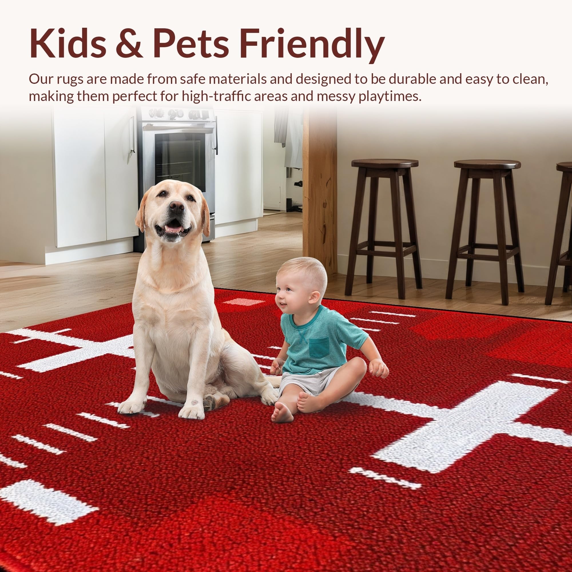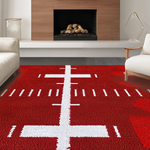 Ultra Soft Area Rug, Non Slip, Stain Resistant, Washable Area Rugs for Living Room, Bedroom, Bold Graphic Athletic Theme(Red) Overview: