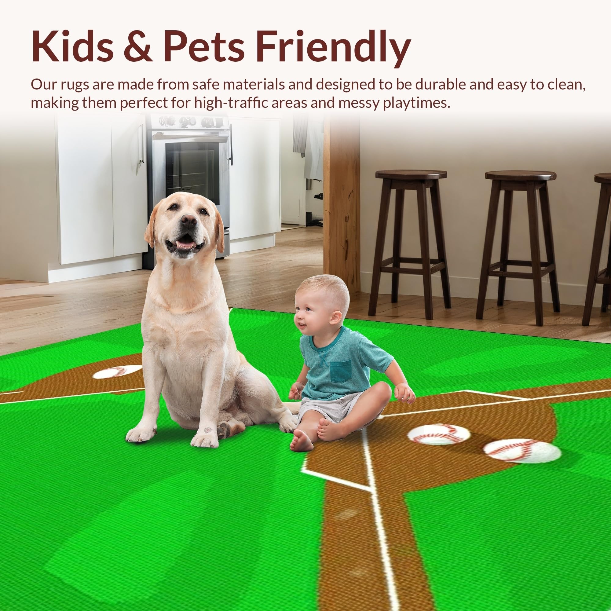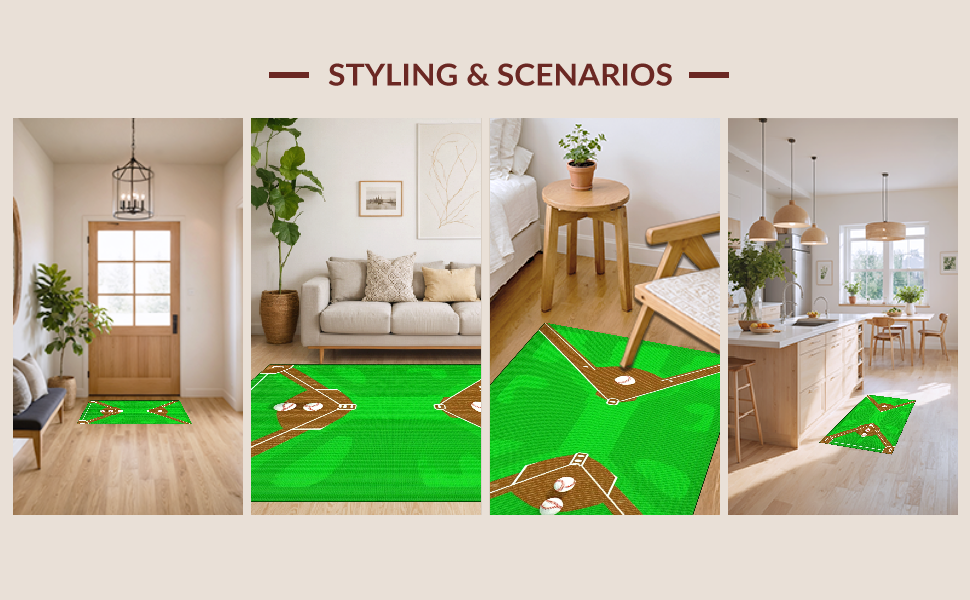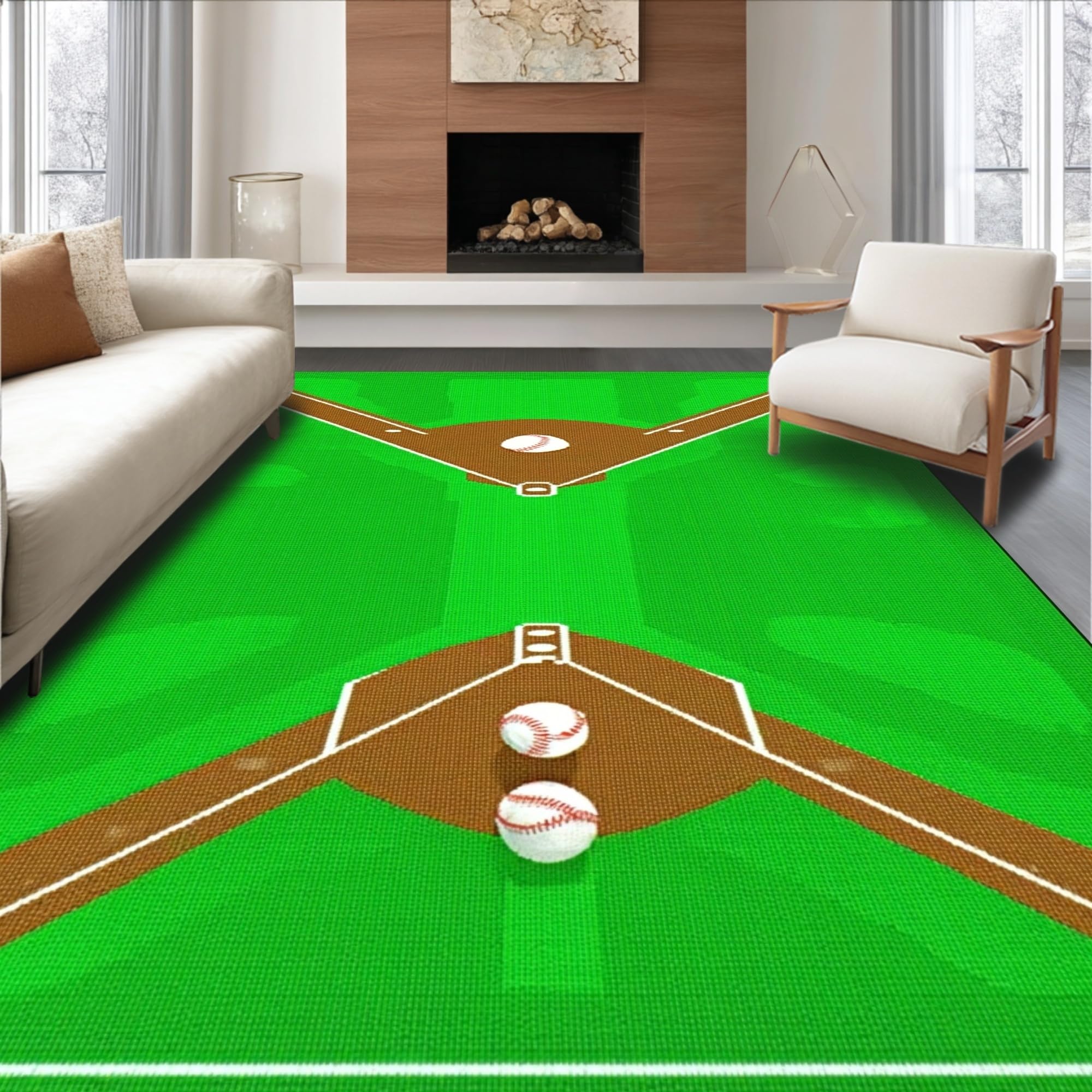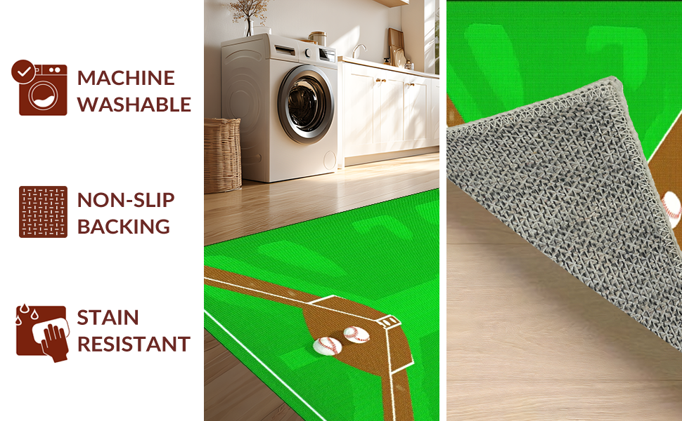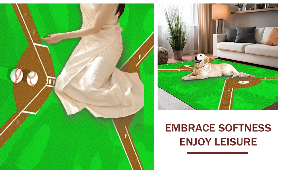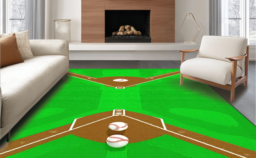 Ultra Soft Area Rug, Non Slip, Stain Resistant, Washable Area Rugs for Living Room, Bedroom, Bold Graphic Baseball Arrangement(Green) Overview: