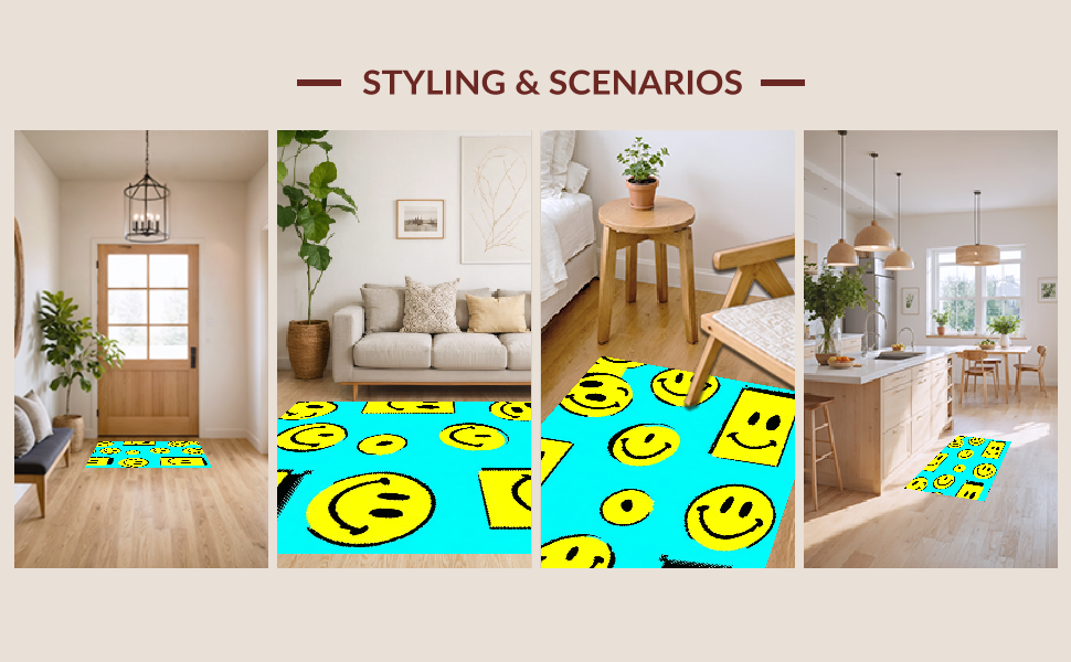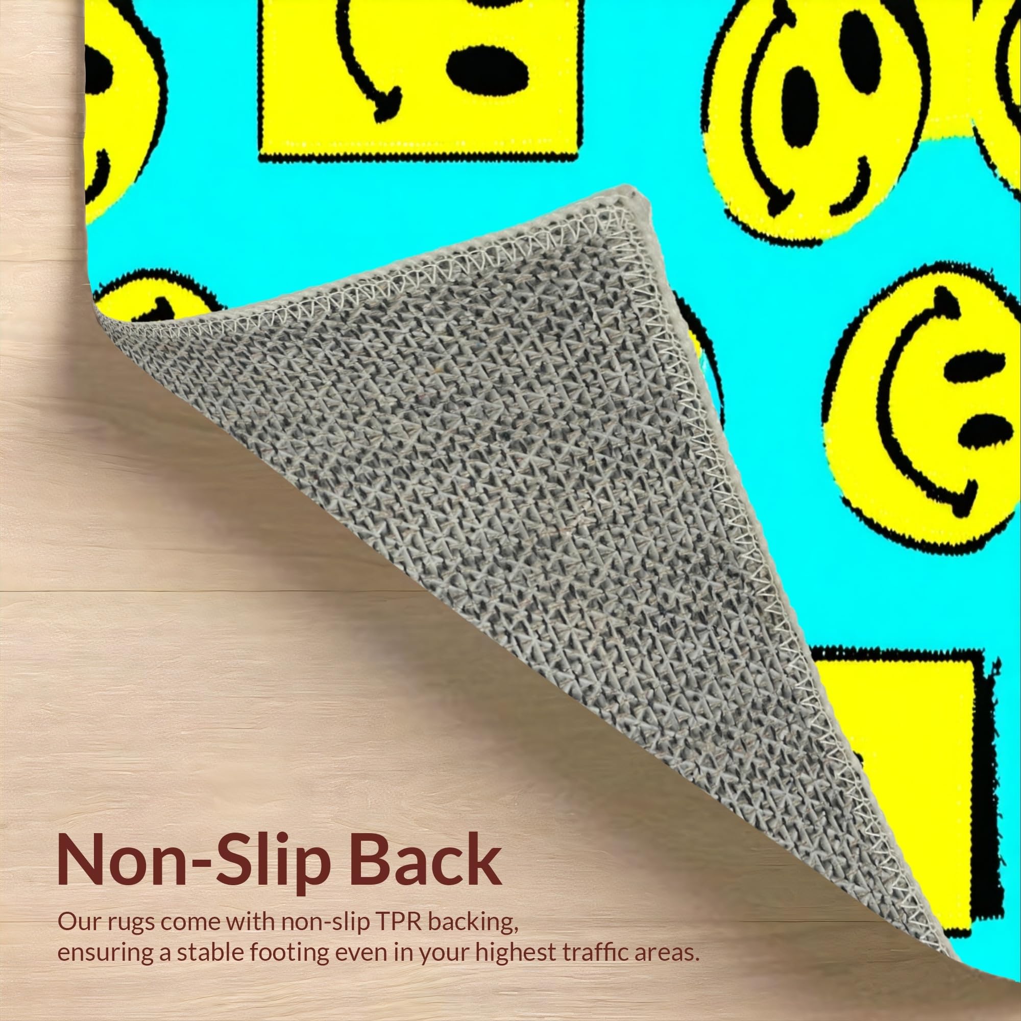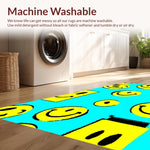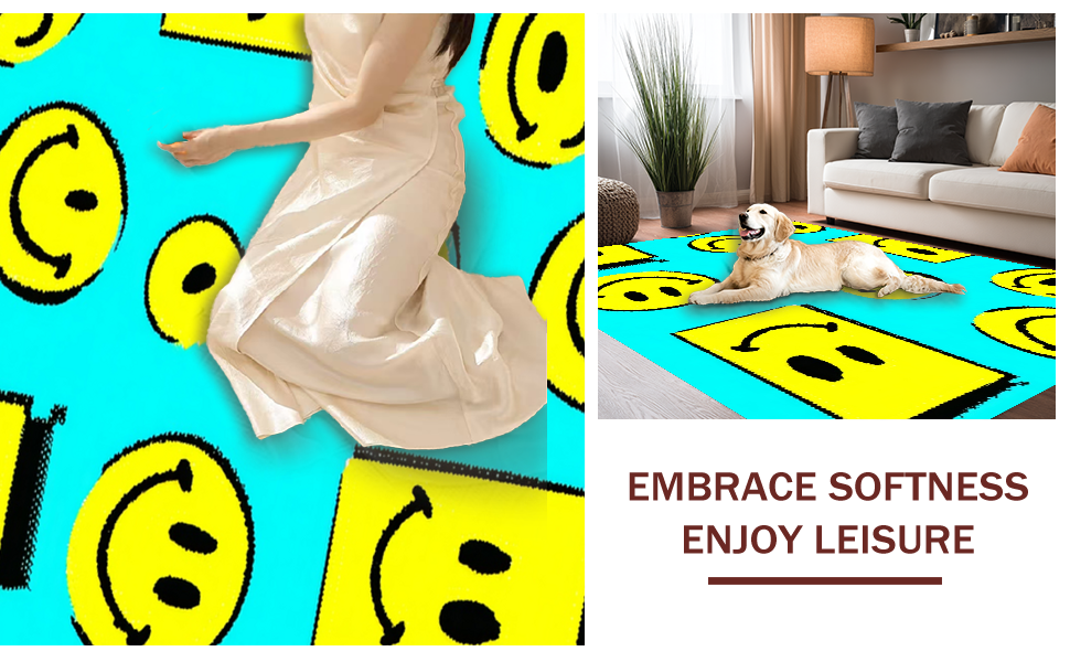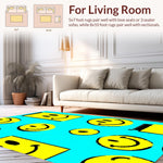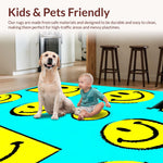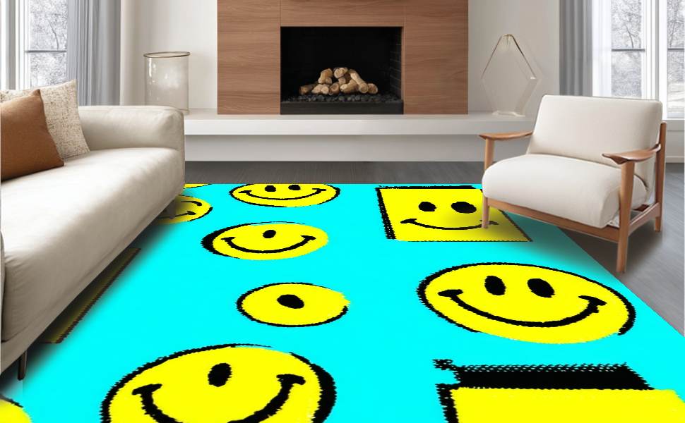 Ultra Soft Area Rug, Non Slip, Stain Resistant, Washable Area Rugs for Living Room, Bedroom, Bold Graphic Circular Happy Motif(Blue) Overview: