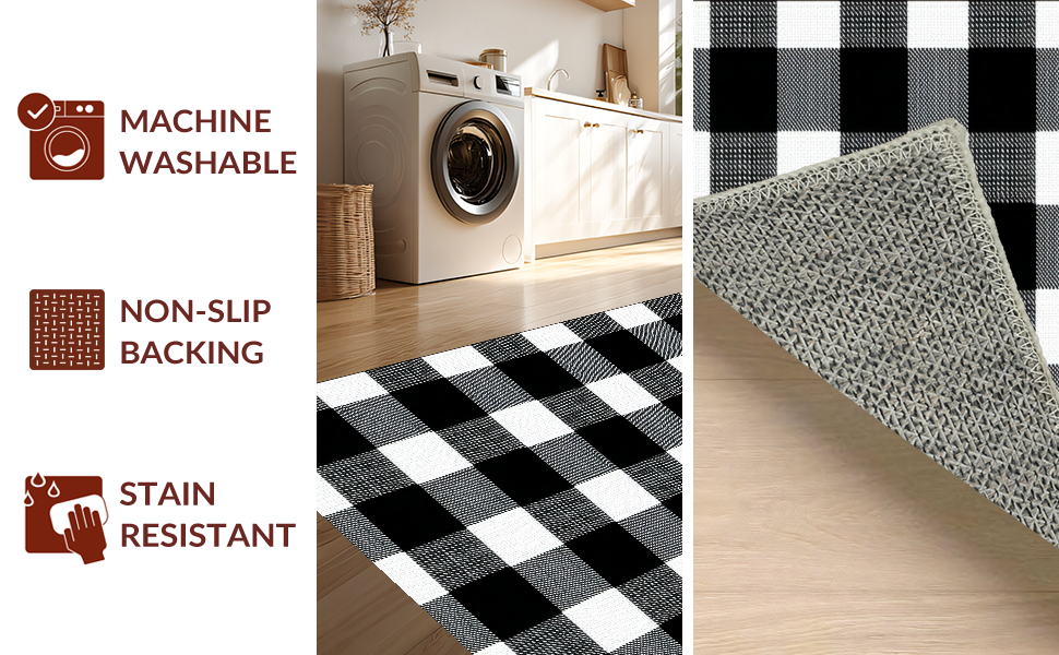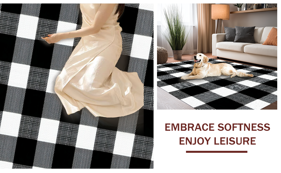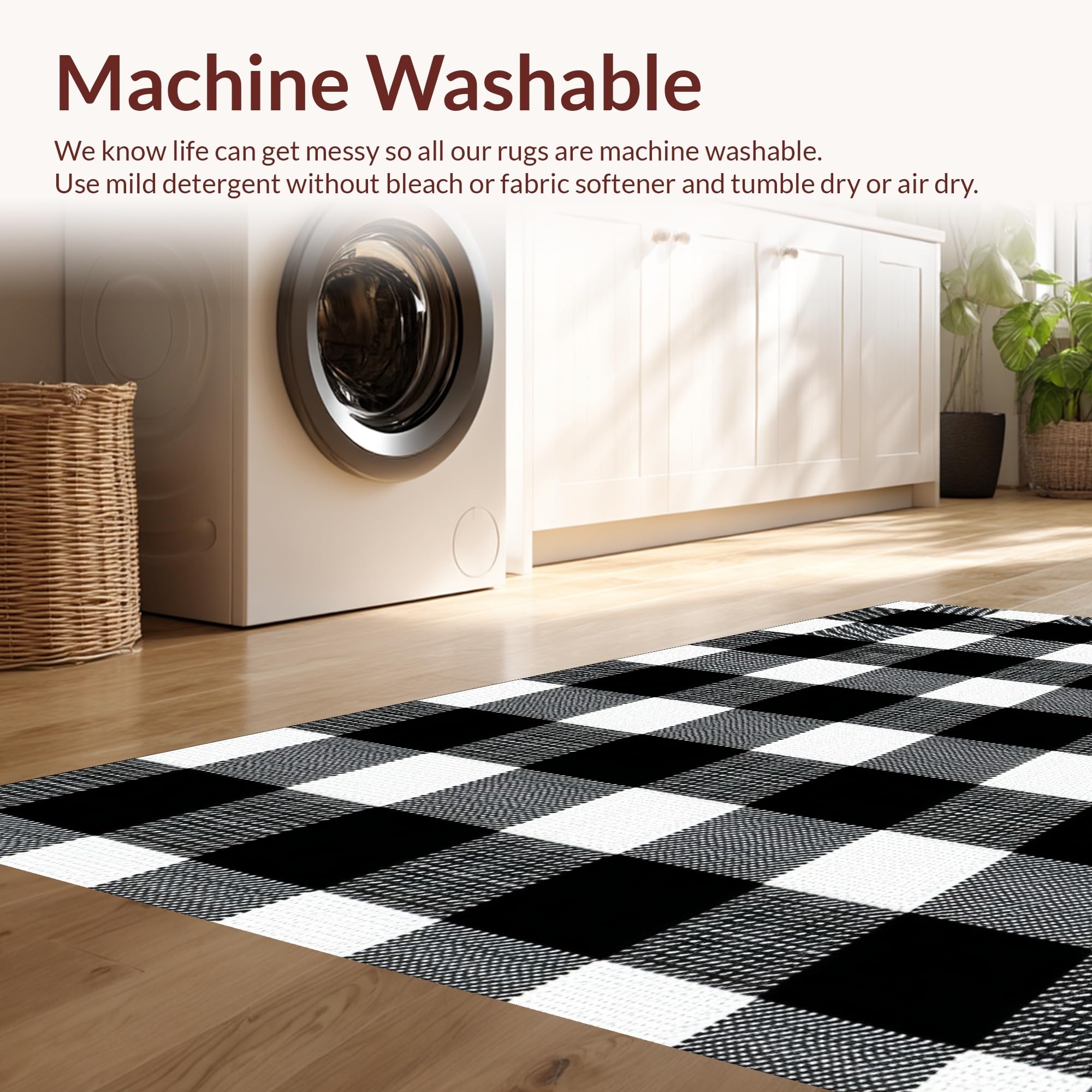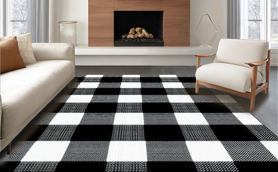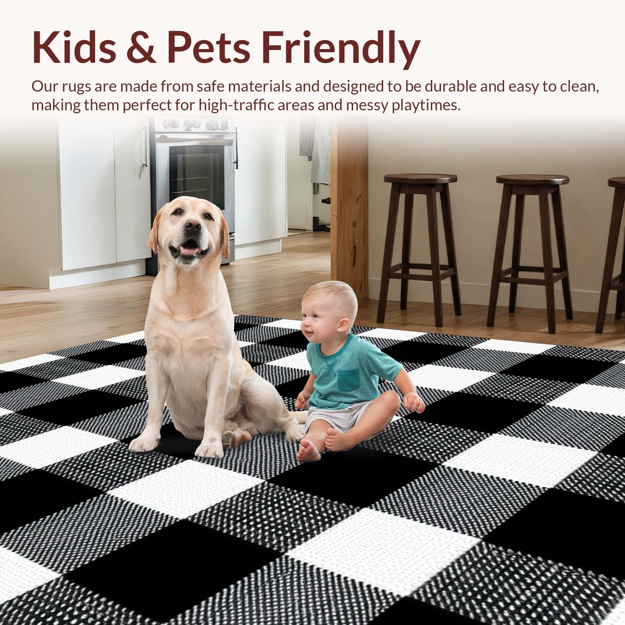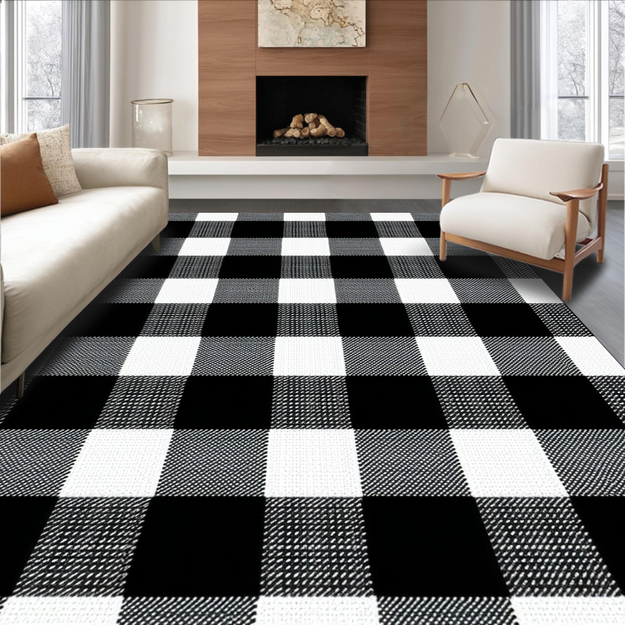 Ultra Soft Area Rug, Non Slip, Stain Resistant, Washable Area Rugs for Living Room, Bedroom, Bold Graphic Monochrome Checkered Look(Black) Overview: